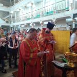 В прекрасный день Пасхи Христовой после поздней Литургии клирик Казанского собора иерей Алексий Сначёв для детей воскресной школы, учителей и родителей отслужил праздничный молебен.