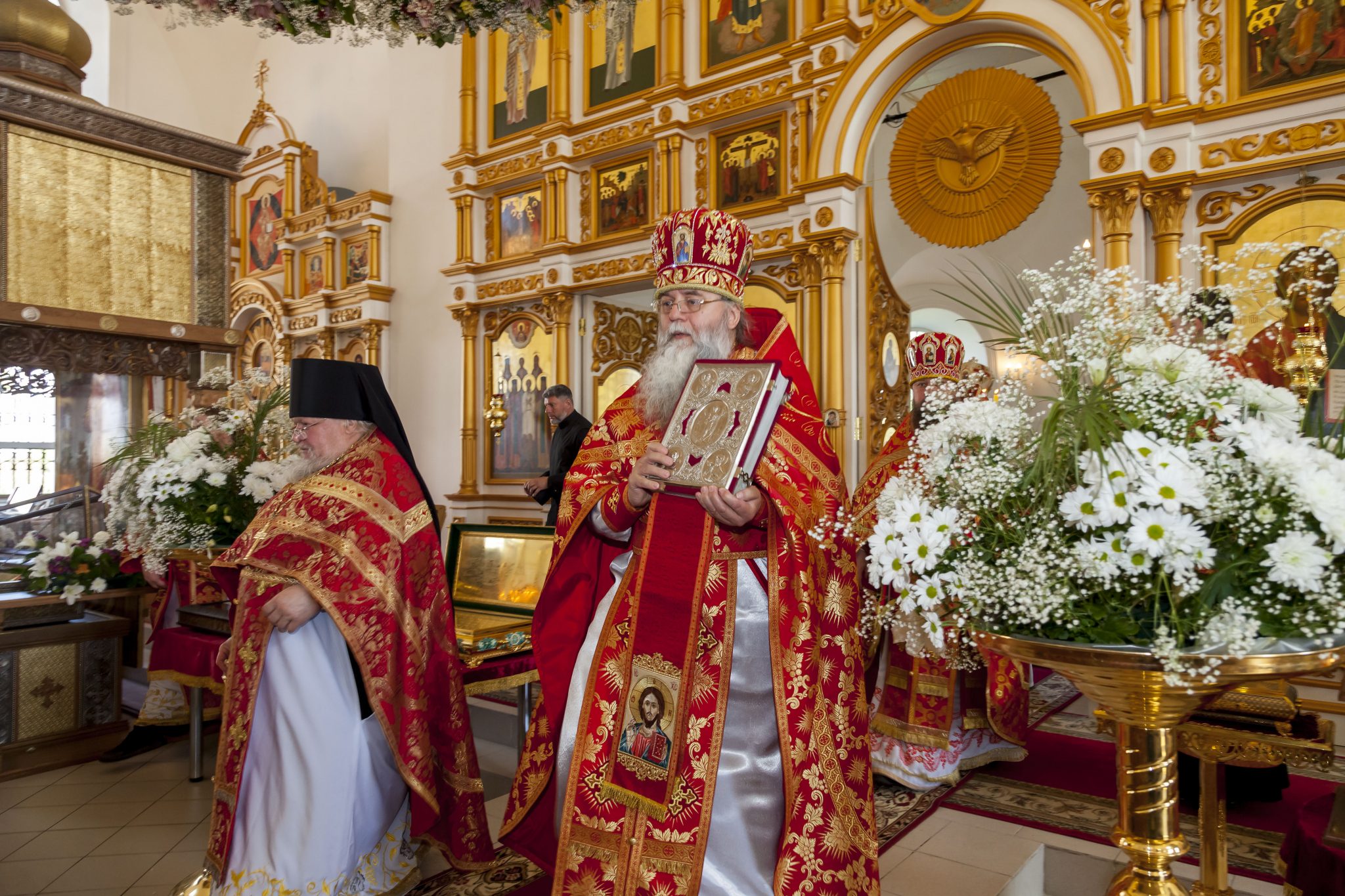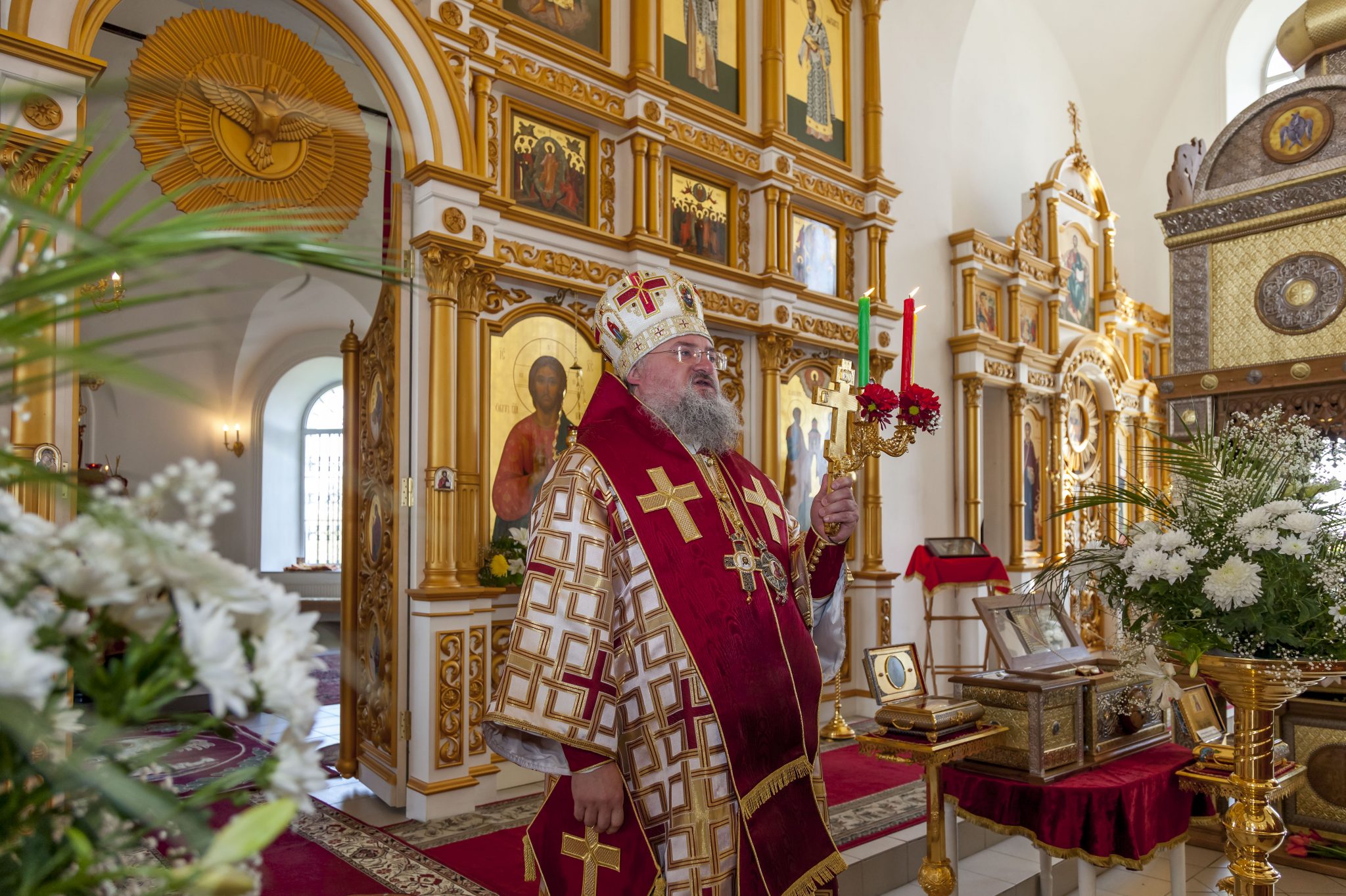 В завершении торжественного шествия архипастырь вознес молитву святому покровителю монастыря – Великомученику и Победоносцу Георгию.