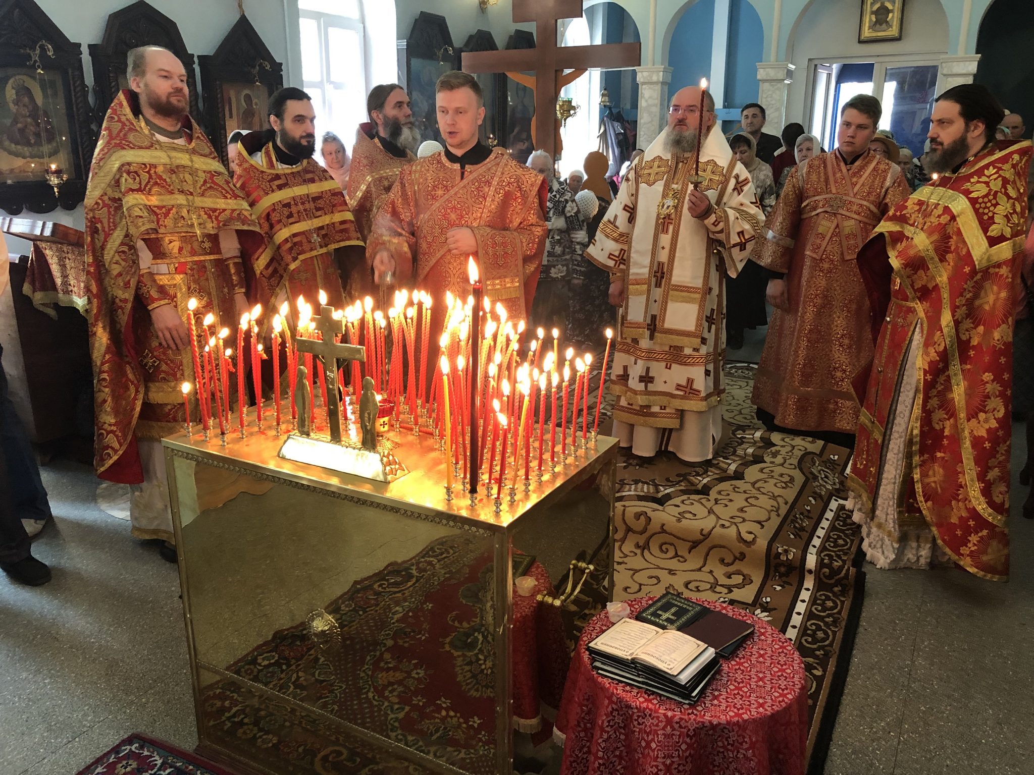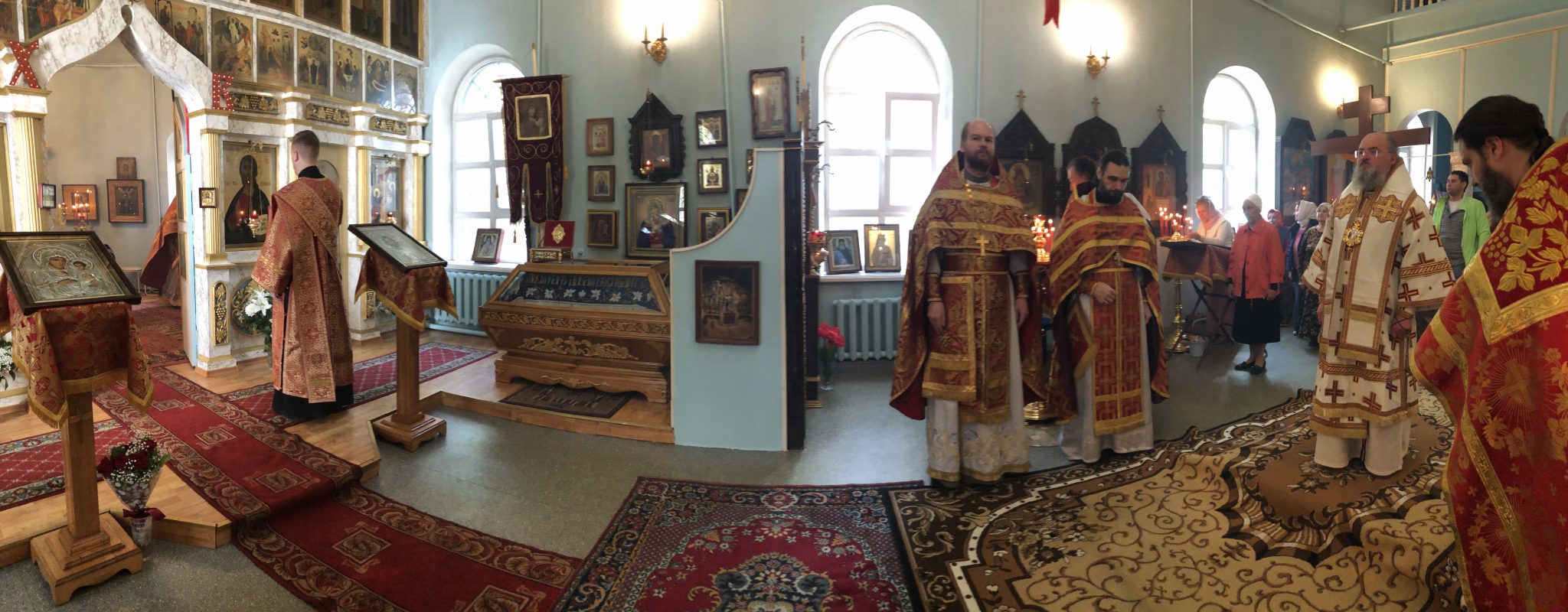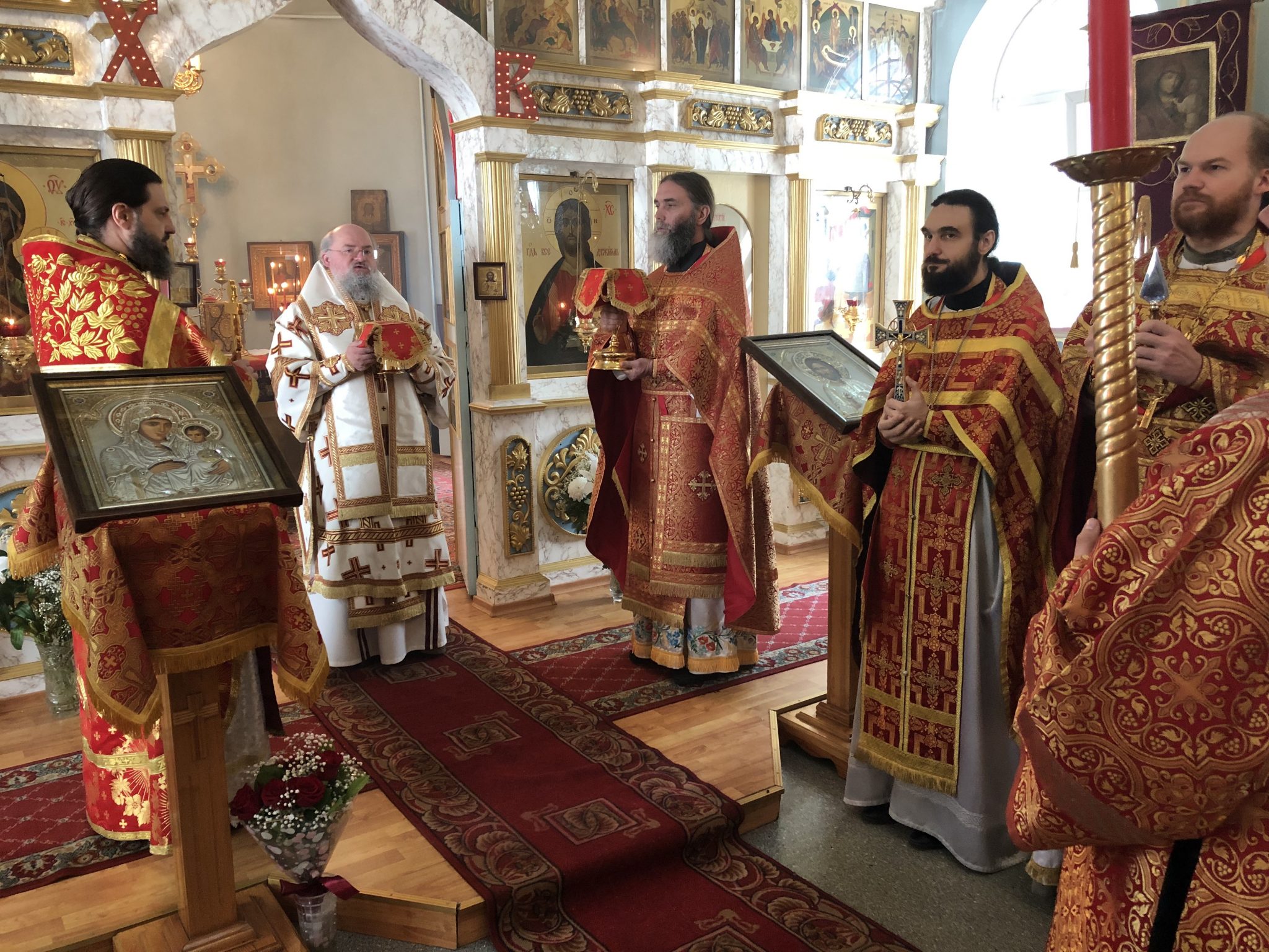 Преосвященнейшему владыке сослужили: благочинный округа протоиерей Сергий Вишняков, протоиерей Павел Синицын – настоятель храма, протоиерей Георгий Кривенко, протоиерей Антоний Хатунцев, иерей Павел Кузнецов и диакон Евгений Ковригин.