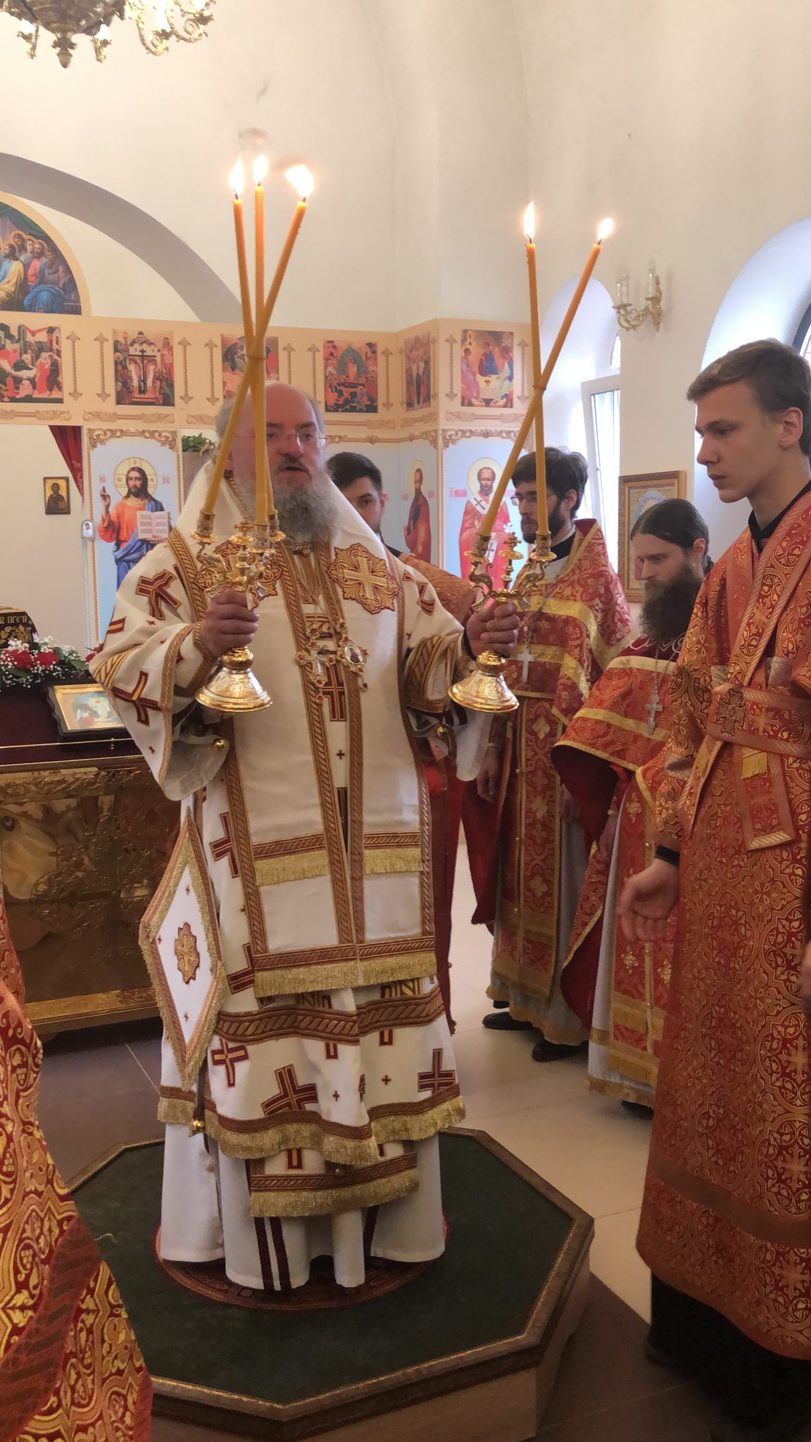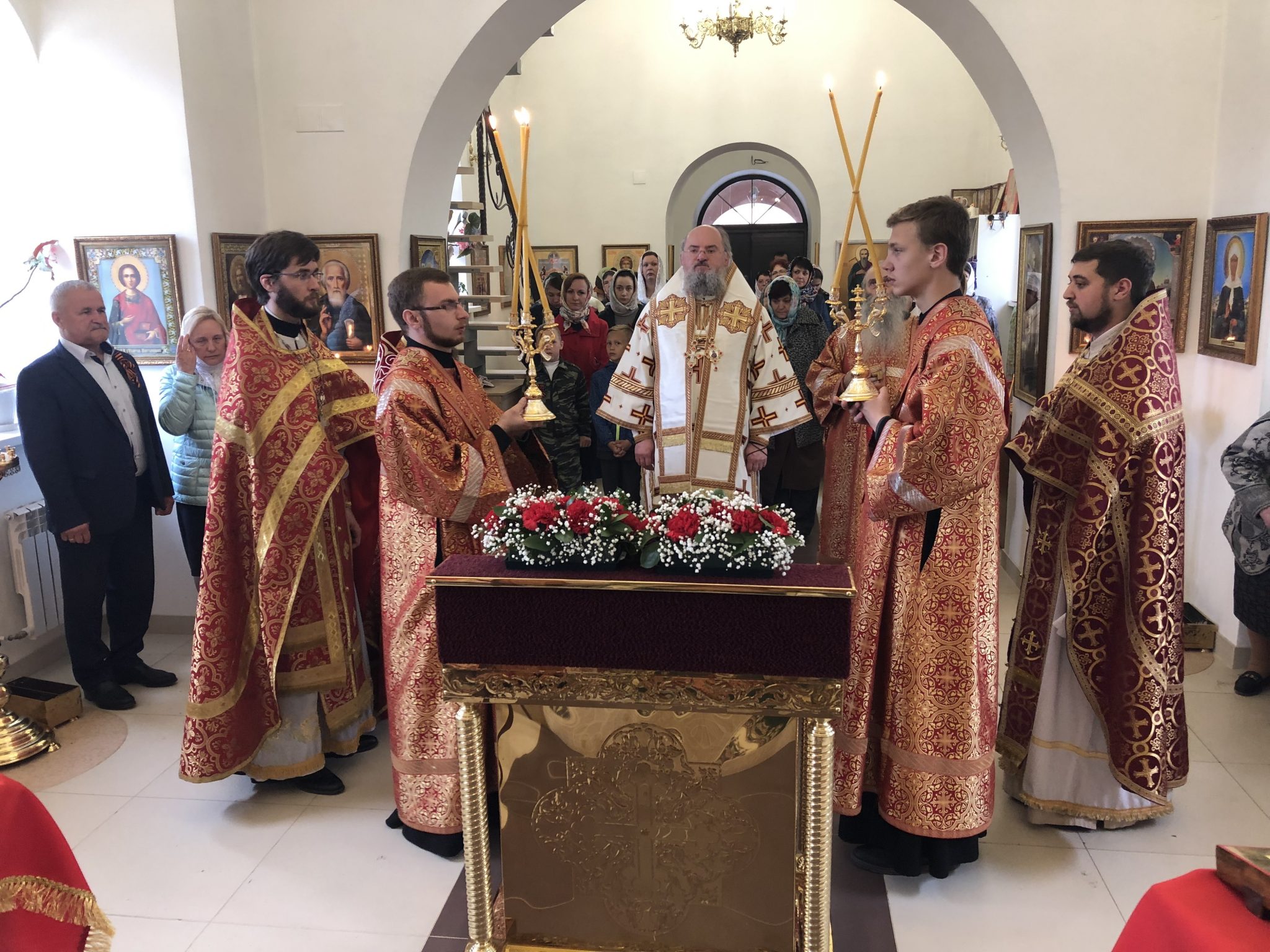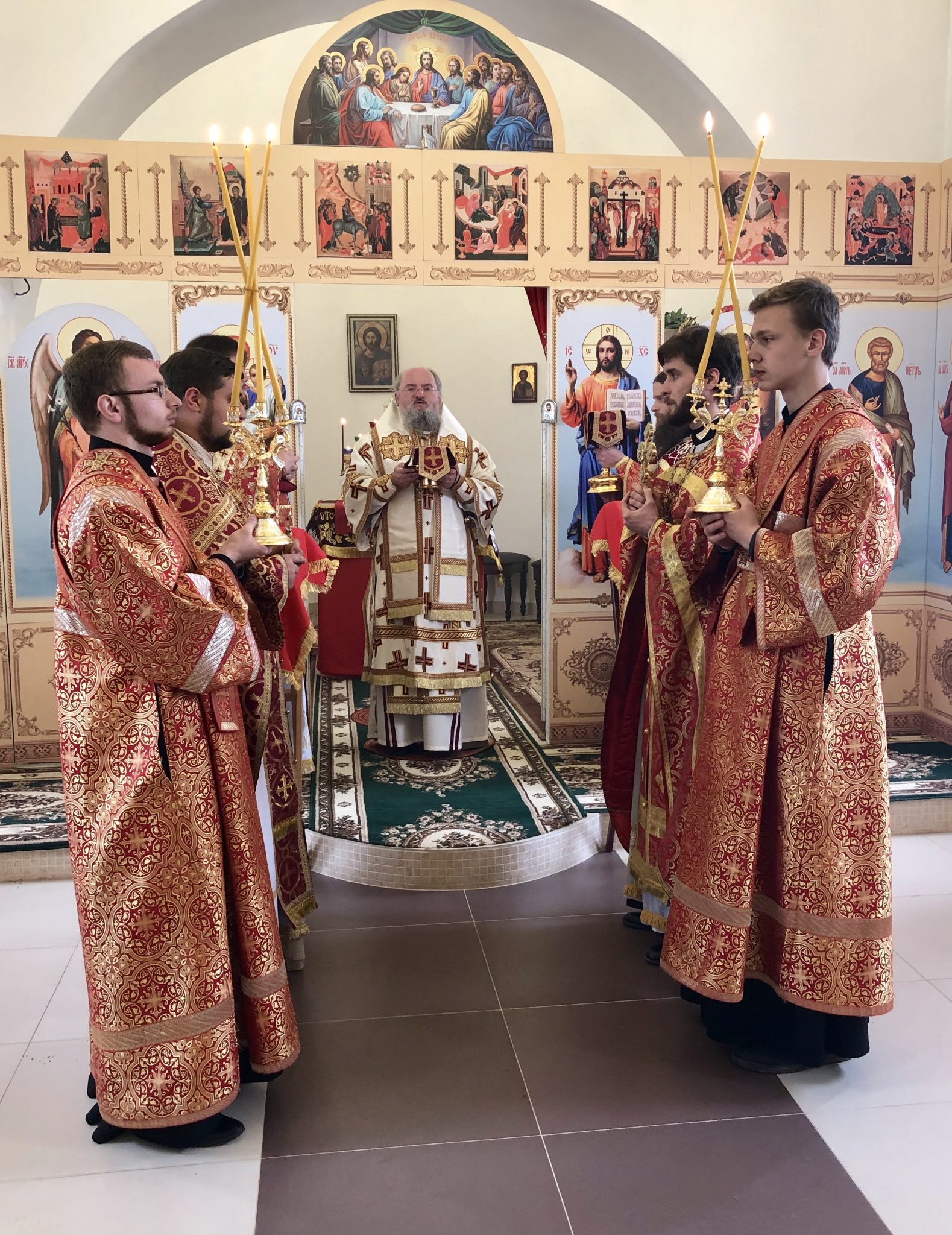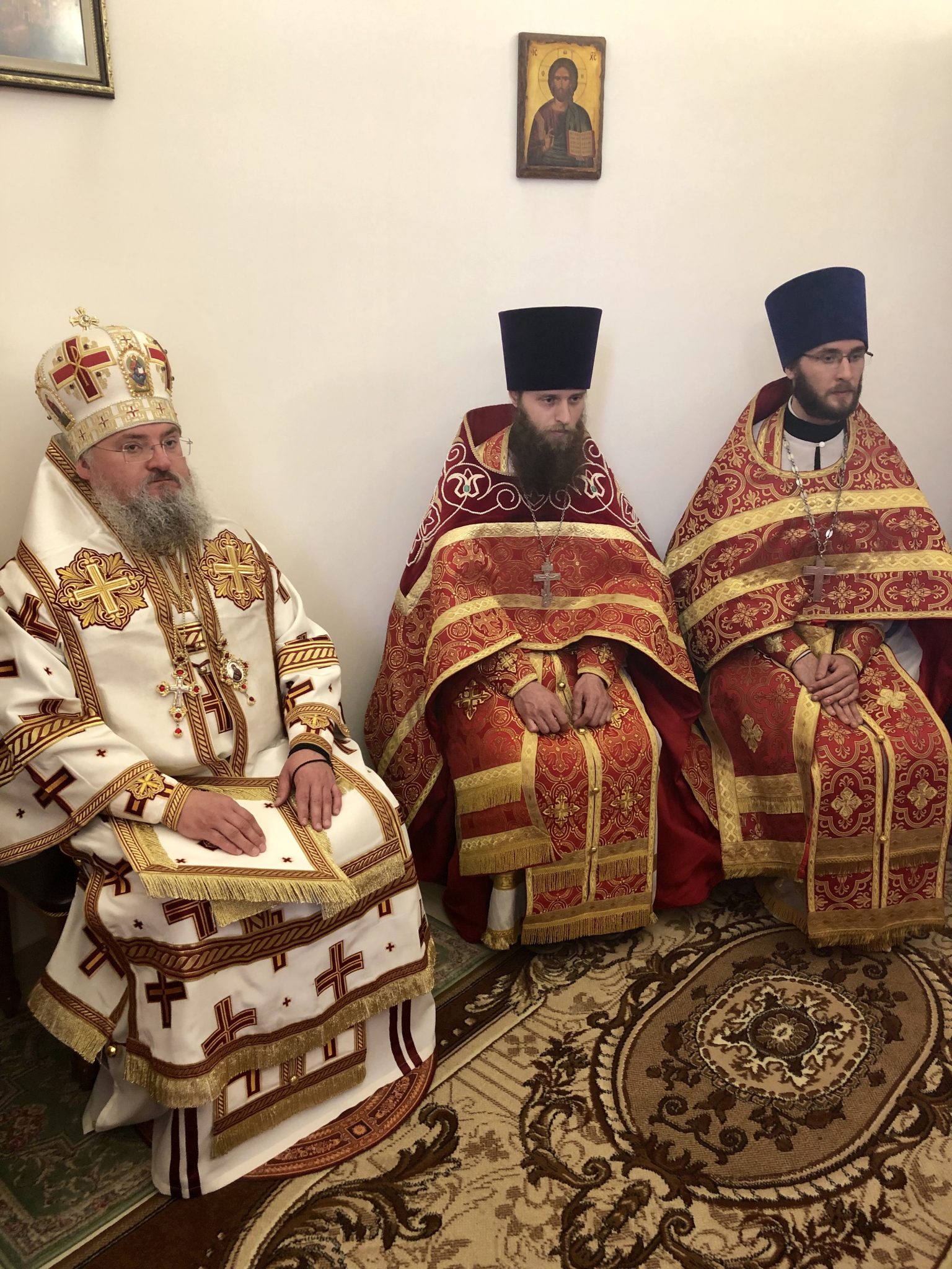 Преосвященнейшему владыке сослужили: иерей Алексий Ефименков – благочинный округа, протоиерей Антоний Хатунцев, иерей Виталий Денисов, иерей Артемий Арутюнян – настоятель храма, диакон Евгений Васильев и иеродиакон Виталий (Павленко).