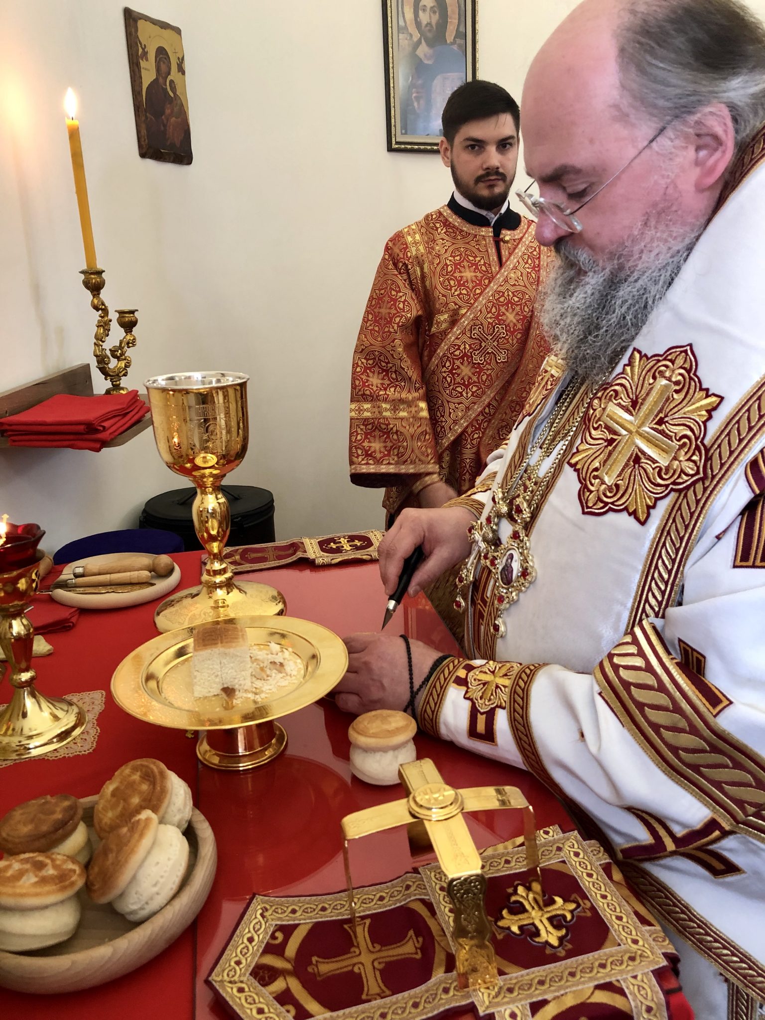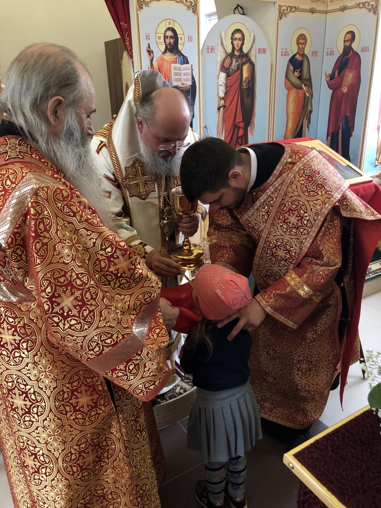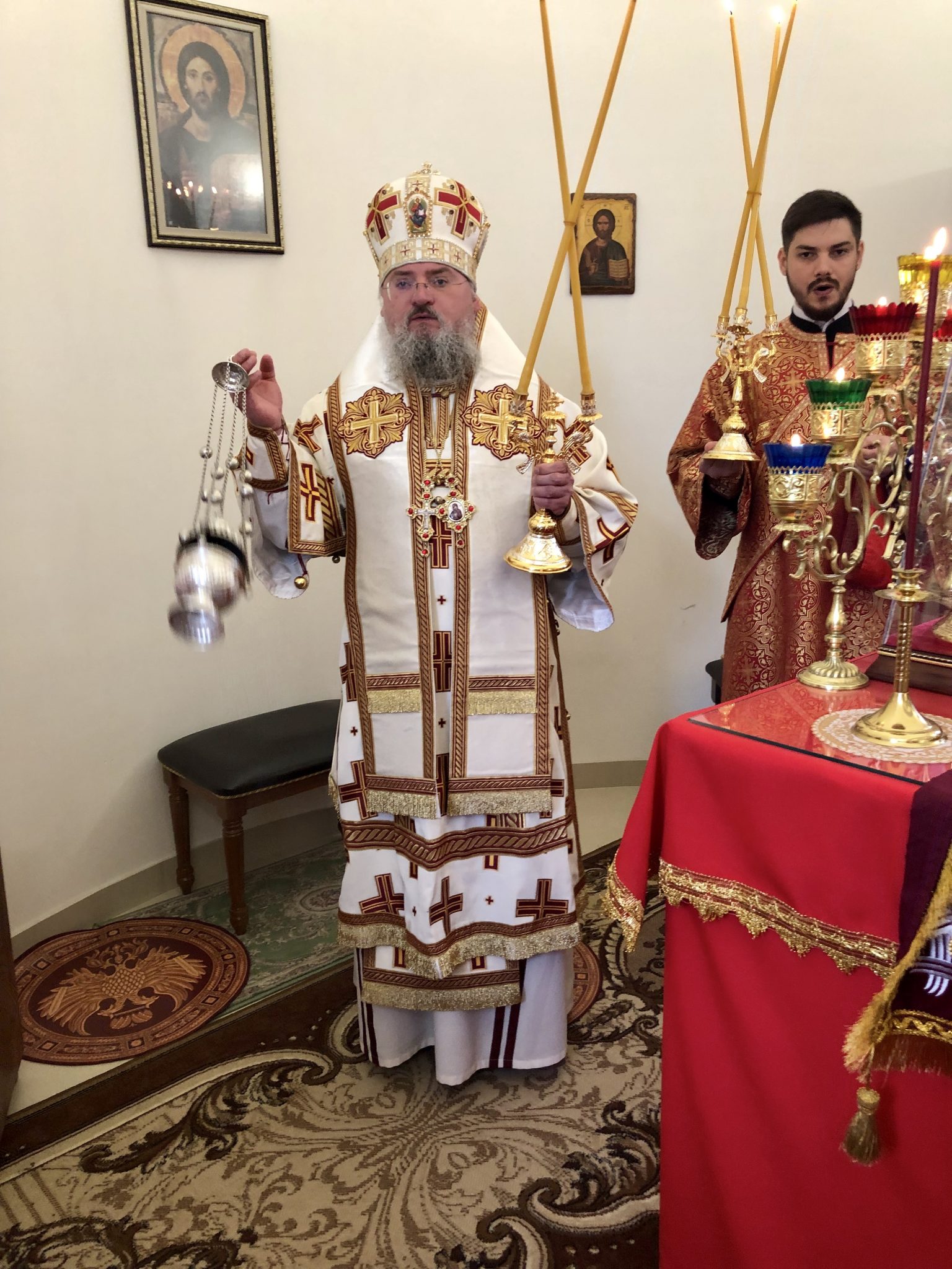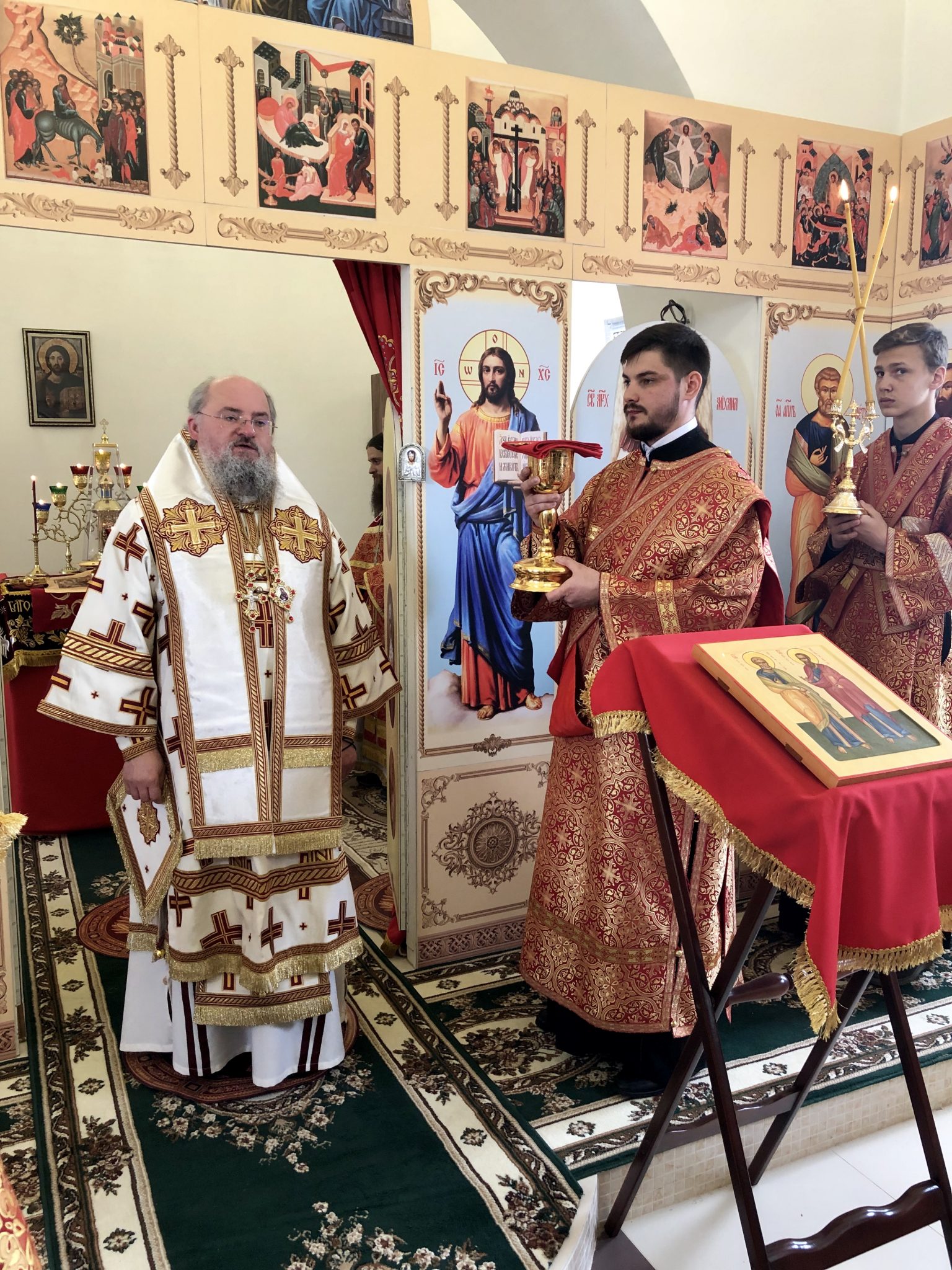 Преосвященнейшему владыке сослужили: иерей Алексий Ефименков – благочинный округа, протоиерей Антоний Хатунцев, иерей Виталий Денисов, иерей Артемий Арутюнян – настоятель храма, диакон Евгений Васильев и иеродиакон Виталий (Павленко).
