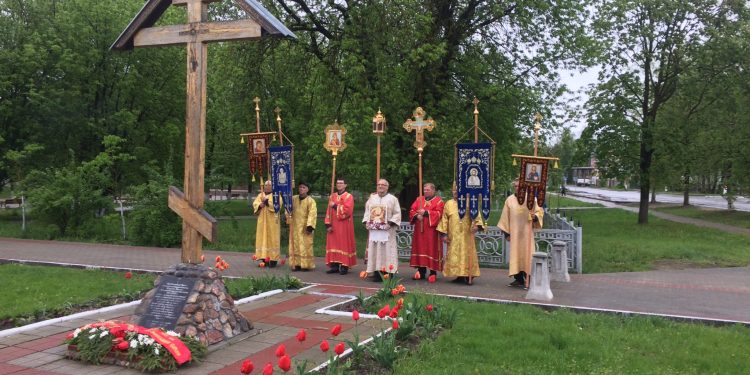 Торжества начались рано утром с праздничного шествия Крестного хода от собора к Поклонному Кресту, установленному на площади Победы. Духовенством собора у Креста совершена заупокойная лития о погибших воинах, за веру, Отечество и народ жизнь свою положивших, и всех страдальчески погибших в годы войны 1941-1945 гг. В этот праздничный день священнослужителями и прихожанами возложены венки и цветы к Кресту, вечному огню, братским могилам, памятным местам и мемориальным доскам.