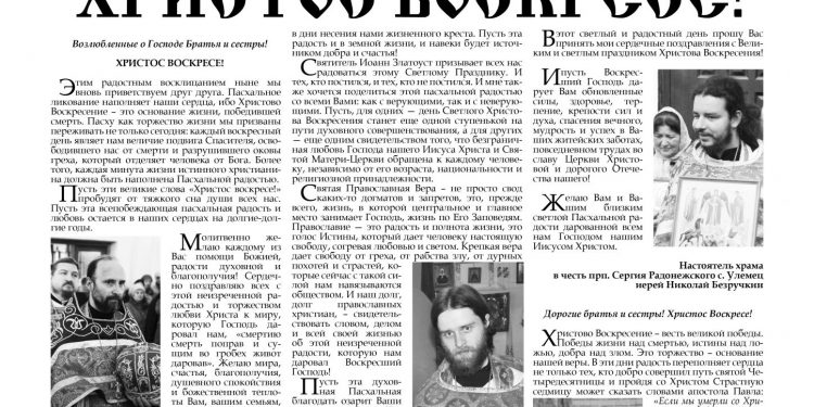 С первой страницы пасхального номера 2019 года своих прихожан поздравляют клирики храмов благочиния.
