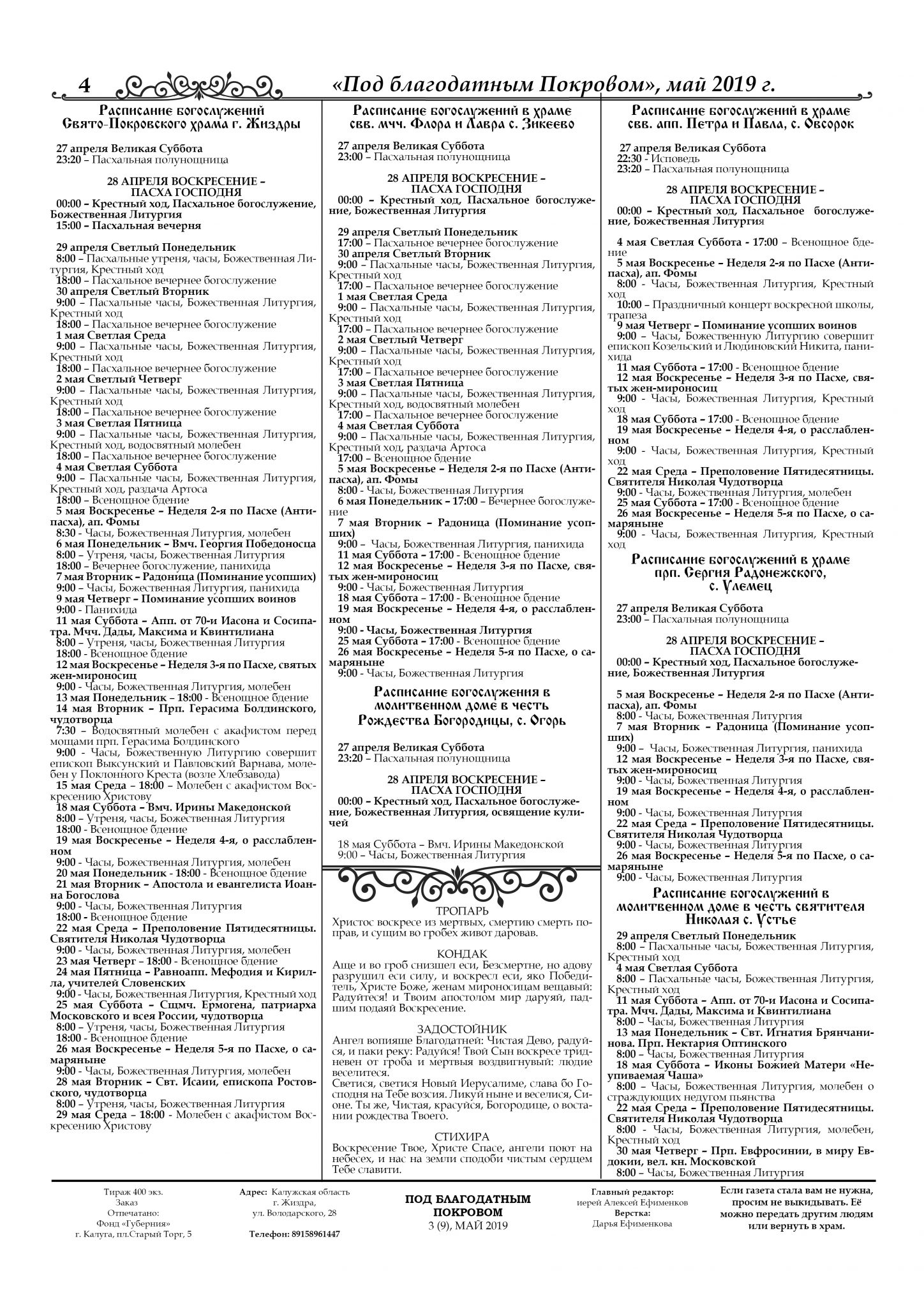 На последней странице по традиции – расписания богослужений в храмах Жиздринского благочиния.