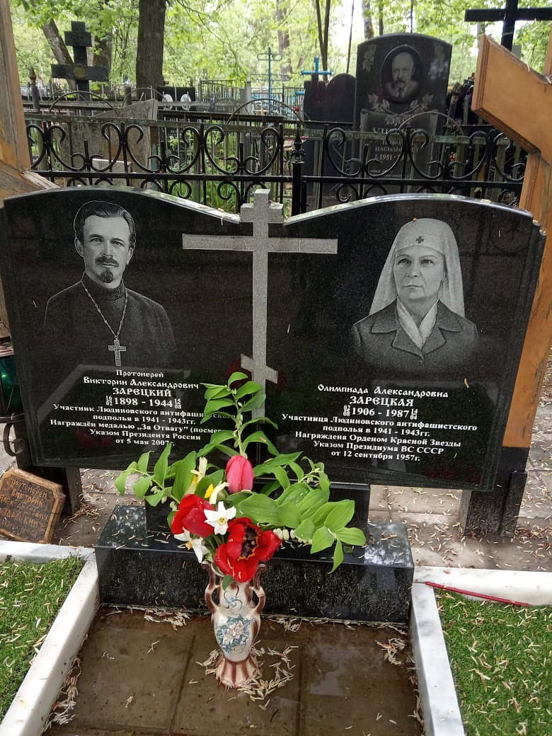 Поминовение воинов, отдавших жизни за Родину, продолжилось заупокойной литией у памятника, где традиционно, каждый год, священство и прихожане Лазаревского храма совершают заупокойные богослужения. Лития в память о протоиерее Викторине Зарецком, который своими подвигами приближал этот великий День Победы, была отслужена на месте захоронения священника.