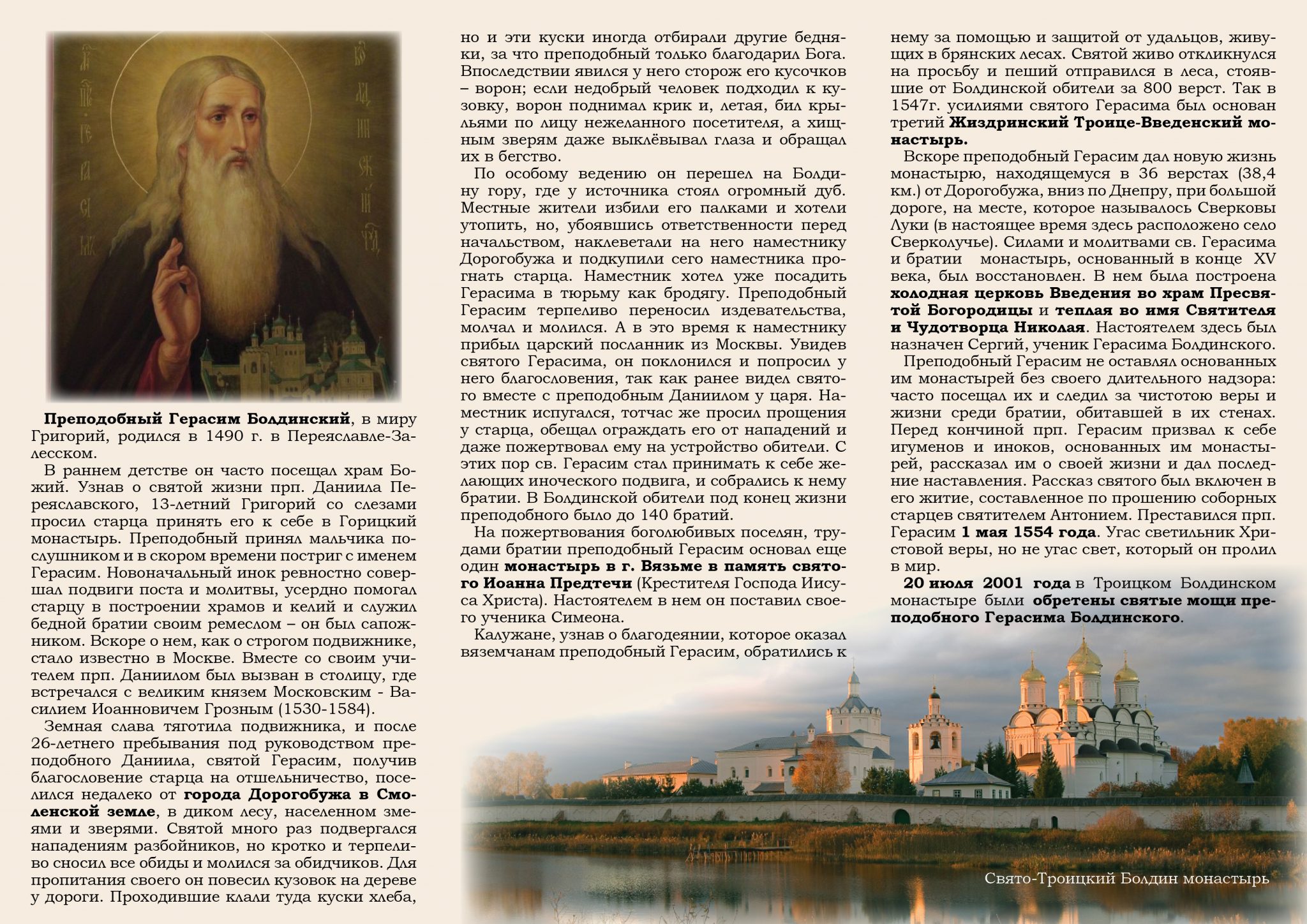 В Жиздринском благочинии пройдут Чтения памяти преподобного Герасима Болдинского