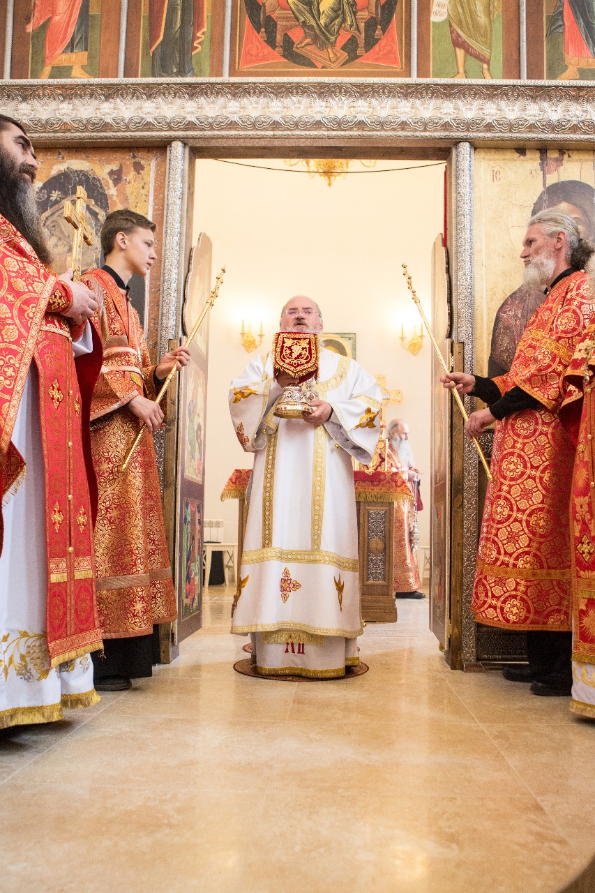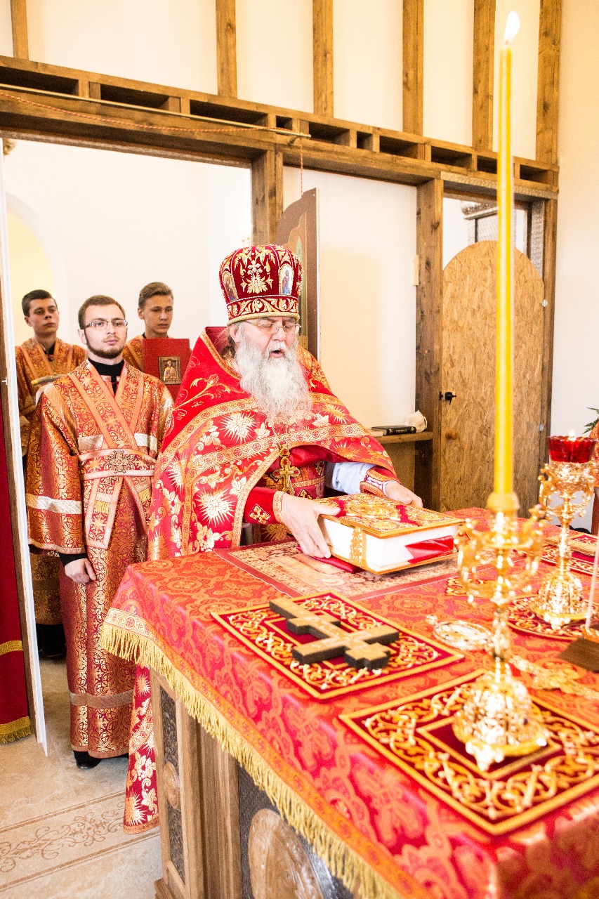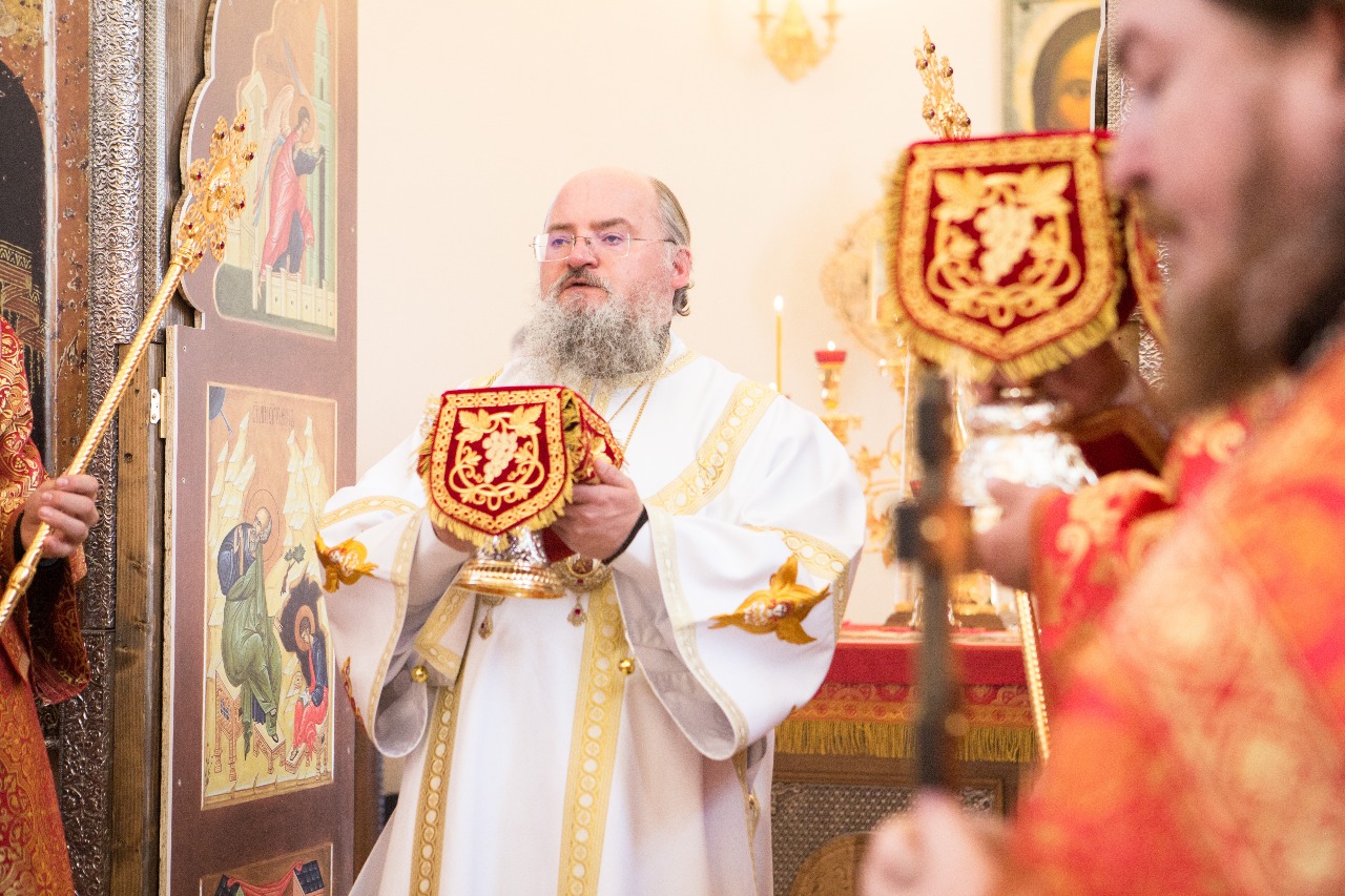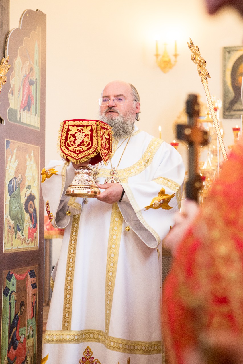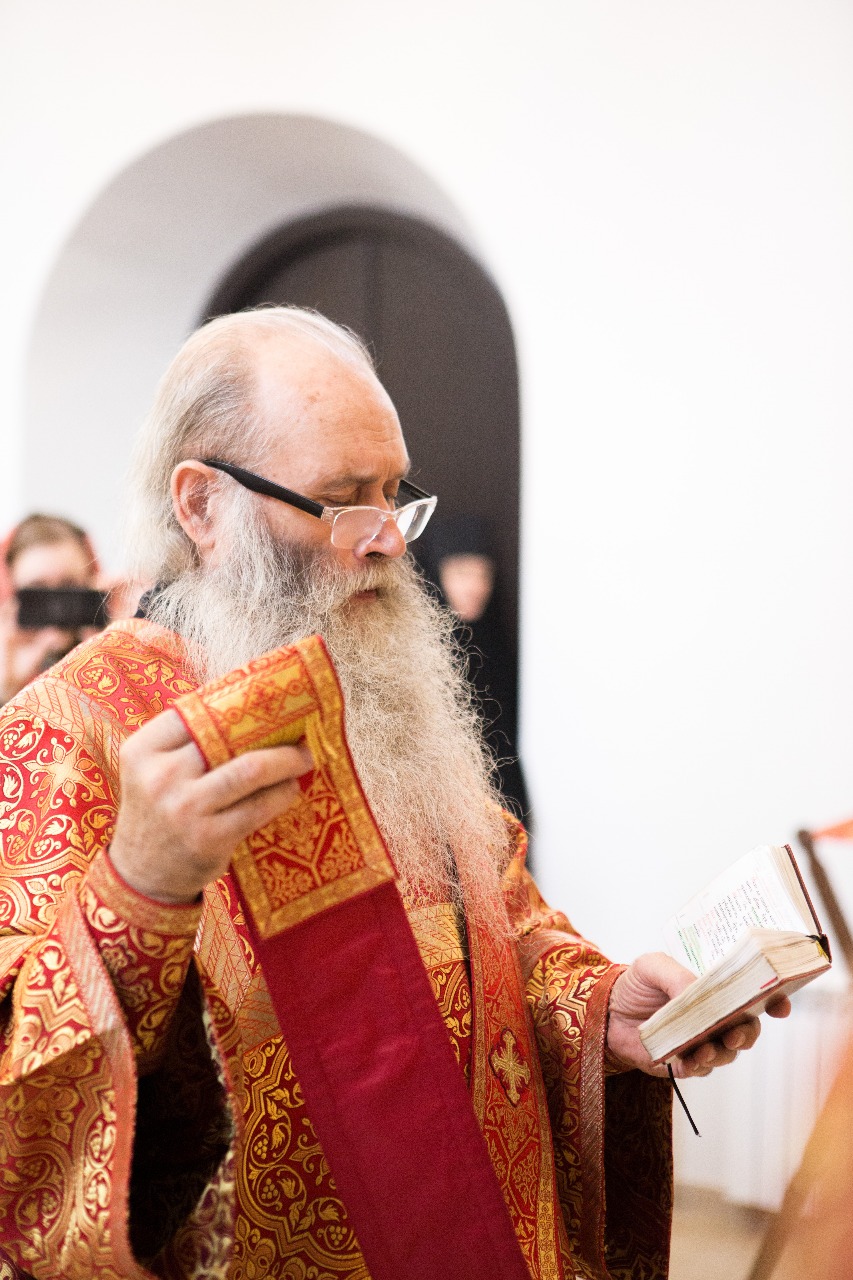 Преосвященнейшему владыке сослужили: протоиерей Алексий Жиганов, игумен Михаил (Семенов), иеромонах Амвросий (Косоруков), протоиерей Антоний Хатунцев, иеромонах Паисий (Курмаз), иерей Тихон Худяков, диакон Евгений Ковригин и иеродиакон Виталий (Павленко).
