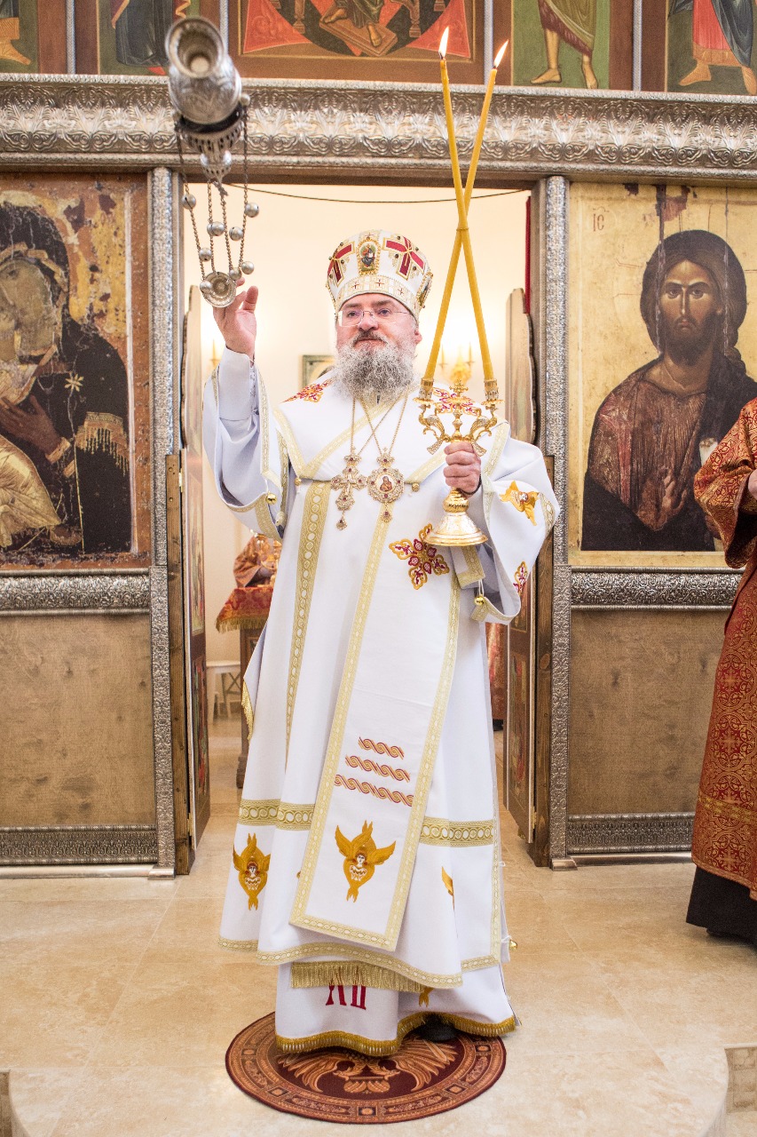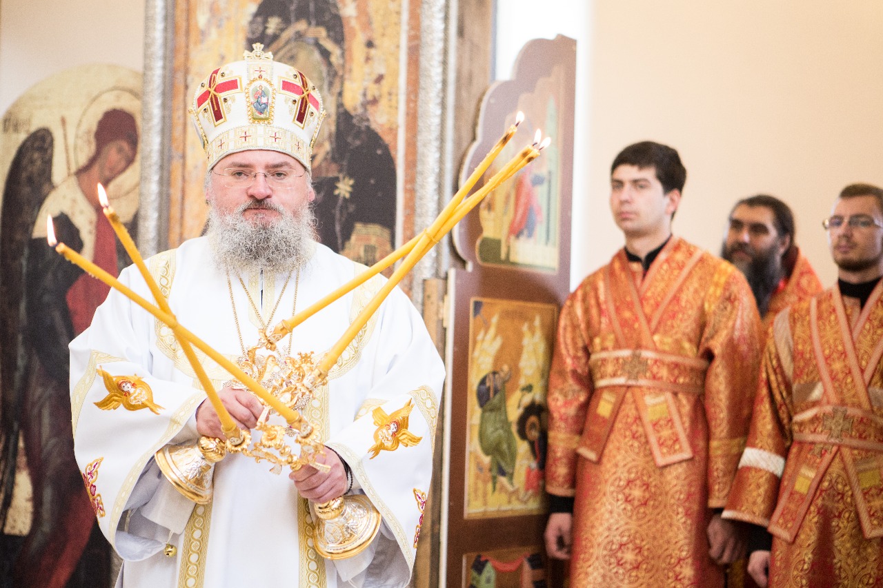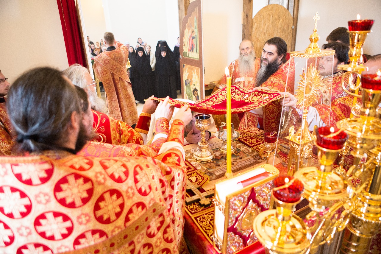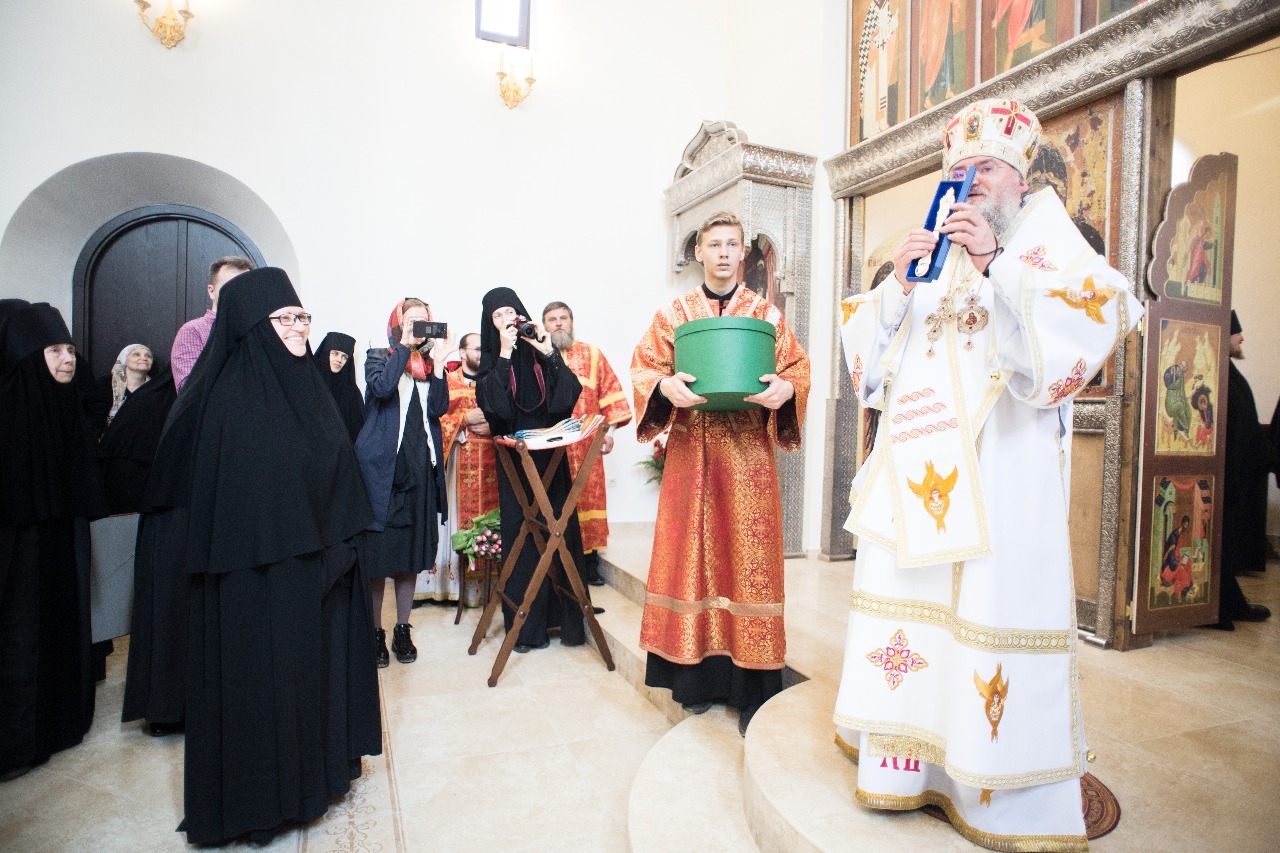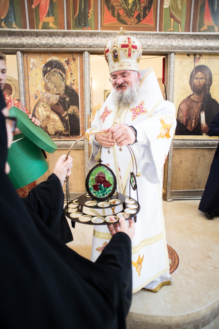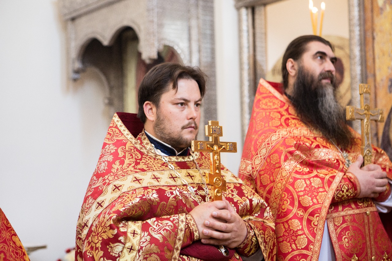 Преосвященнейшему владыке сослужили: протоиерей Алексий Жиганов, игумен Михаил (Семенов), иеромонах Амвросий (Косоруков), протоиерей Антоний Хатунцев, иеромонах Паисий (Курмаз), иерей Тихон Худяков, диакон Евгений Ковригин и иеродиакон Виталий (Павленко).