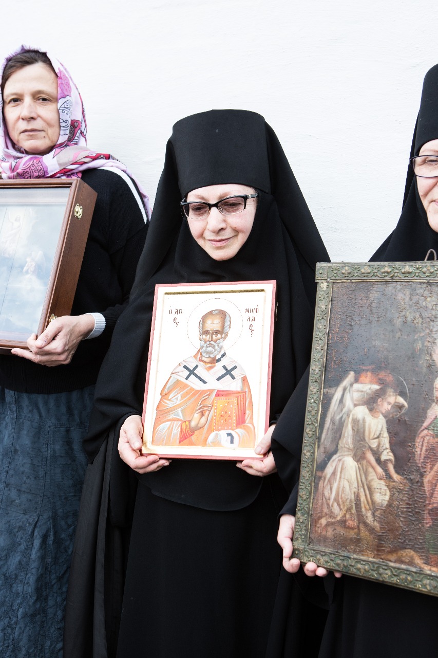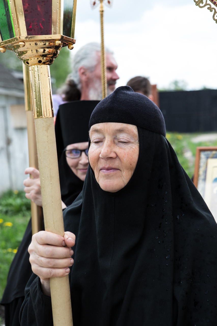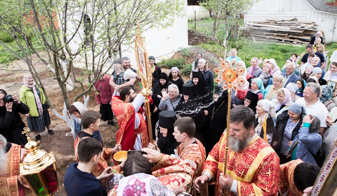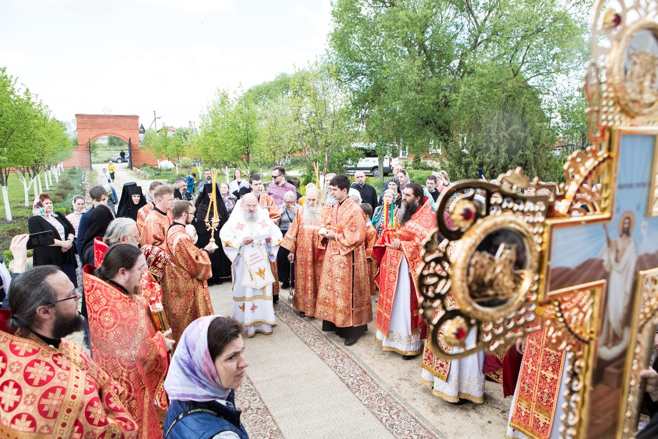 По заамвонной молитве состоялся пасхальный крестный ход вокруг новоосвященного храма, в завершении которого, сотворив молитву святым Женам Мироносицам, епископ Никита обратился к богомольцам с архипастырским словом. Владыка поздравил духовенство, сестер обители и всех прибывших на праздник со Светлым Христовым Воскресением и престольным торжеством.