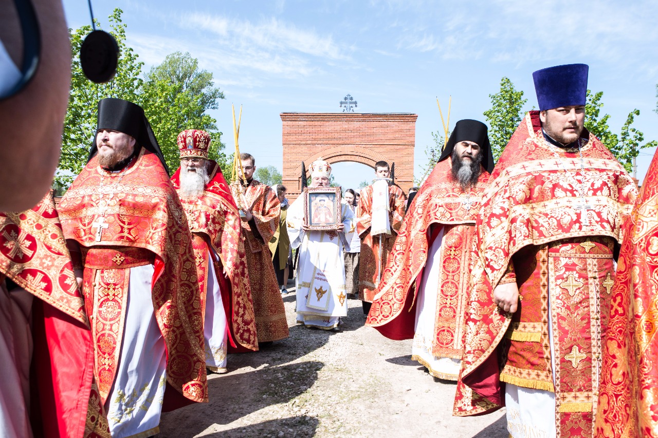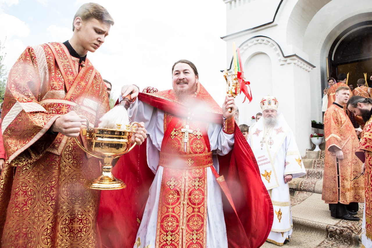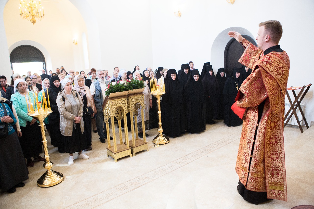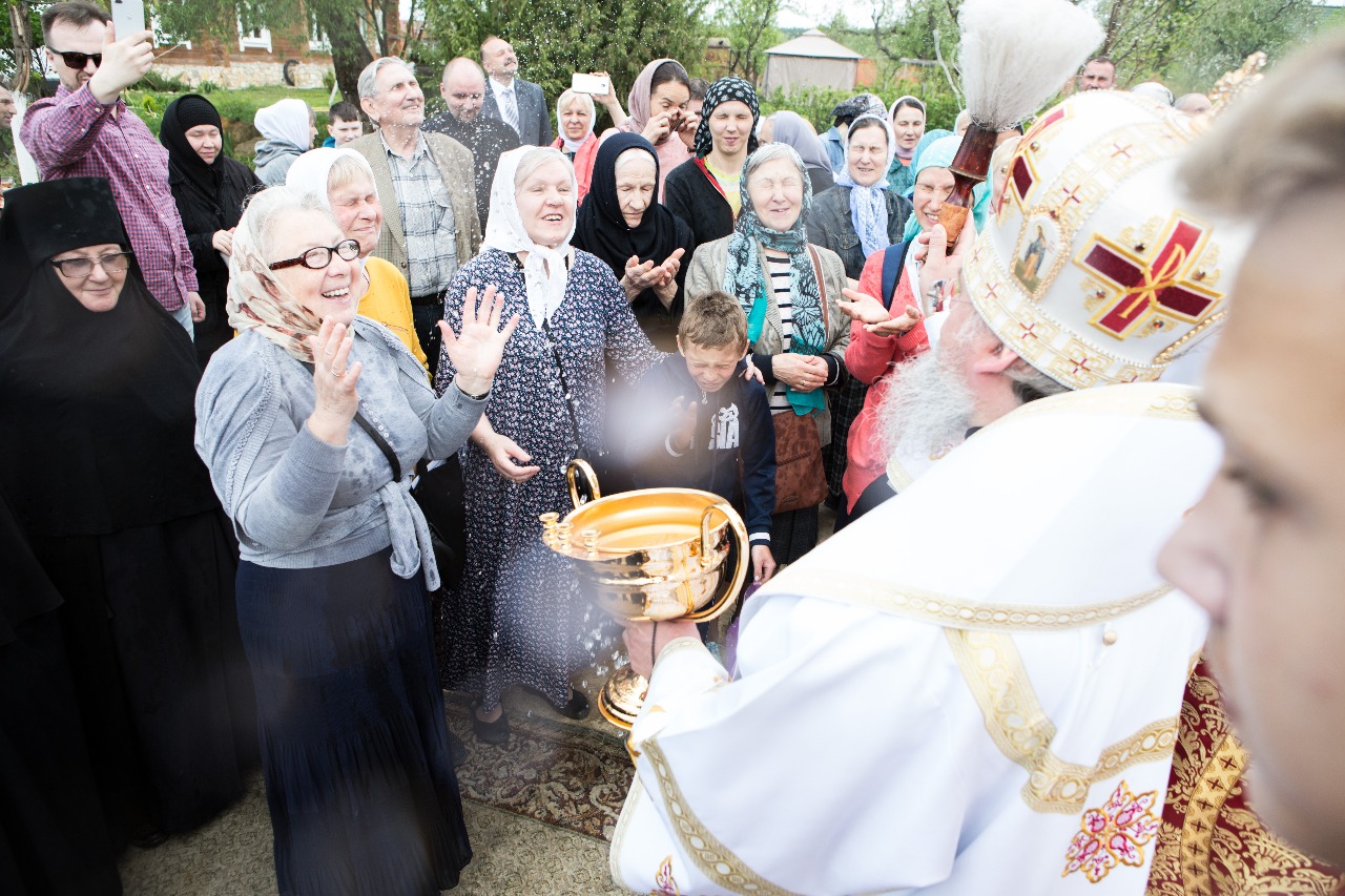 По заамвонной молитве состоялся пасхальный крестный ход вокруг новоосвященного храма, в завершении которого, сотворив молитву святым Женам Мироносицам, епископ Никита обратился к богомольцам с архипастырским словом. Владыка поздравил духовенство, сестер обители и всех прибывших на праздник со Светлым Христовым Воскресением и престольным торжеством.