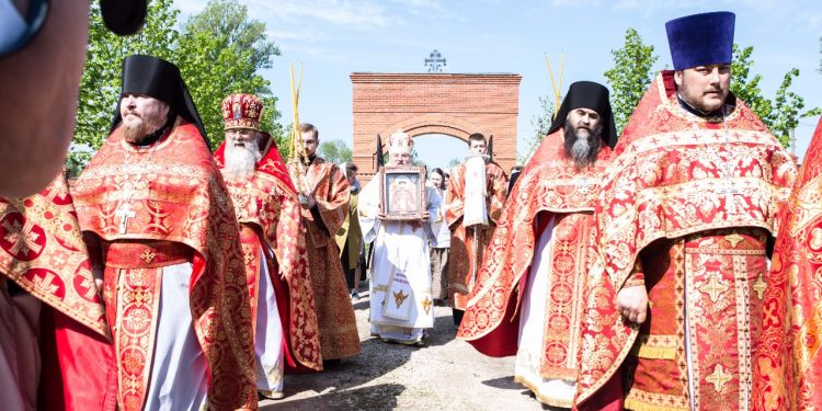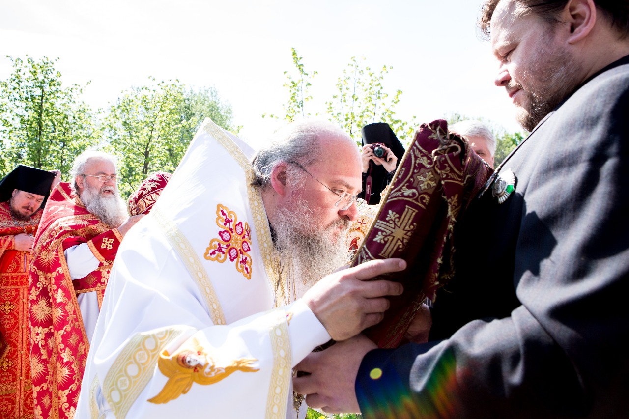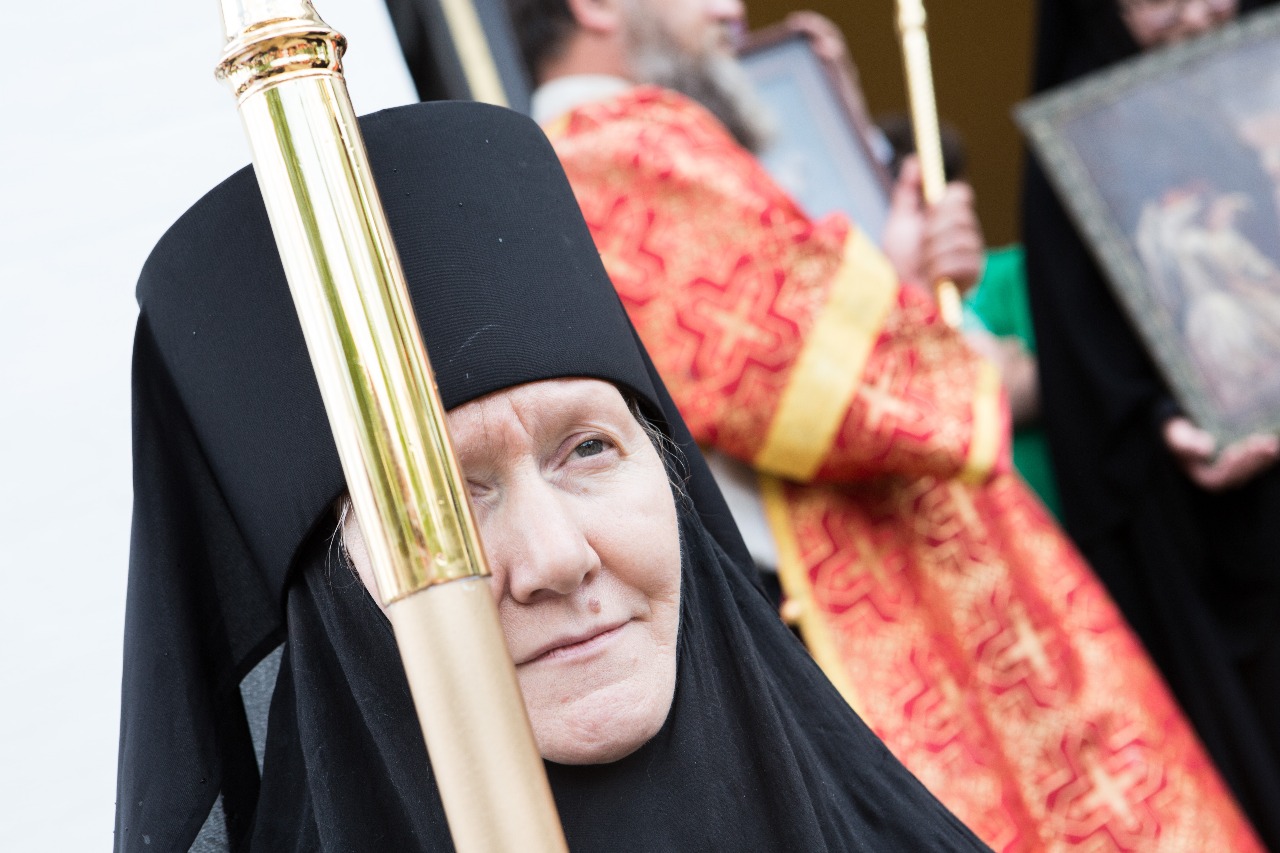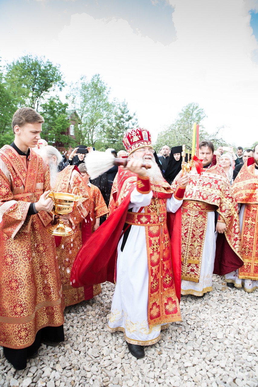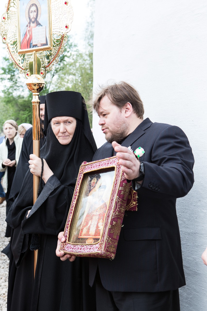 По заамвонной молитве состоялся пасхальный крестный ход вокруг новоосвященного храма, в завершении которого, сотворив молитву святым Женам Мироносицам, епископ Никита обратился к богомольцам с архипастырским словом. Владыка поздравил духовенство, сестер обители и всех прибывших на праздник со Светлым Христовым Воскресением и престольным торжеством.