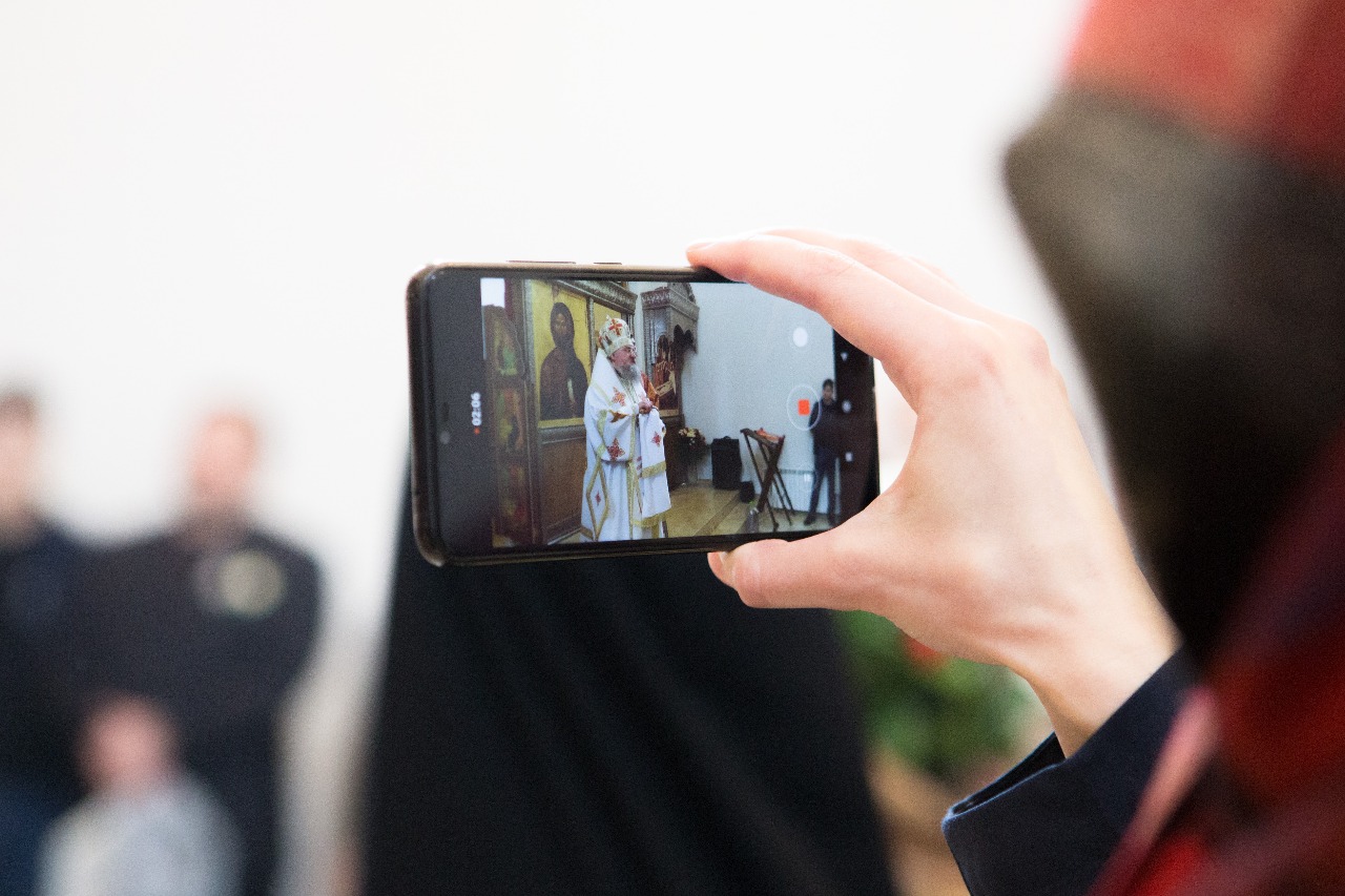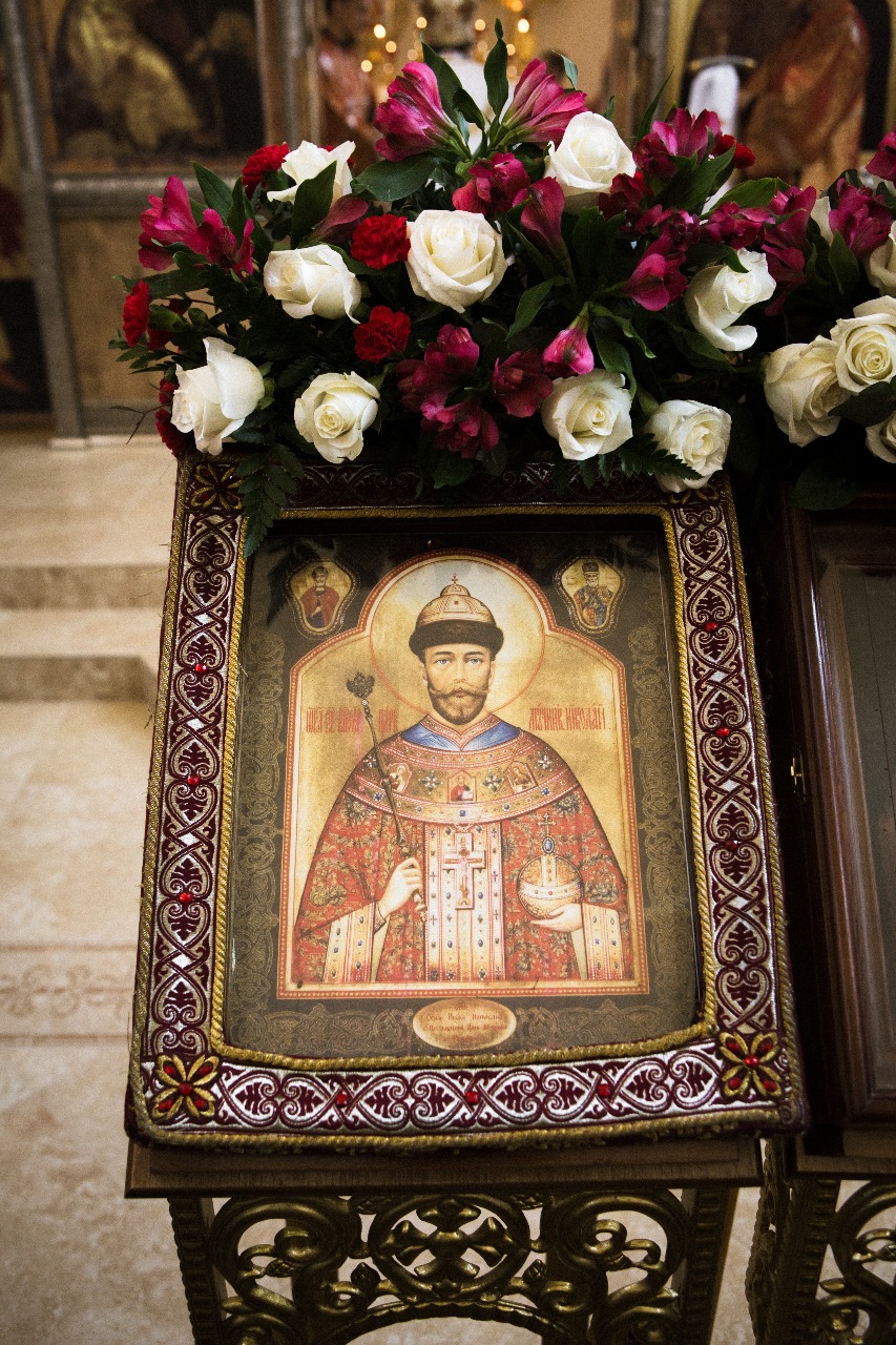 Перед началом богослужения владыка, духовенство и богомольцы у святых врат торжественно встретили мироточивый образ страстотерпца царя Николая Второго, привезенный в Козельскую епархию для поклонения.