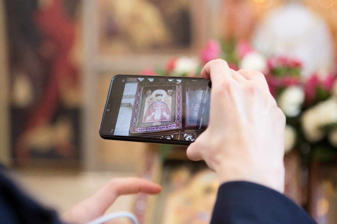 Все богомольцы получили в этот день небольшие иконки Царя Страстотерпца, святых Жен Мироносиц, а женщины по цветку тюльпана в поздравление с православным женским днем.