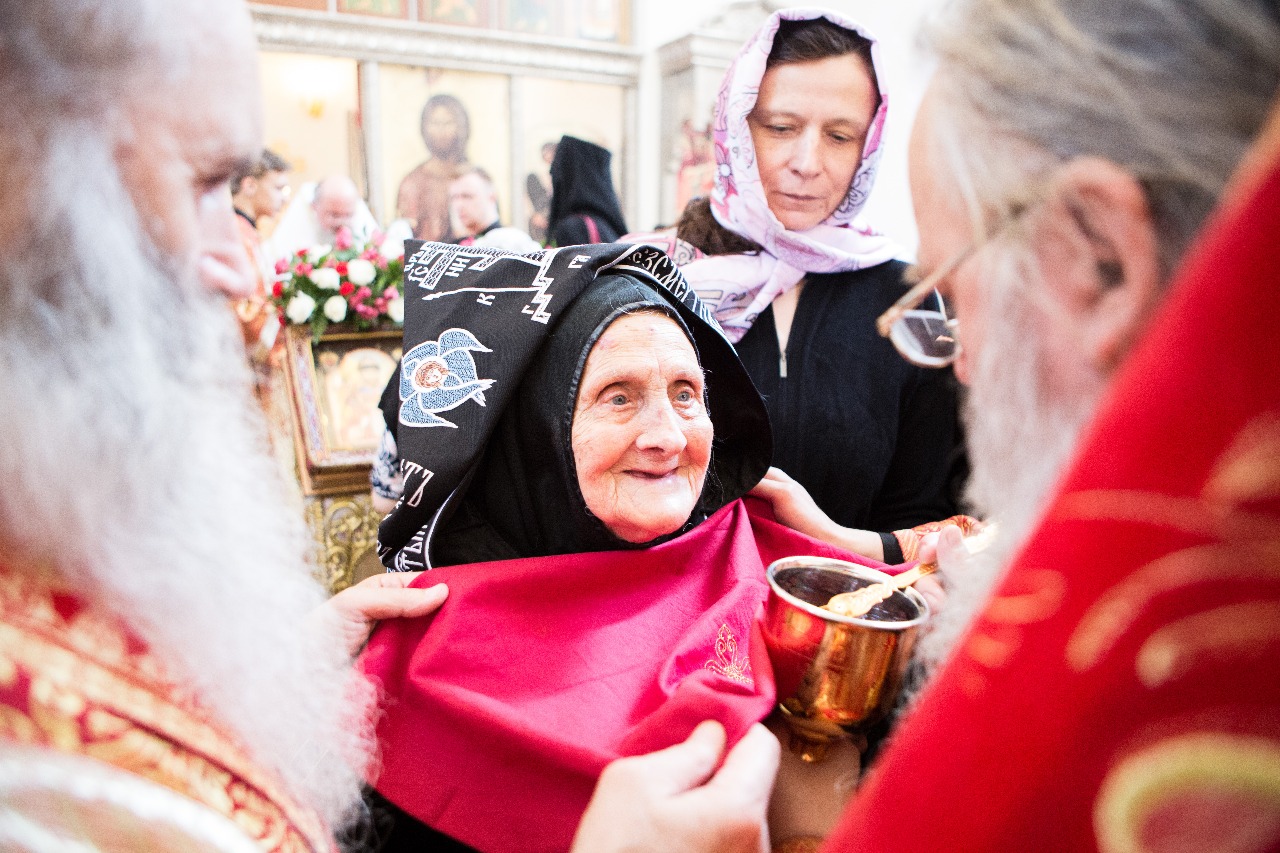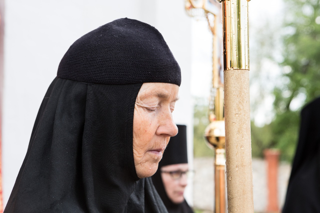 За литургией молились старшая сестра общины монахиня Иоанна (Павлова) с сестрами, настоятельница монастыря Успенской Феклиной пустыни игумения Виталия (Кочетова) с насельницами ее обители, многочисленные паломники, прибывшие на торжество.
