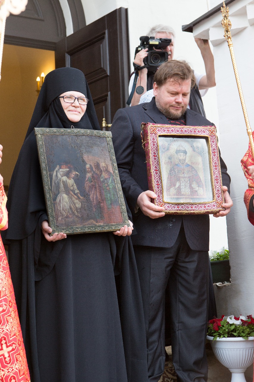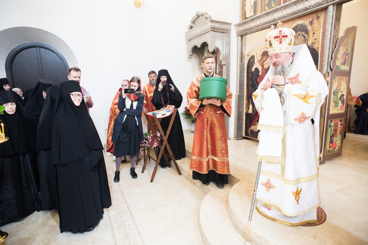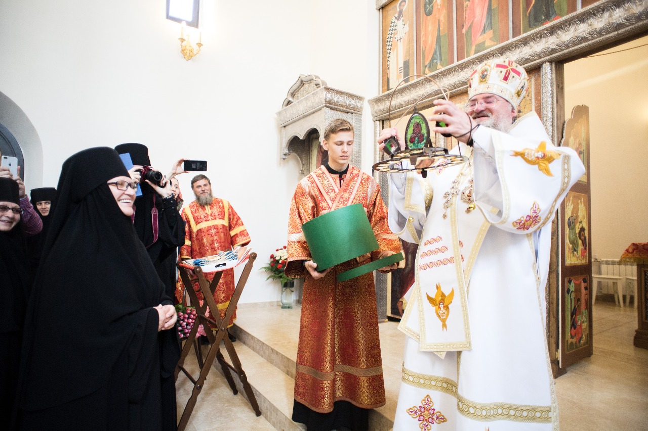 Празднующую в сей день память своей небесной покровительницы – Мироносицы Иоанны, старшую сестру обители монахиню Иоанну (Павлову) архипастырь поблагодарил за труды, подъятые ее и по строительству храма и по окормлению общины и преподнес ее памятные подарки.