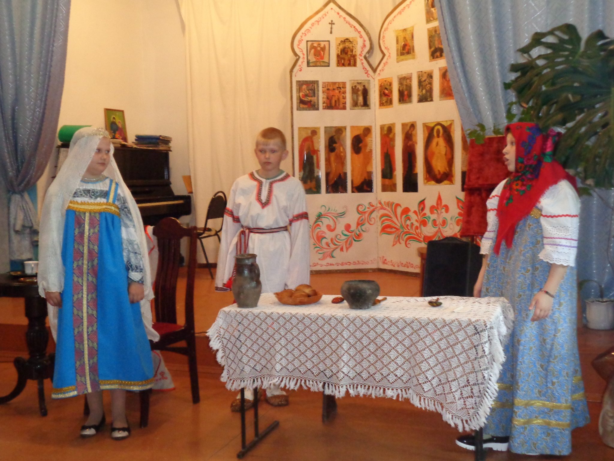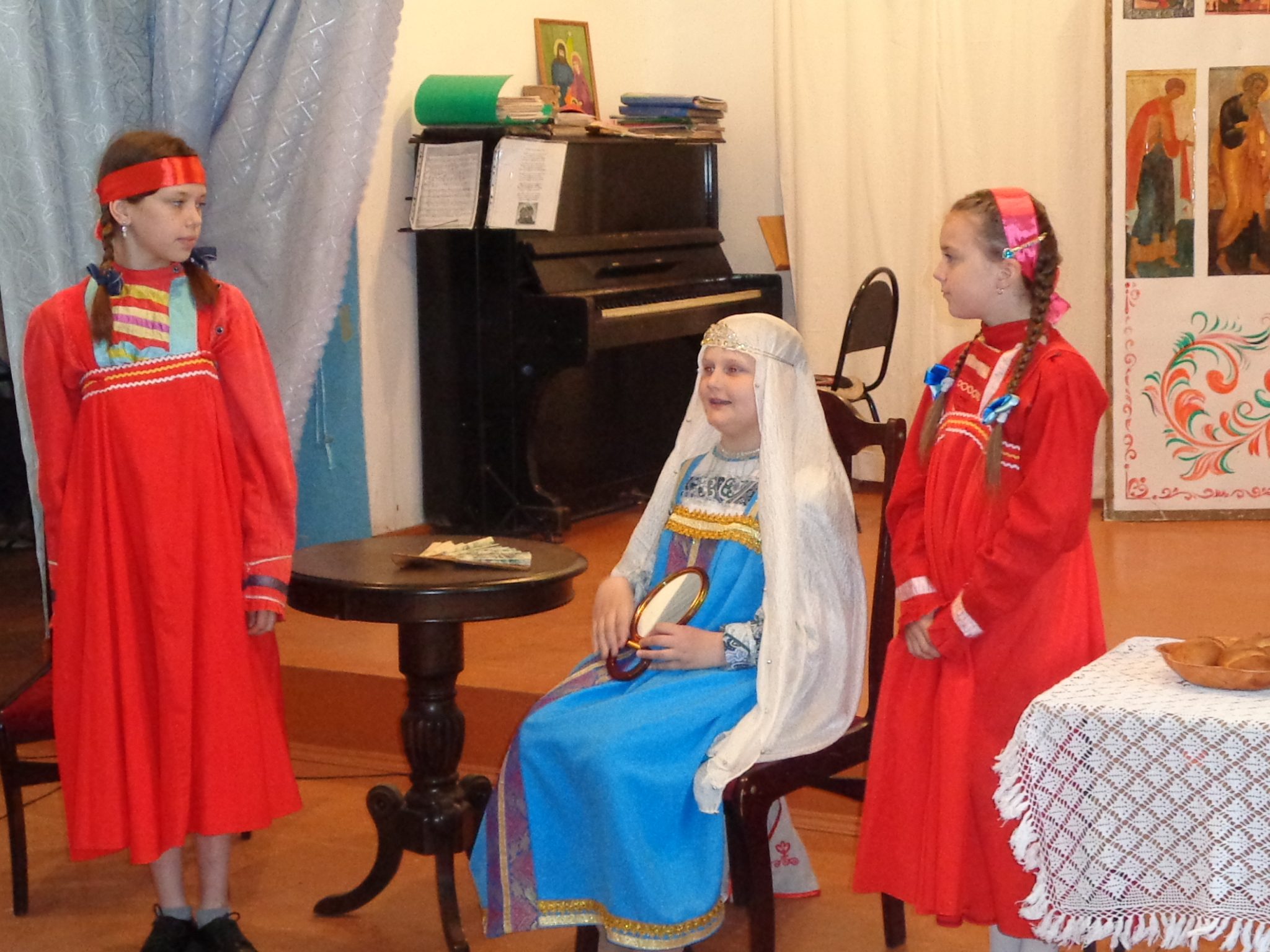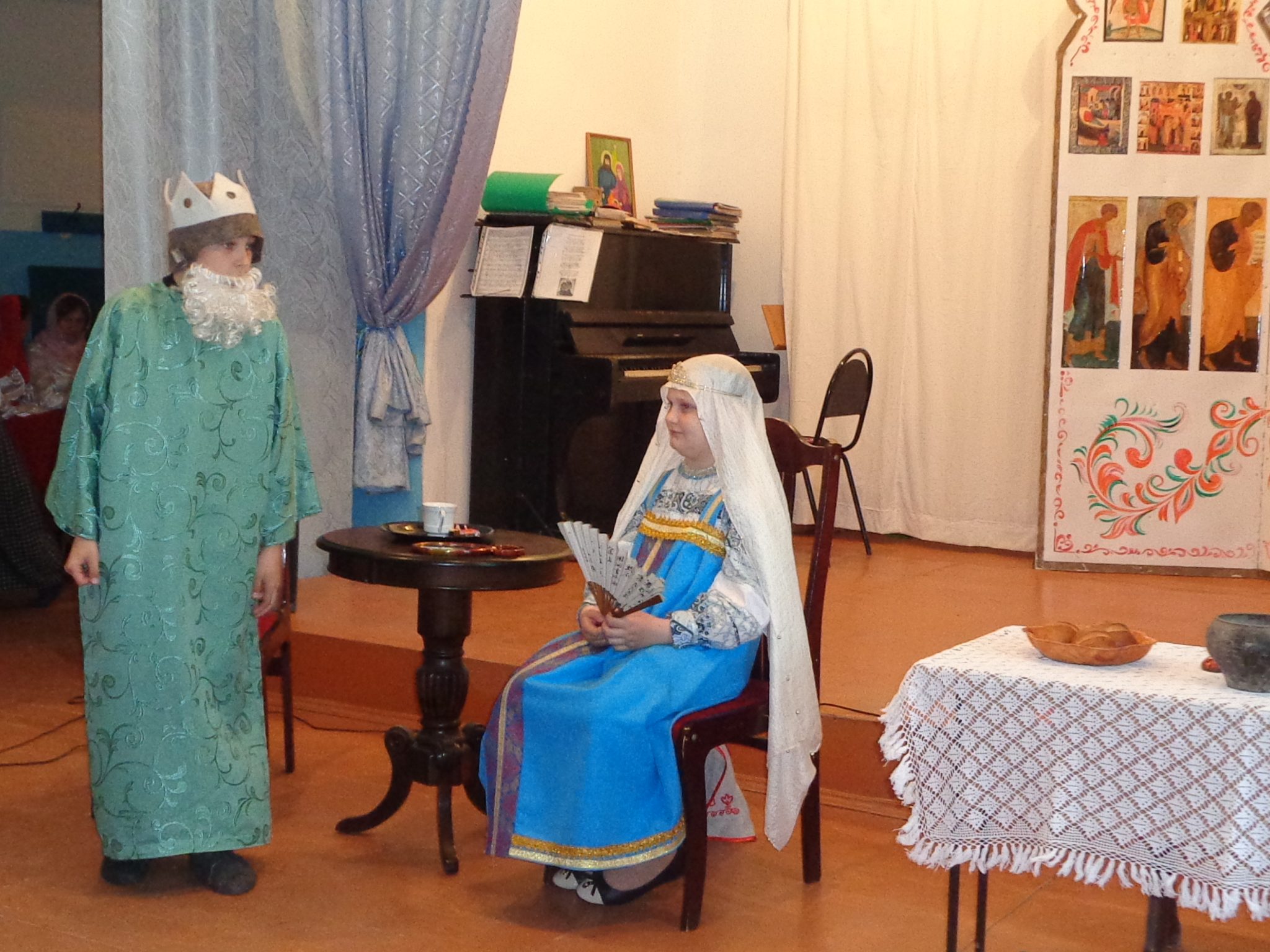 Дети из воскресной школы показали сказку «Жила-была царевна» о добром отношении к ближним. В адрес присутствующих женщин и взрослые, и дети читали стихи.