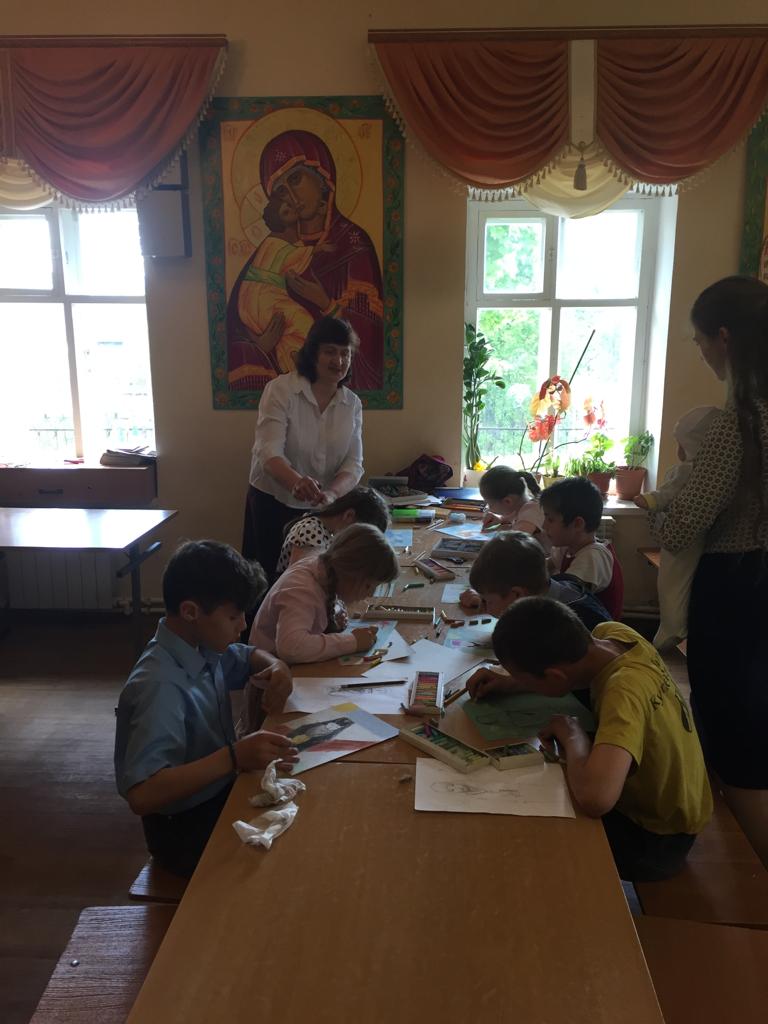 В рамках празднования 575-летия основания Свято-Пафнутьева Боровского монастыря в воскресной школе Благовещенского храма города Козельска были проведены тематические занятия. Детям рассказали об обители преподобного, его житии и духовном подвиге. Как результат урока дети подготовили рисунки о монастыре и преподобном Пафнутии.