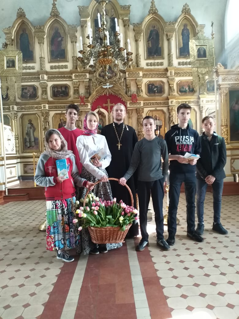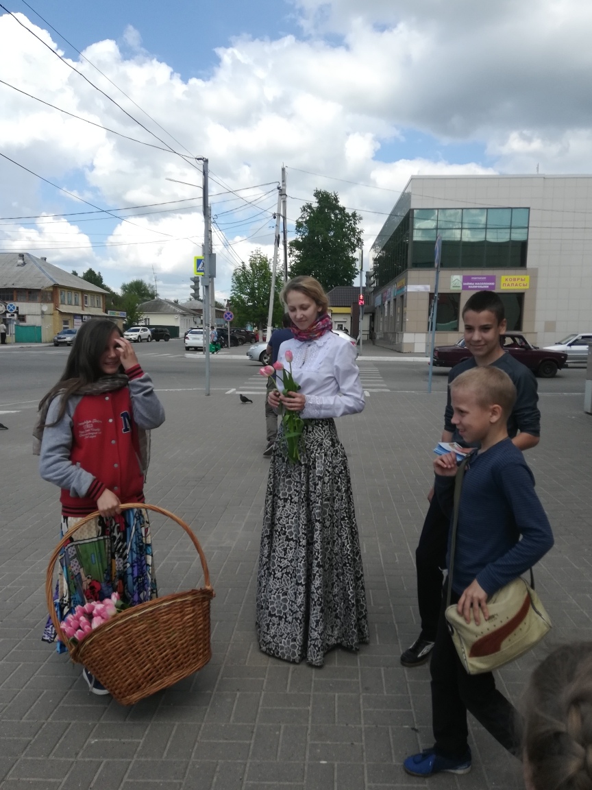 В неделю 3-ю по Пасхе празднуется память святых Жен Мироносиц. Силами молодого актива храма в честь Благовещения Пресвятой Богородицы города Козельска была подготовлена и проведена акция. После Литургии ребята пошли на улицы города и каждой встречной девочке, девушке, женщине, бабушке, дарили цветок и буклет в котором рассказывалось о смысле праздника.