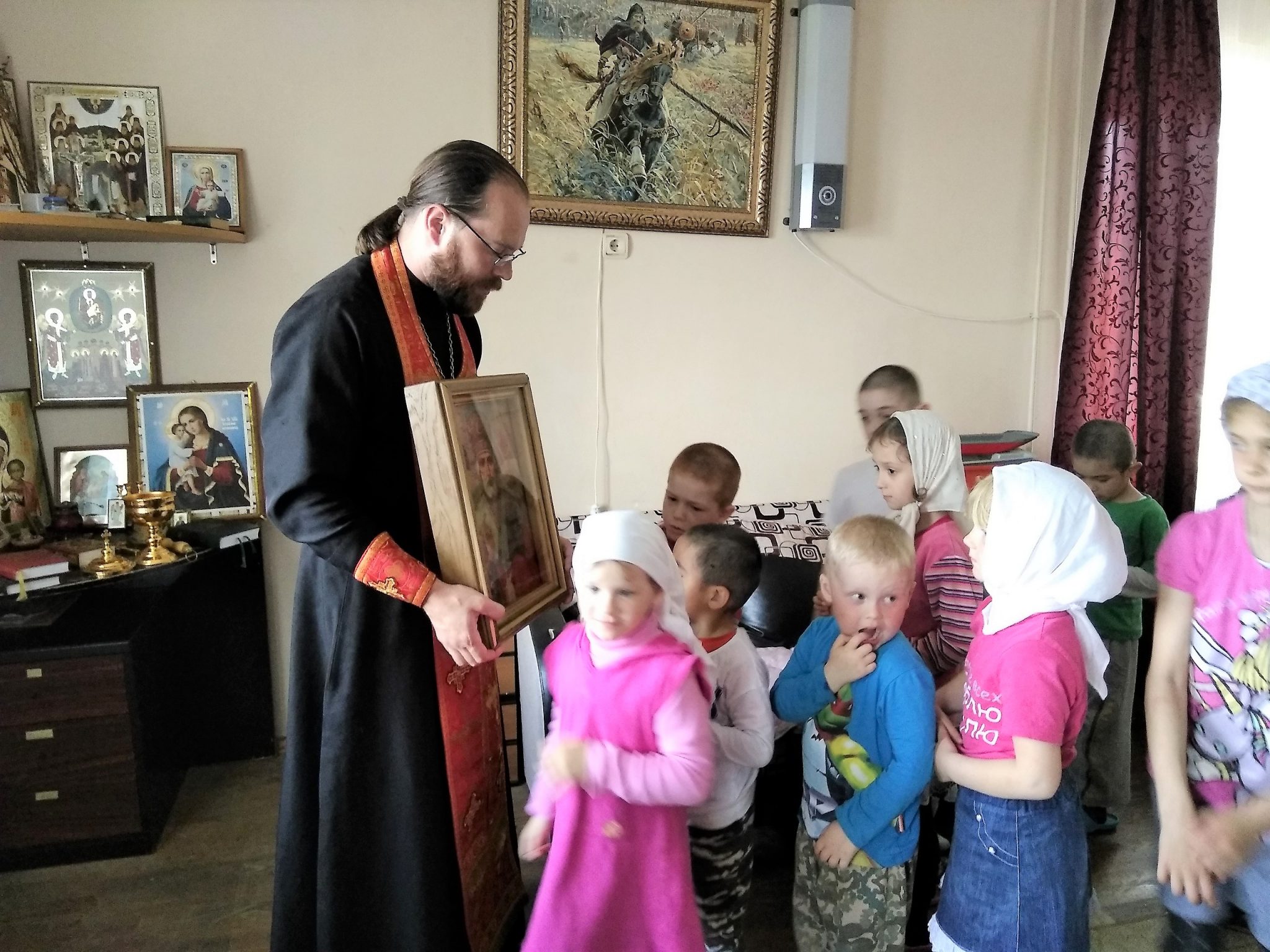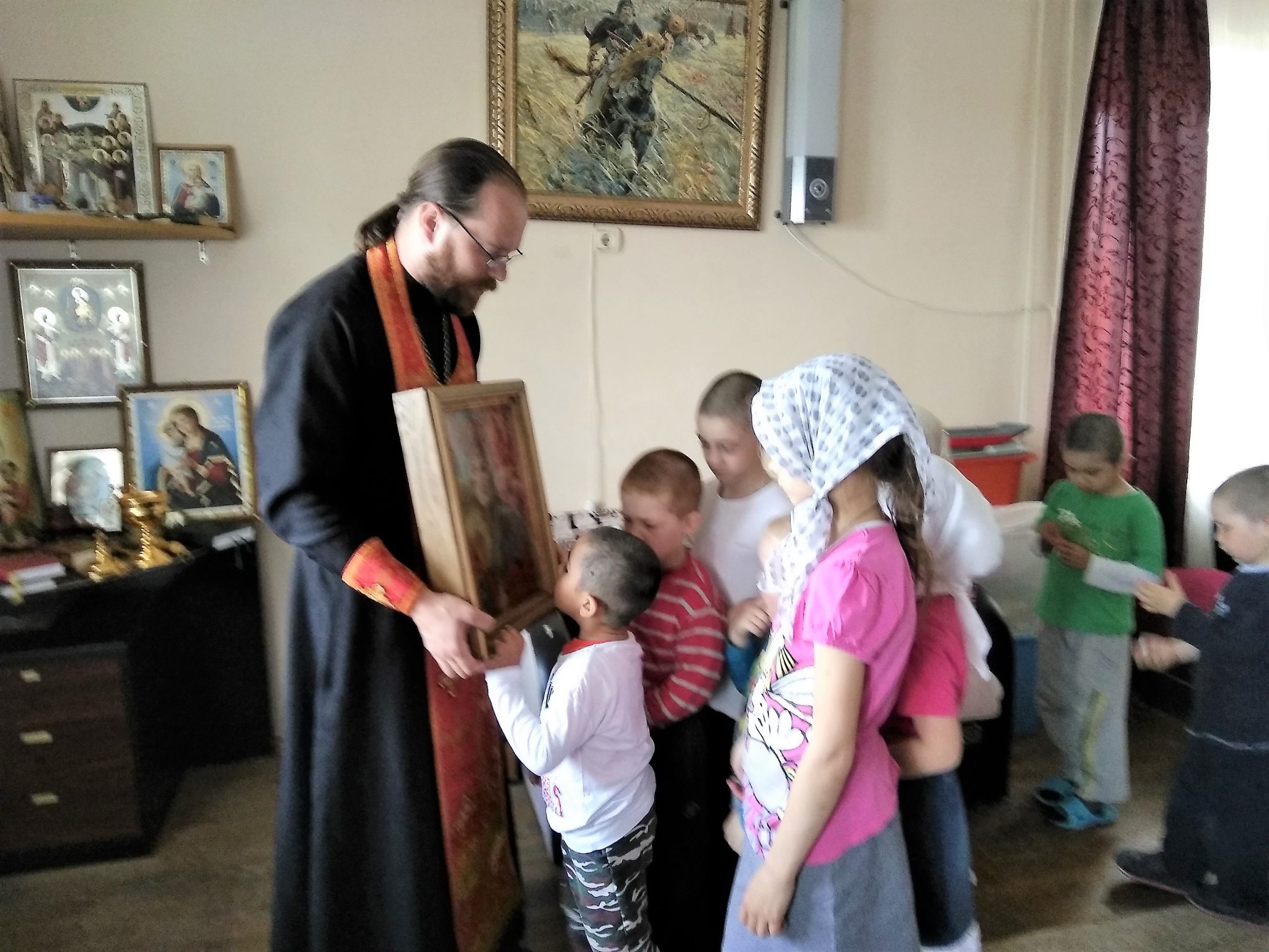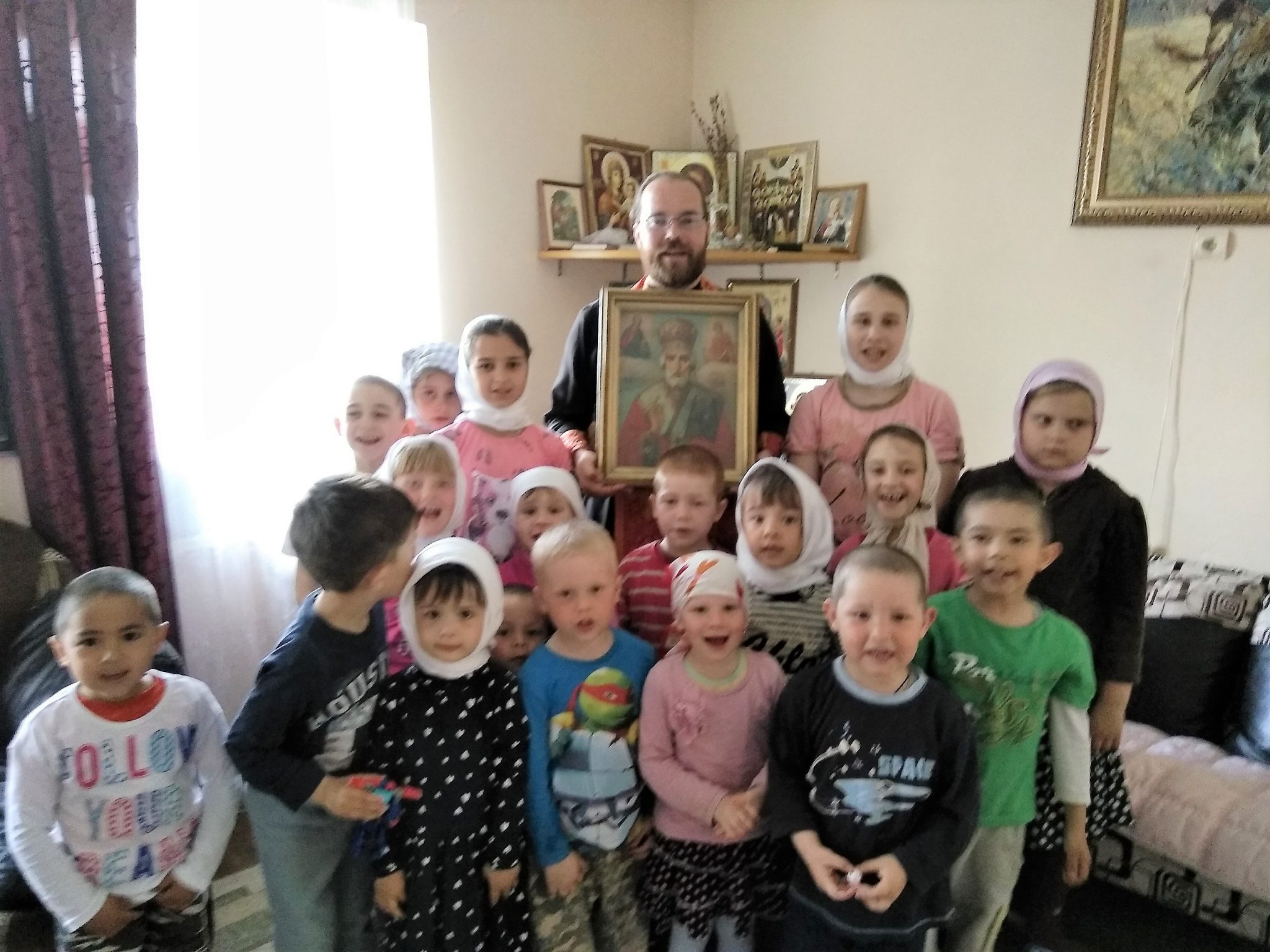 22 мая, в день памяти святителя и чудотворца Николая архиепископа Мир Ликийского, духовник Епархиального социального Центра помощи семье и детям «Рождественский» священник Тихон Худяков совершил в молельной комнате Центра молебен святителю Николаю, а затем провел беседу в которой рассказал детям о святителе Николае, его житии и о почитании его в православном мире.