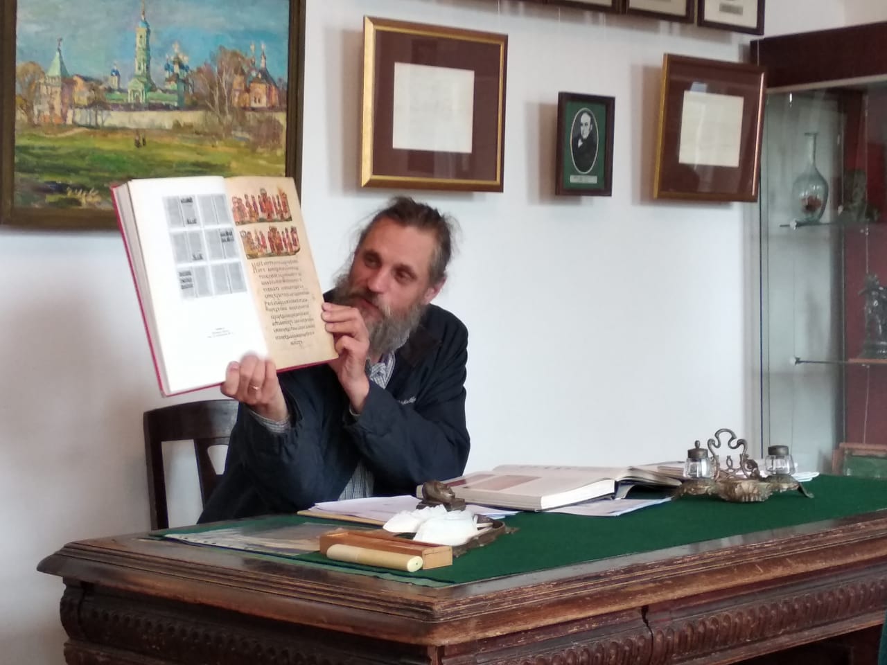 Директор музея Яценко Илья Вячеславович рассказал о роли просвятителей в обращении славян в христианскую веру и о значимости христианской проповеди на родном языке, как носителе высокой культуры. С приходом христианства славянский мир познакомился с греческой культурой, имеющей  корни, уходящие в глубокую древность, питающую всю среднеземноморскую культуру.