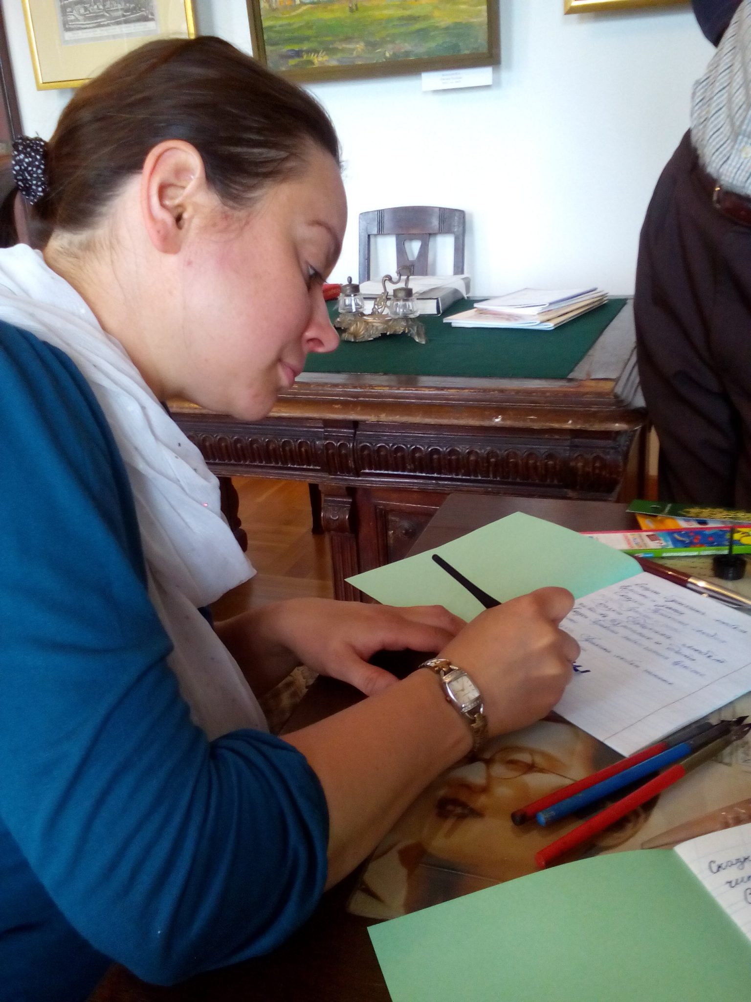 Все присутствующие попробовали себя в качестве писарей: писали чернилами и перьевыми ручками.