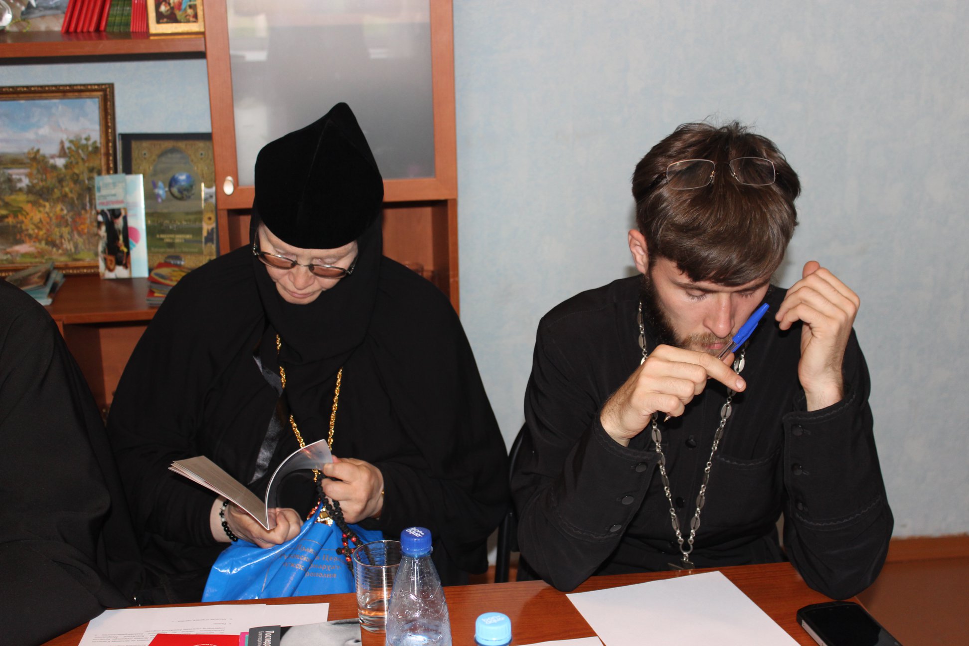 На заседании присутствовали: протоиерей Алексей Пелевин — секретарь Комиссии по благотворительности Калужской Митрополии, игумения Анастасия (Мордмилович) – настоятельница Казанского женского монастыря, протоиерей Антоний Хатунцев, протоиерей Игорь Дадаев, иерей Тихон Худяков, иерей Сергей Азаркин, иерей Виталий Денисов, иерей Сергий Дрозд, иерей Дионисий Куваев, монахиня Иосифа (Егасова), Марина Владимировна Куклина – директор социального центра помощи семье и детям «Рождественский», Сапрыкина Марина Юрьевна – социальный работник центра помощи семье и детям «Рождественский», Алена Вячеславовна Никитина — секретарь Православной благотворительной миссии «Милосердный самарянин».