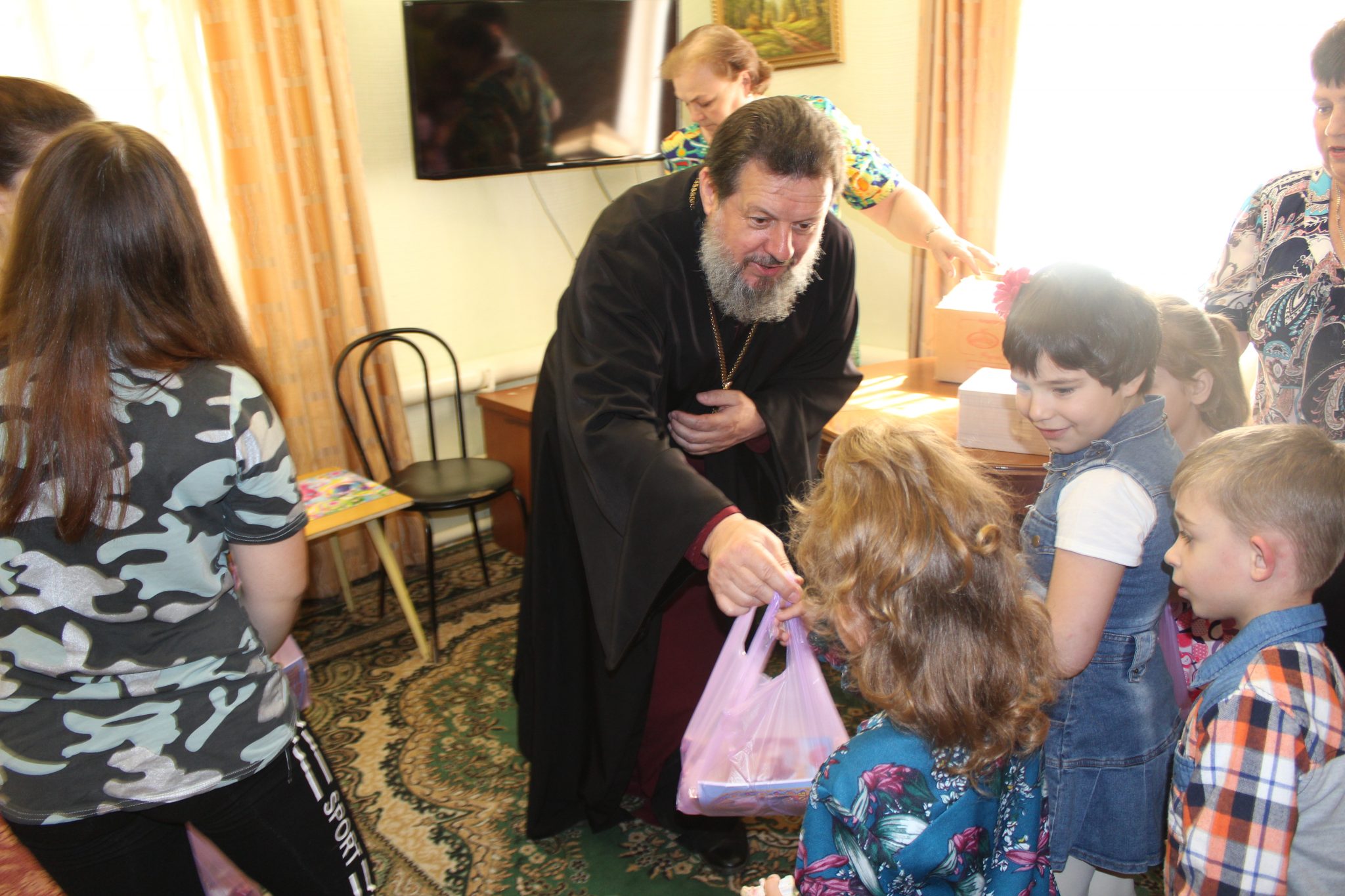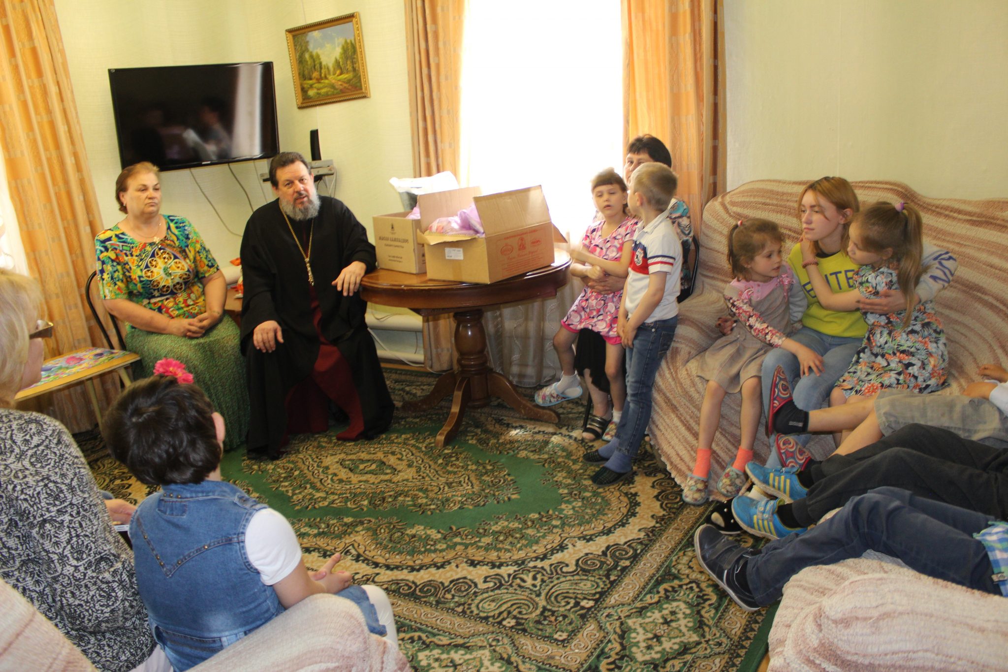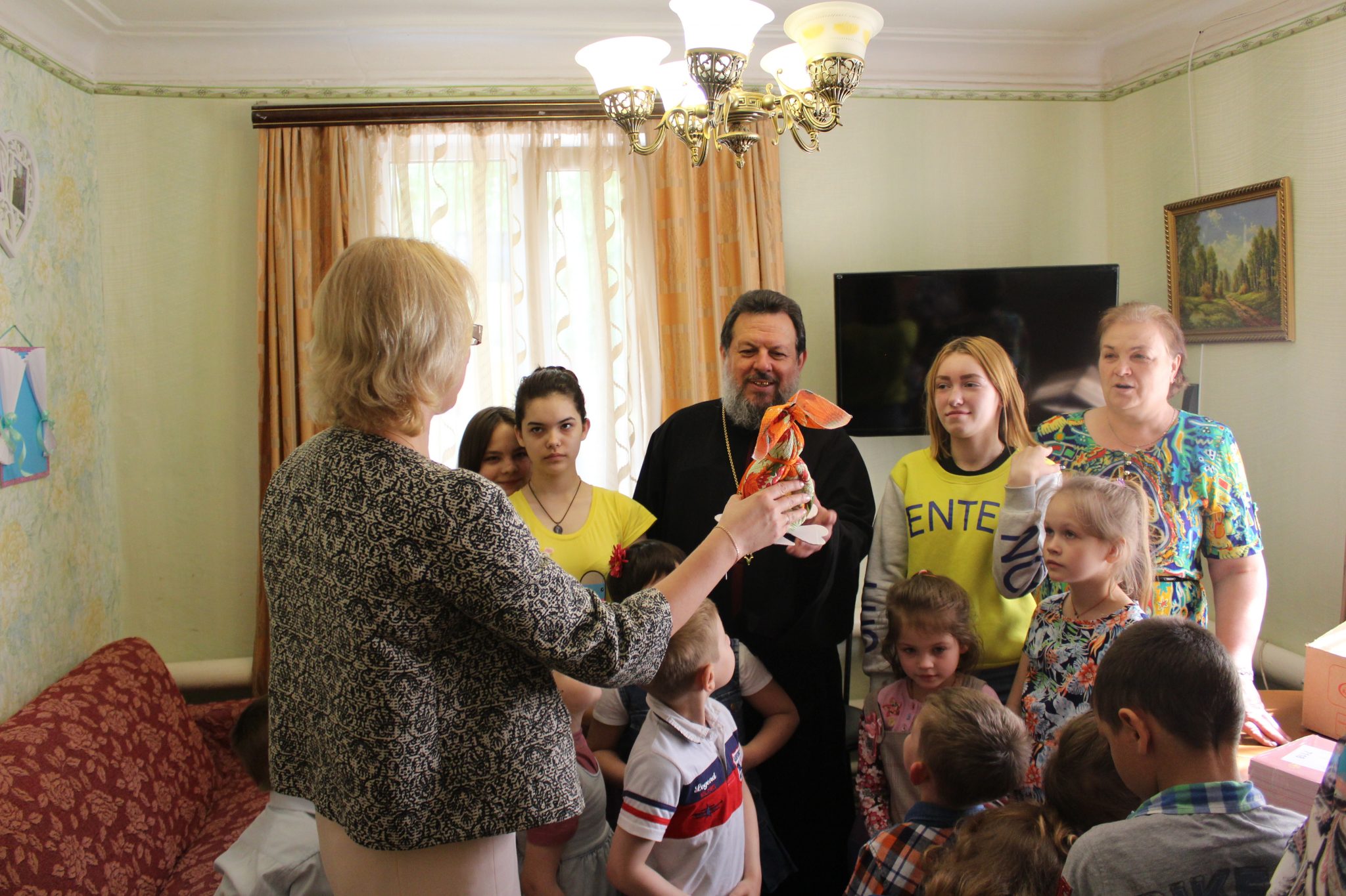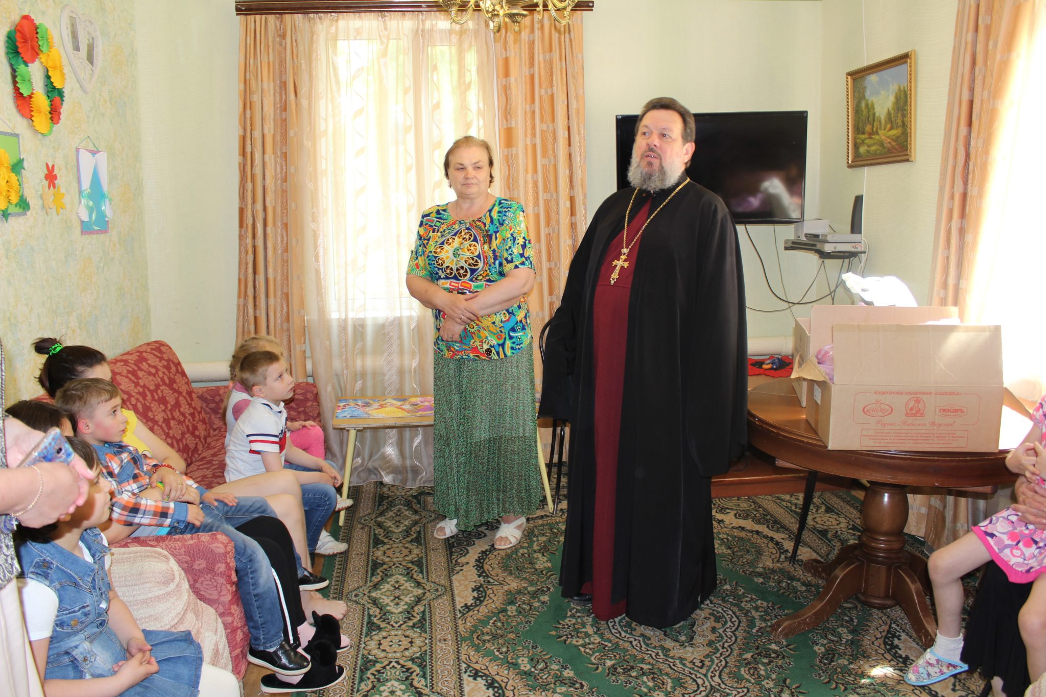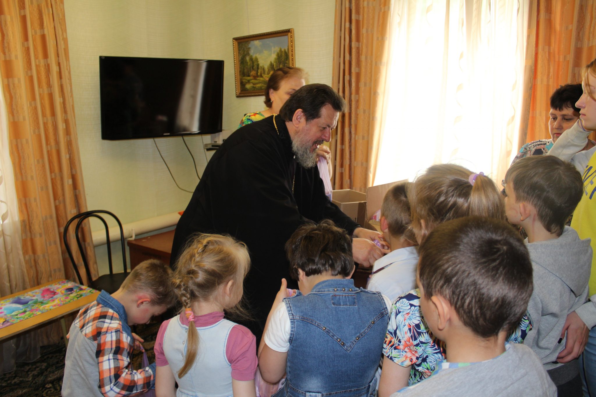 В этот день благочинный 6-го округа настоятель храма во имя преподобного Сергия Радонежского в городе Людиново протоиерей Василий Биляк посетил ДРЦ «Чайка» , где поздравил всех детей с праздником, подарил сладкие подарки, книги необходимые для детей.