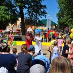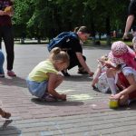Хорошо проводить праздник, когда большая и дружная семья! Аниматорами на празднике были родители и взрослые дети из подопечных семей. В течение всего праздника с детьми играли, плясали, пели песни, проводили различные конкурсы сказочные персонажи Лунтик, Лето, клоуны. На протяжение всего праздника звучали загадки, шутки, песни, и конечно же, детский смех!!! На асфальте появились плоды детского творчества-картины, нарисованные мелками, в воздух улетели тысячи мыльных музырей!