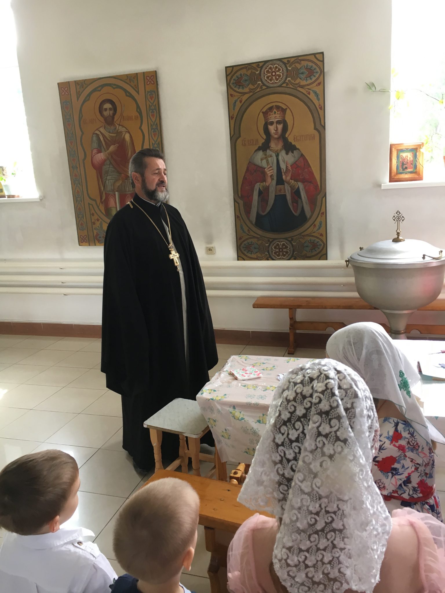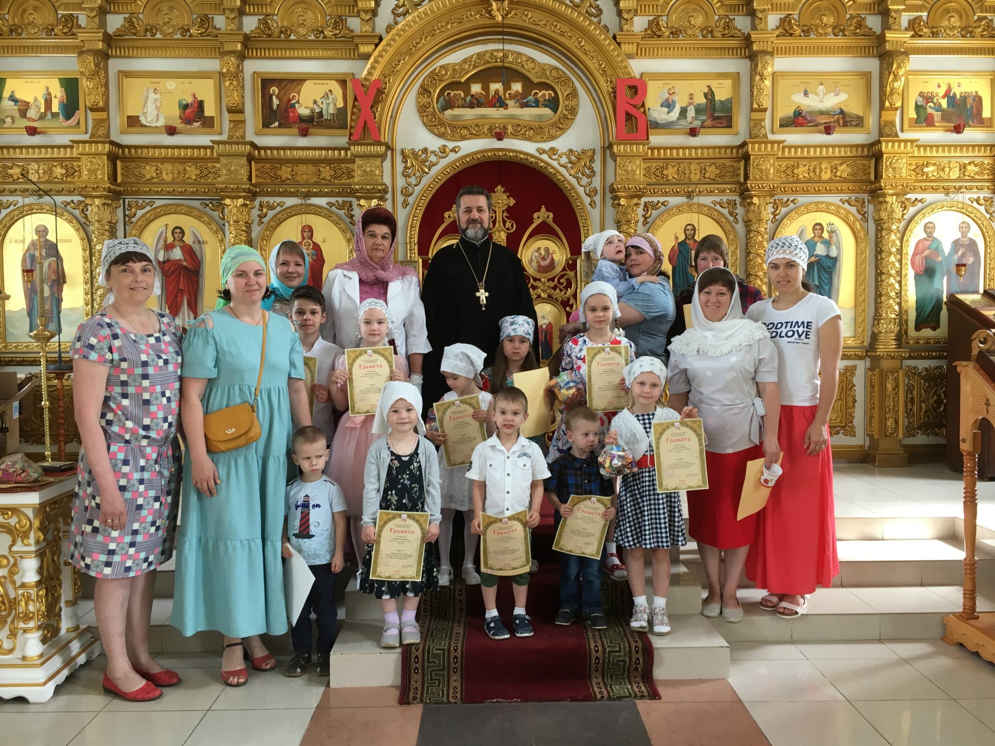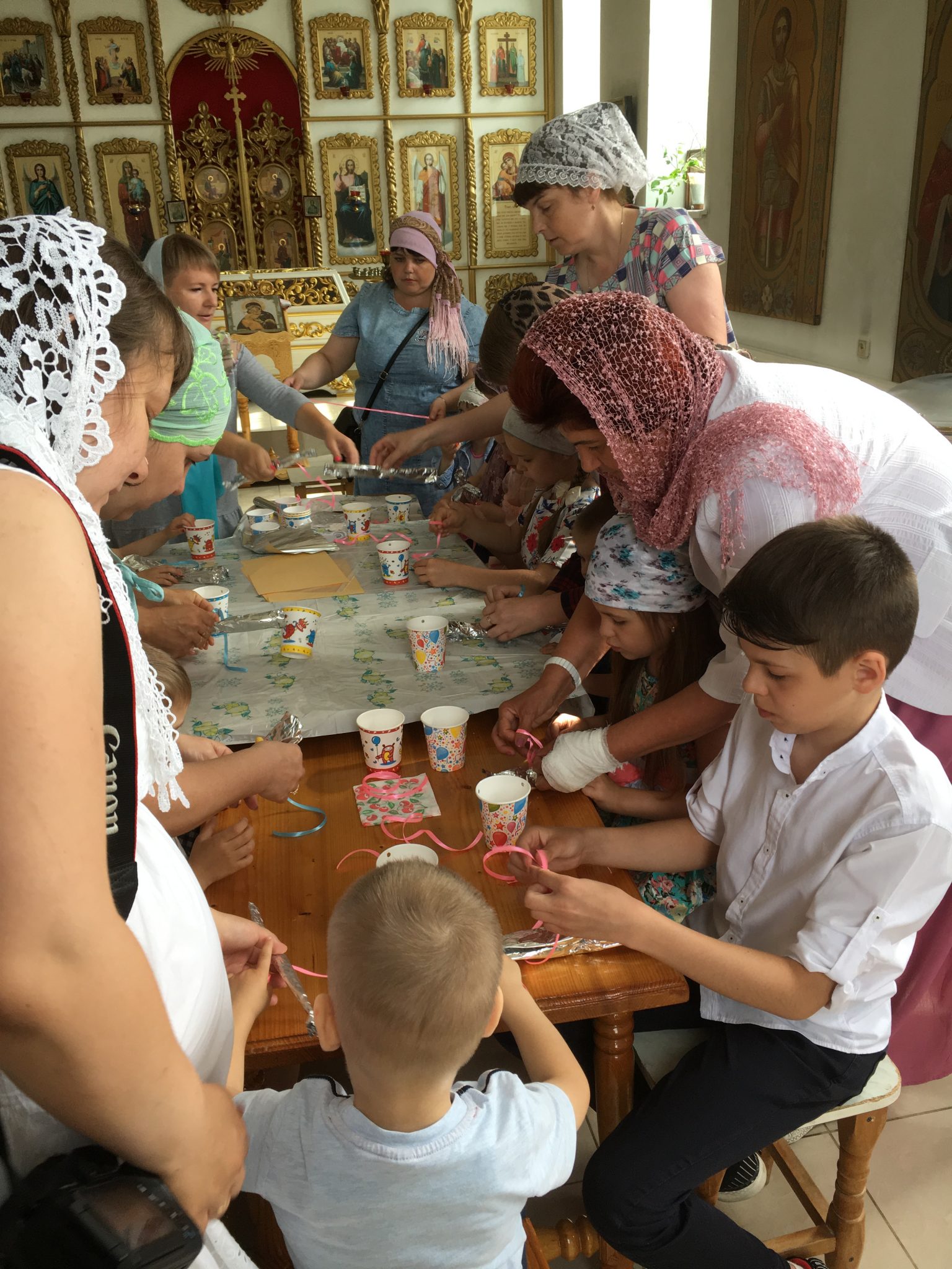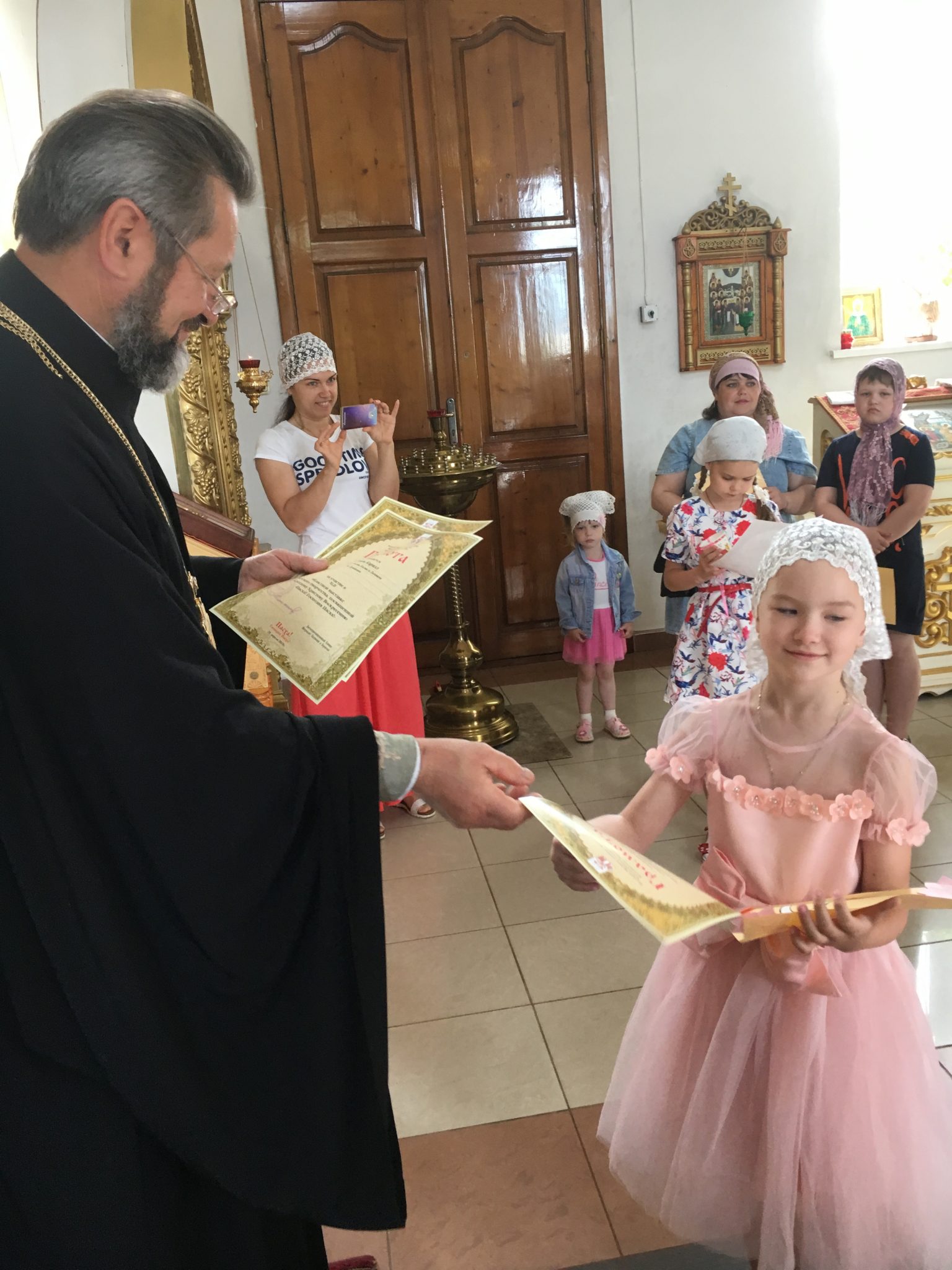 Настоятель благодарил участников конкурса пасхальных рисунков. Он вручил участникам грамоты Калужской митрополии. Был организован мастер класс по изготовлению памятных сувенирных рисунков для родителей. Дети с радостью раскрашивали и украшали свои поделки и дарили своим родителям.