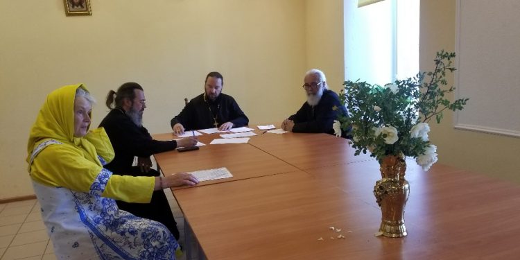 31 мая в селе Ульяново, после Божественной литургии в честь святых отцов семи Вселенских Соборов, состоялось собрание Ульяновского благочиния. Настоятель храма Воскресная Христова с Ульяново протоиерей  Максим Садовников, благочинный  округа рассказал клирикам благочиния о прошедшем Епархиальном Совете, на котором обсуждали насущные вопросы епархии. Рождественско-Богородичные чтения, крестный ход с ‘Калужской’ иконой Божией Матери, 220- летие Калужской епархии и другие важные события митрополии обсудили и в благочинии. Решали вопросы благочиния, в особенности с новостроящемся храмом святого благоверного князя Александра Невского в селе Крапивна, о чем говорили с жительницей Крапивны Иполитовой Натальей Борисовной. Иерей Алексей Сорокин рассказал о произведенных работах по замене полов в храме ‘Казанской’ иконы Божией Матери  села Дудоровский.