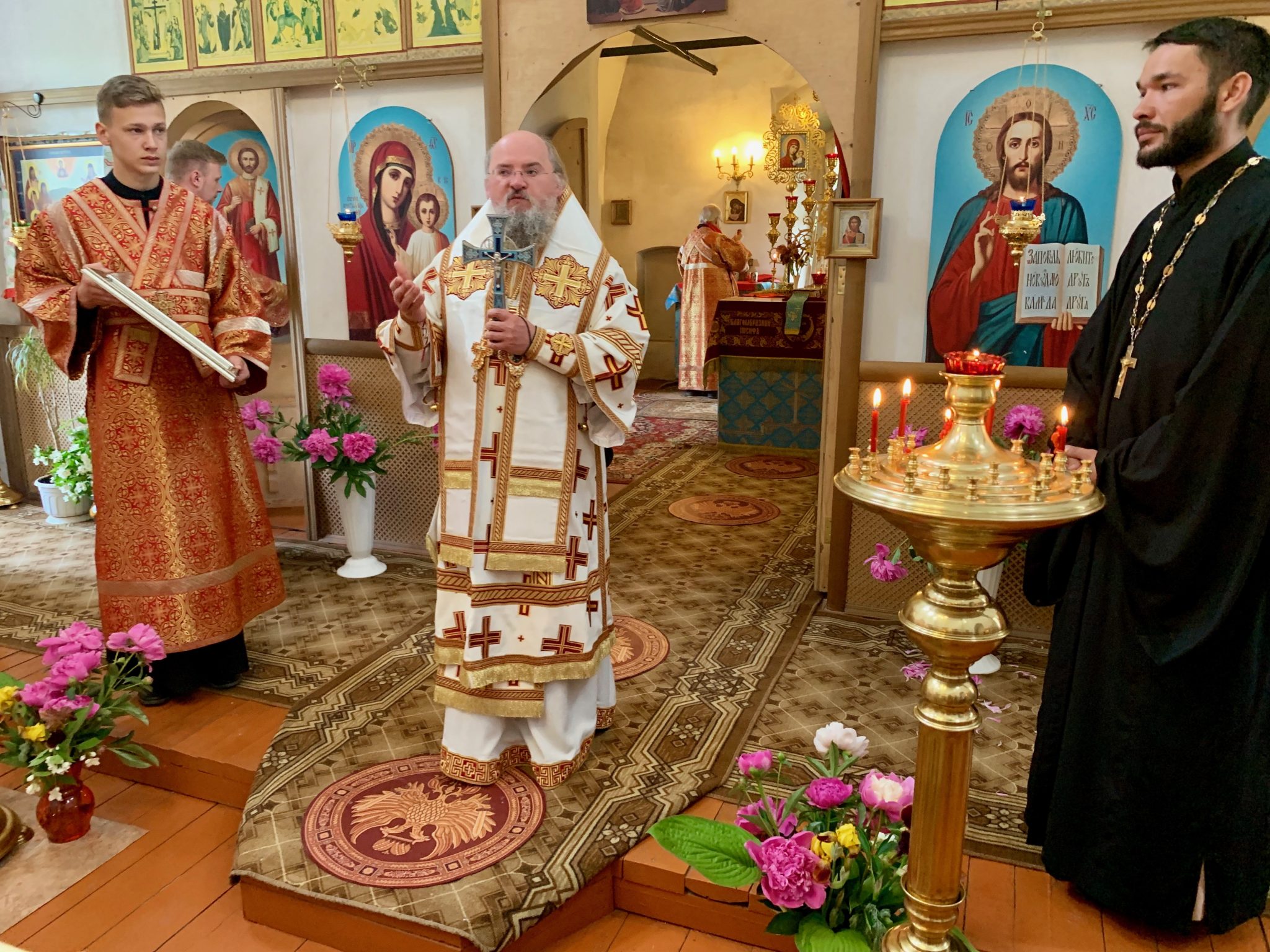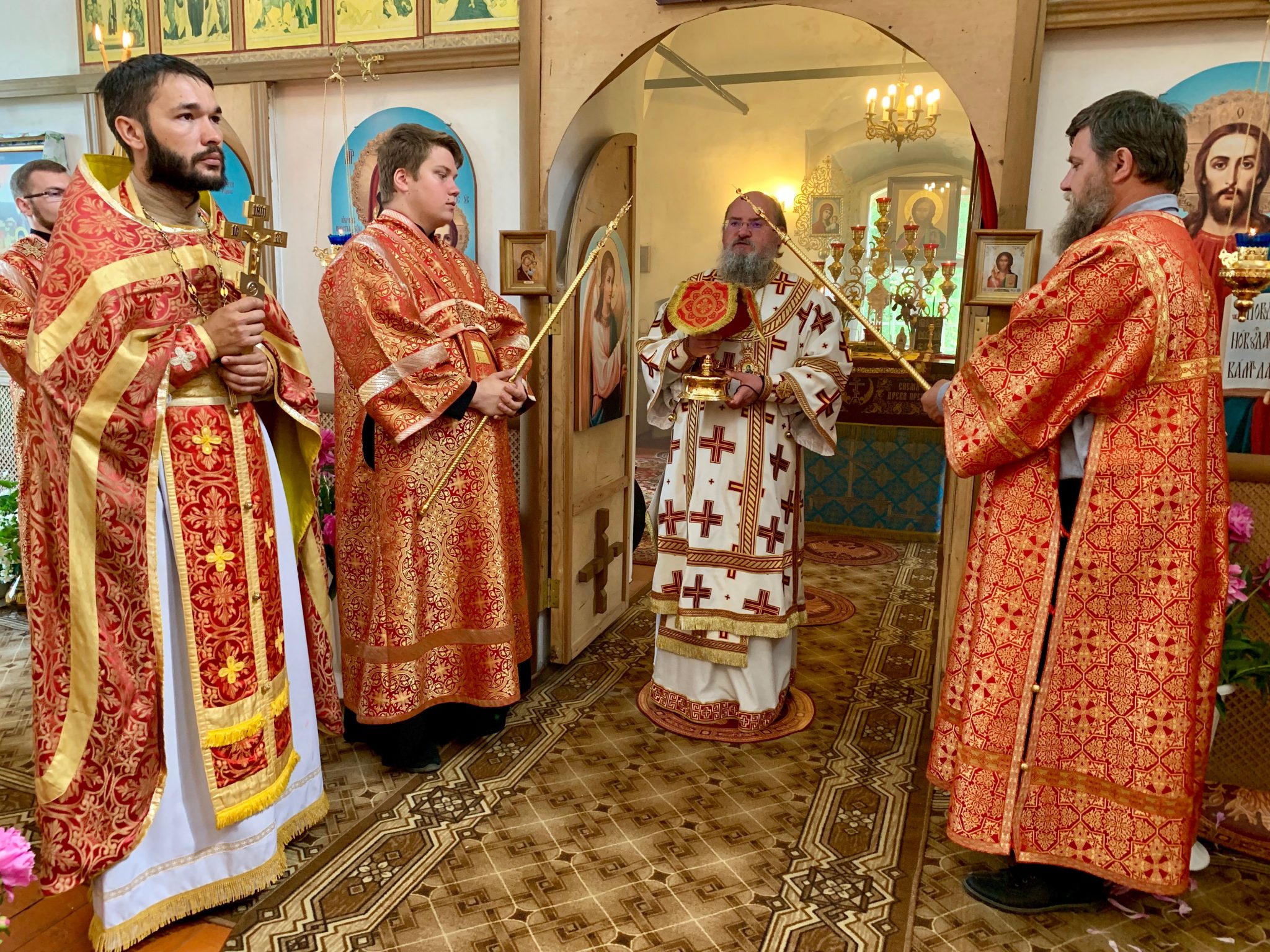 Преосвященнейшему владыке сослужили: протоиерей Антоний Хатунцев, иерей Павел Никитин – настоятель храма, диакон Евгений Ковригин и иеродиакон Виталий (Павленко).