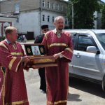 Торжественную встречу возглавил настоятель протоиерей Алексий Жиганов в сопровождении клириков собора, настоятеля храма Святого Лазаря Четверодневного г.Людиново протоиерея Михаила Карпенко и иерея Георгия Краснова. Крестным ходом Святыни были торжественно перенесены в Казанский собор, где был отслужен молебен перед мощами.