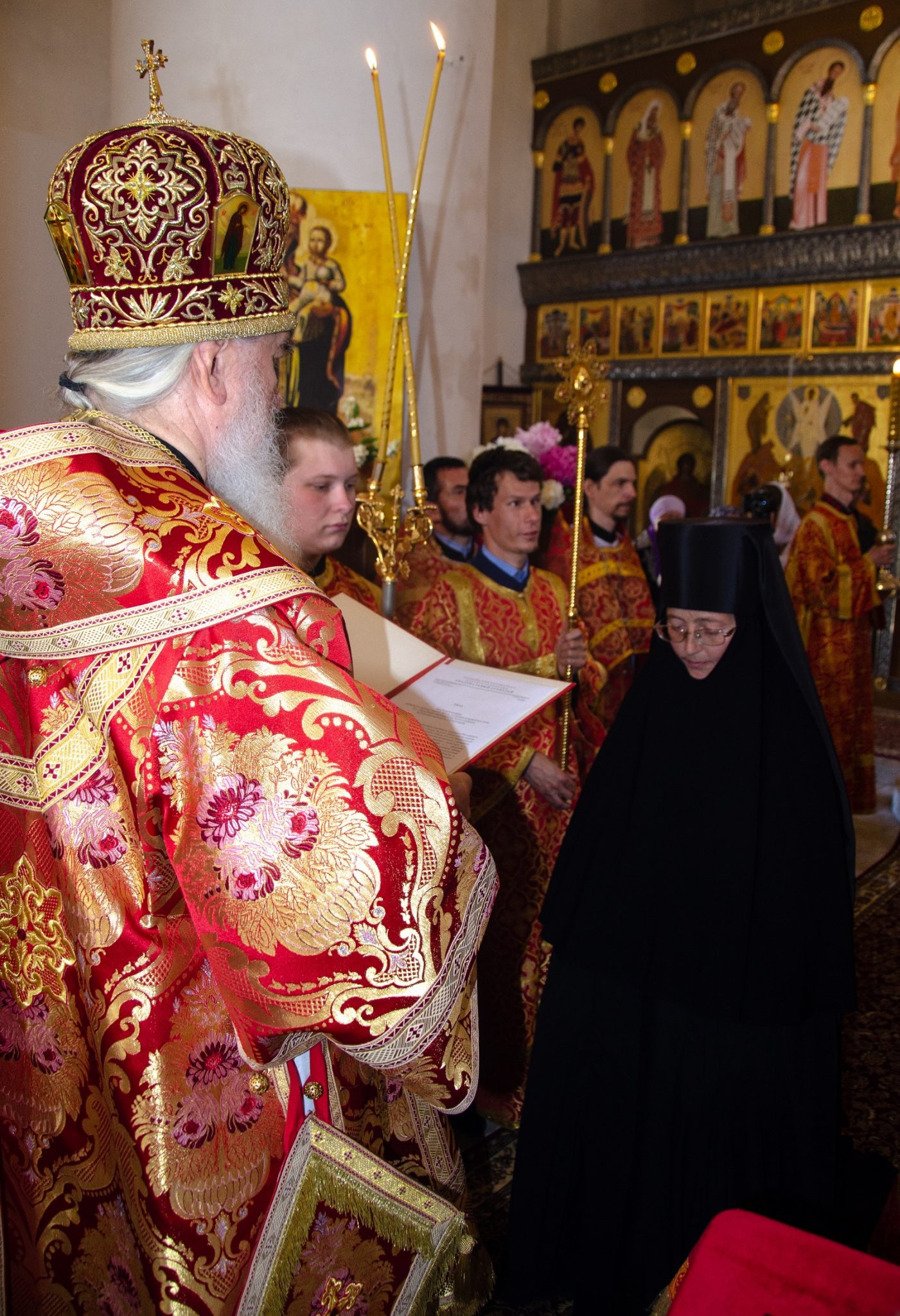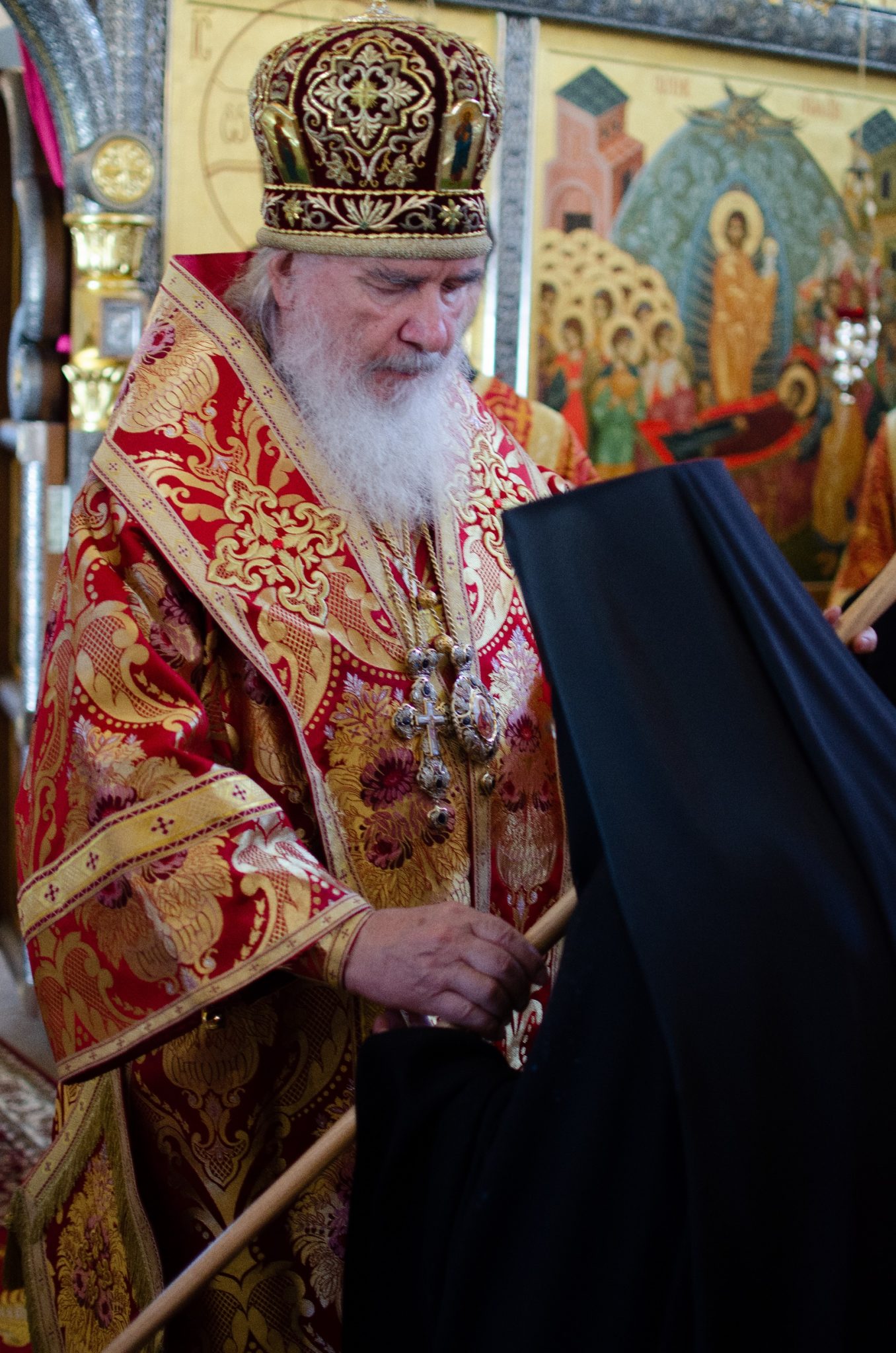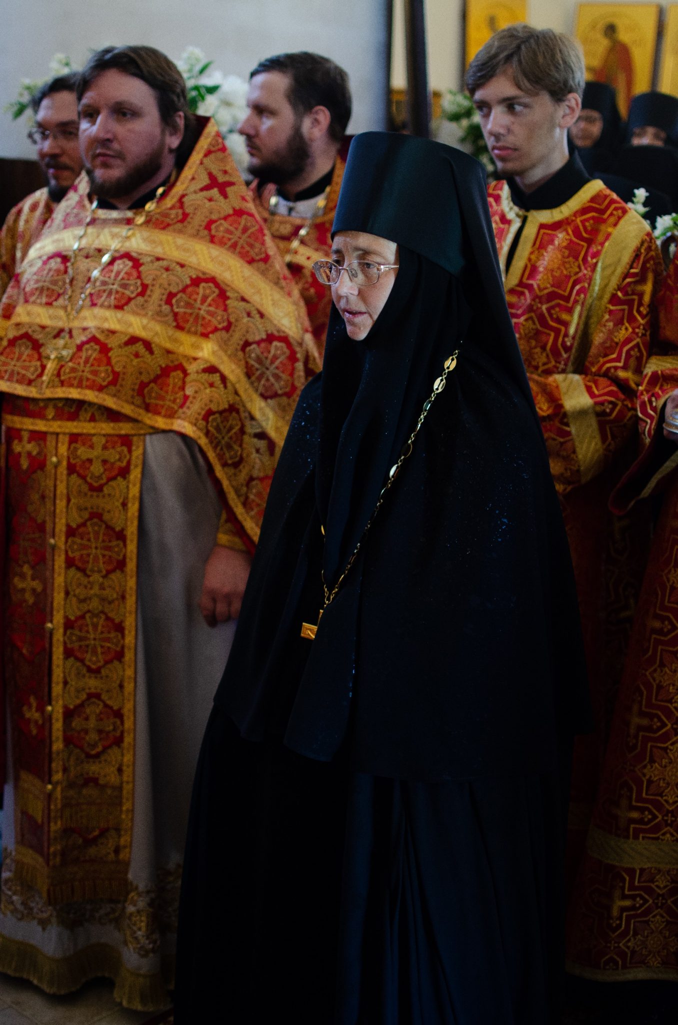 На малом входе митрополит Климент возвел монахиню Михаилу (Осипову) в сан игумении. После Пасхального крестного хода владыка Климент вручил матушке-игумении жезл.