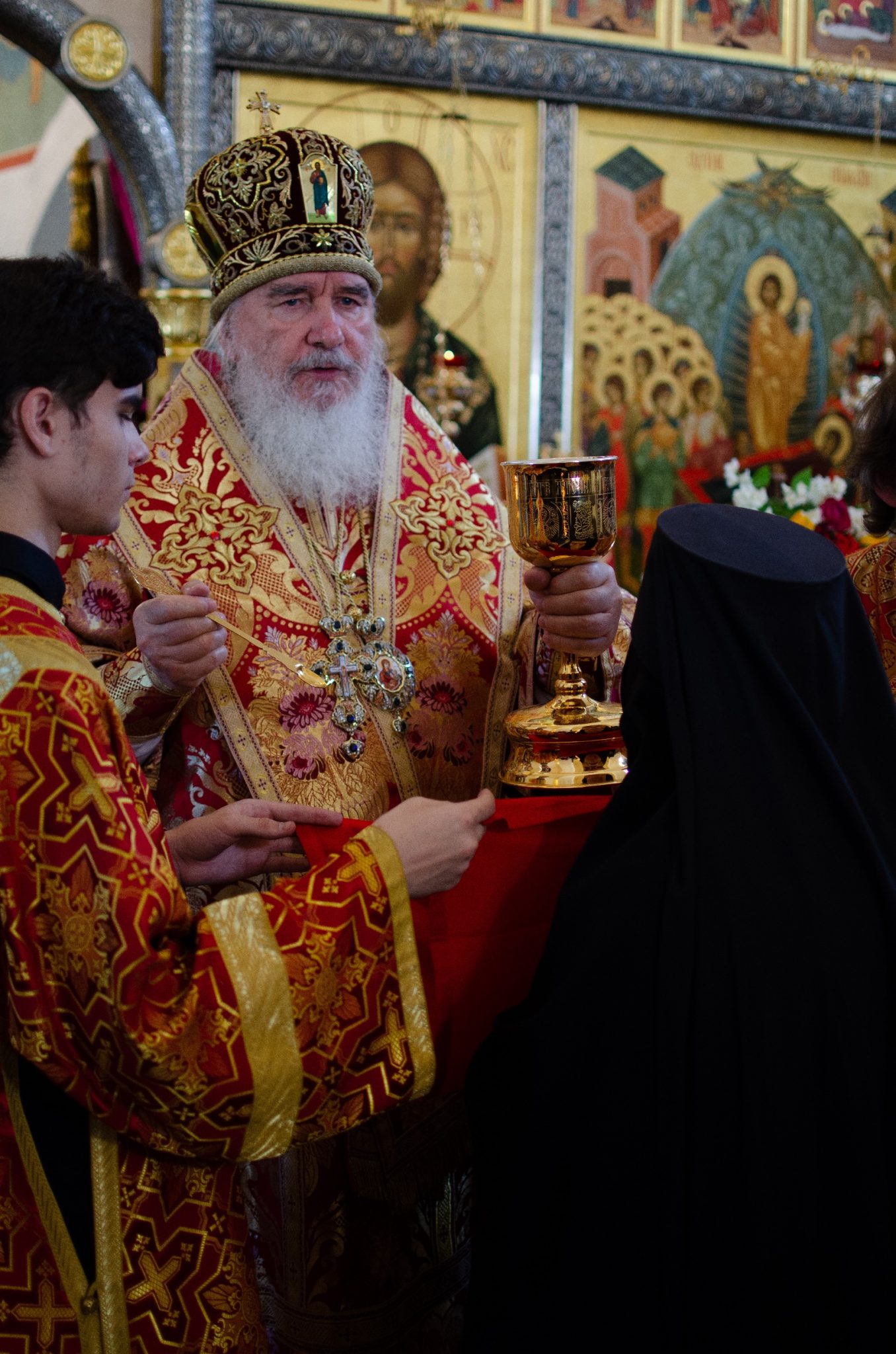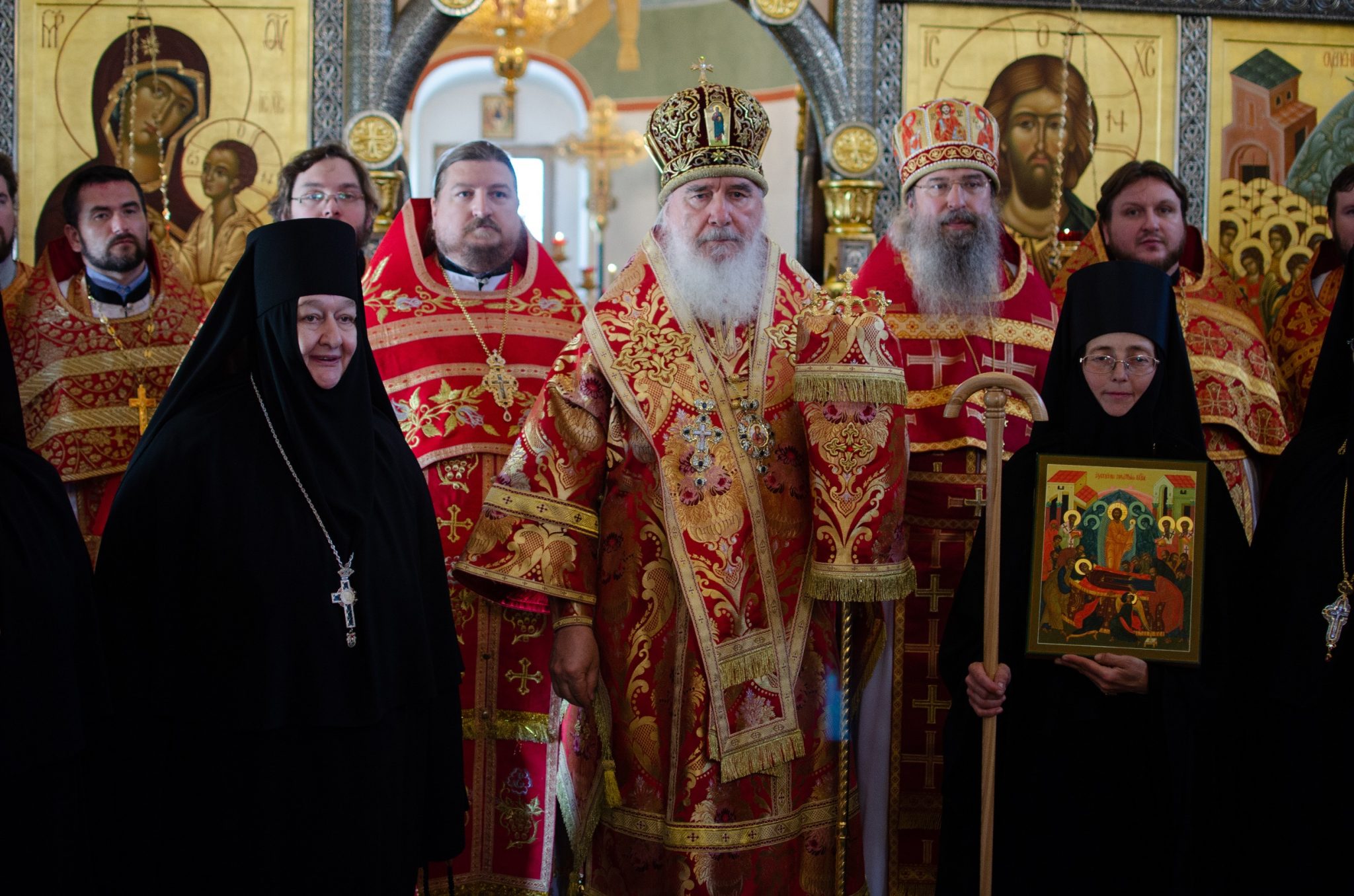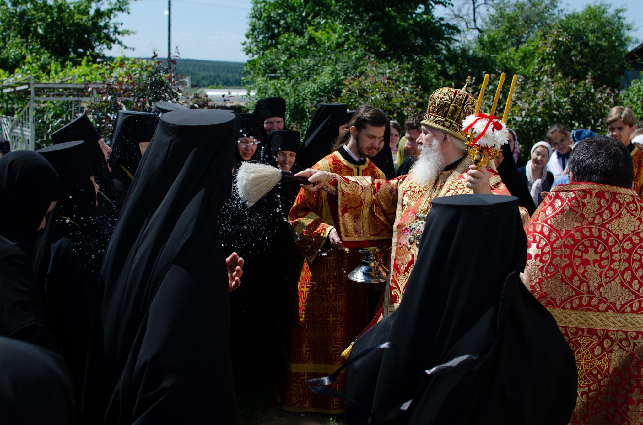 На малом входе митрополит Климент возвел монахиню Михаилу (Осипову) в сан игумении. После Пасхального крестного хода владыка Климент вручил матушке-игумении жезл.