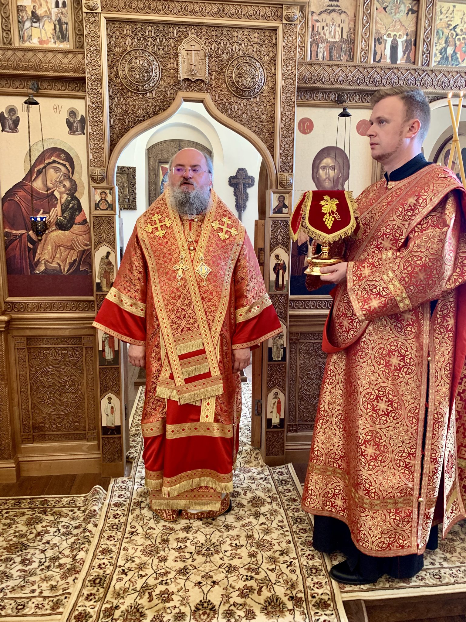 Преосвященному владыке сослужили: протоиерей Антоний Хатунцев, иерей Максим Изопов, диакон Евгений Ковригин, иеродиакон Виталий (Павленко).
