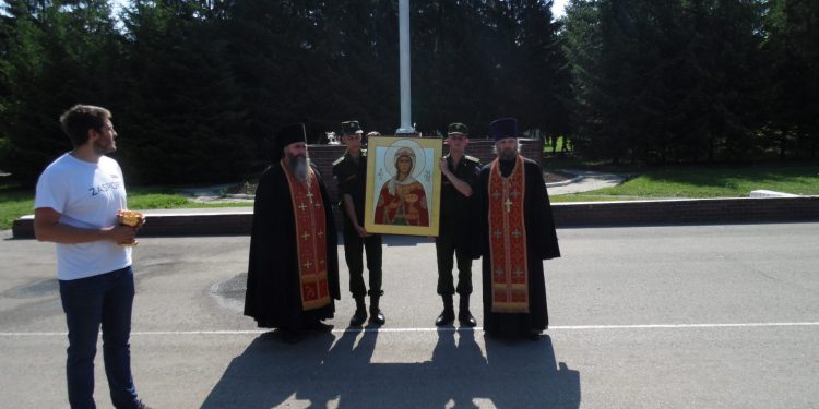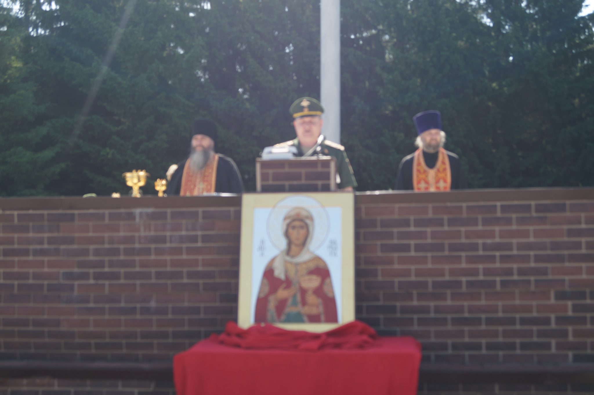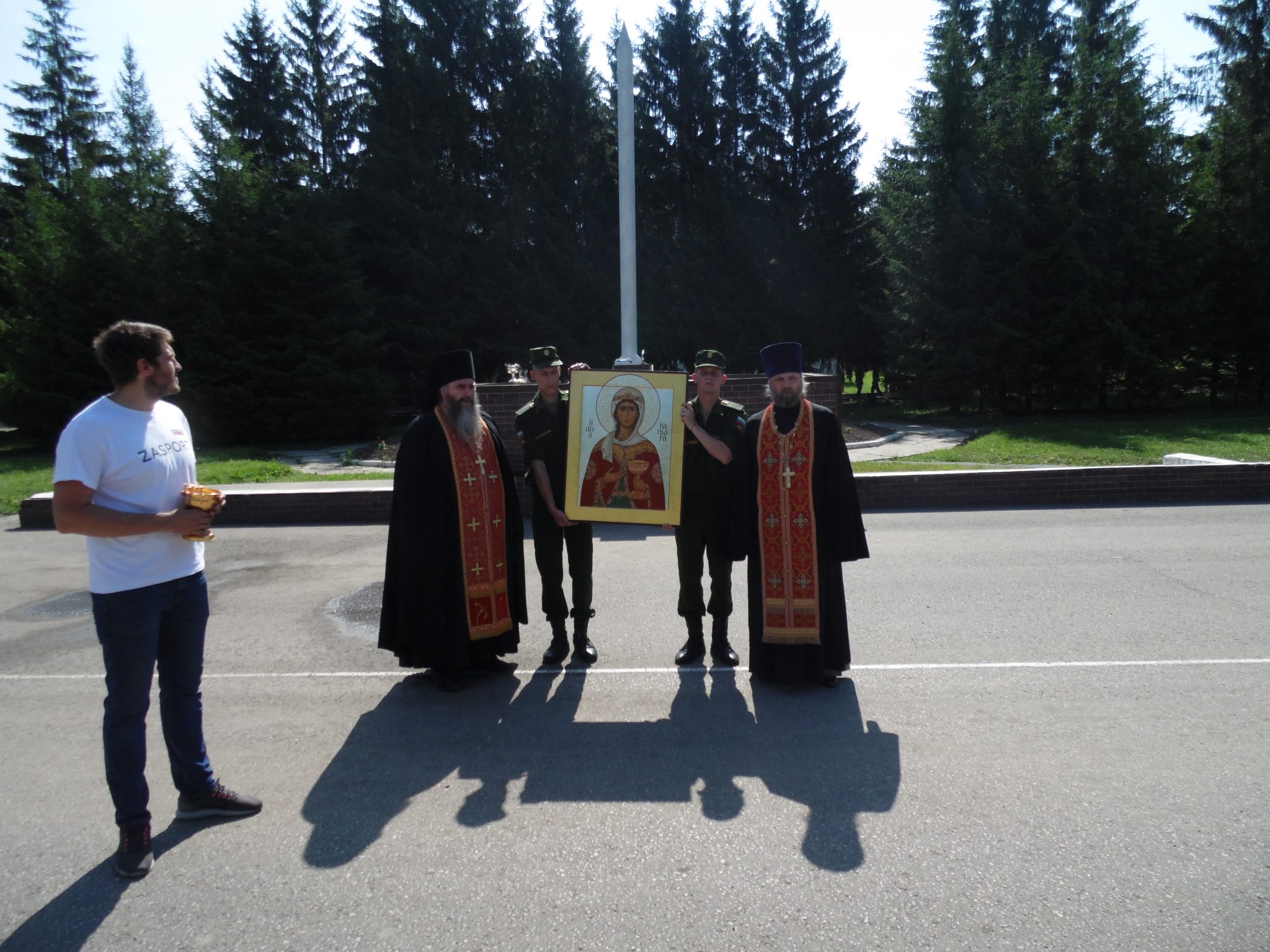 Перед военнослужащими выступили: командир дивизии Драй Ю.В. руководитель епархиального отдела по взаимодействию с Вооруженными Силами и правоохранительными органами Козельской епархии иерей Николай Кузнецов и насельник Оптиной Пустыни иеромонах Силуан. Был отслужен краткий молебен и вознесена молитва великомученице Варваре. Икона и военнослужащие окроплены святой водой.