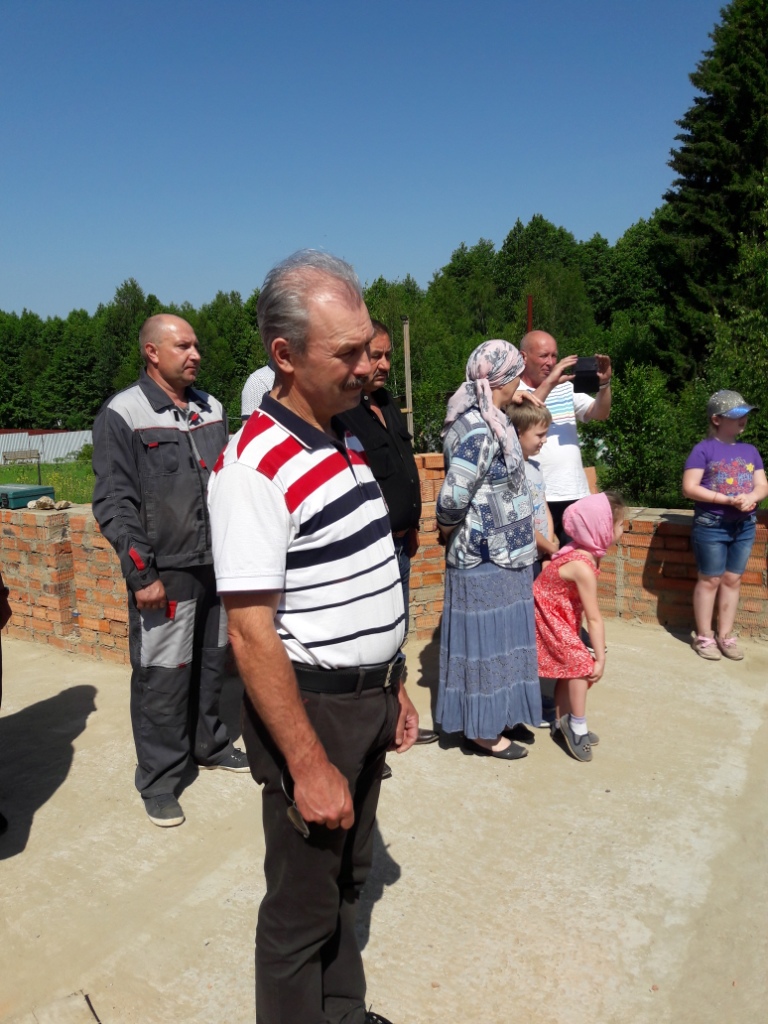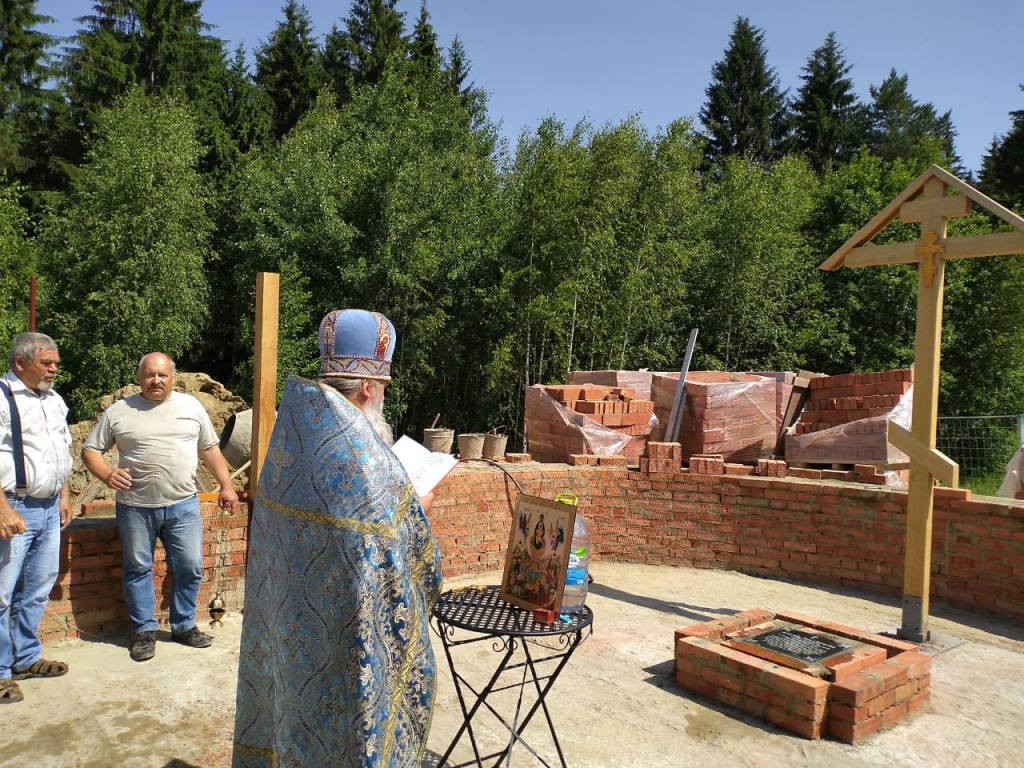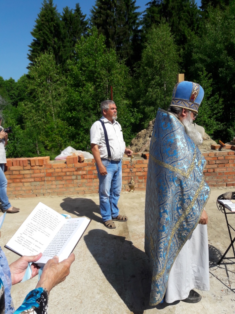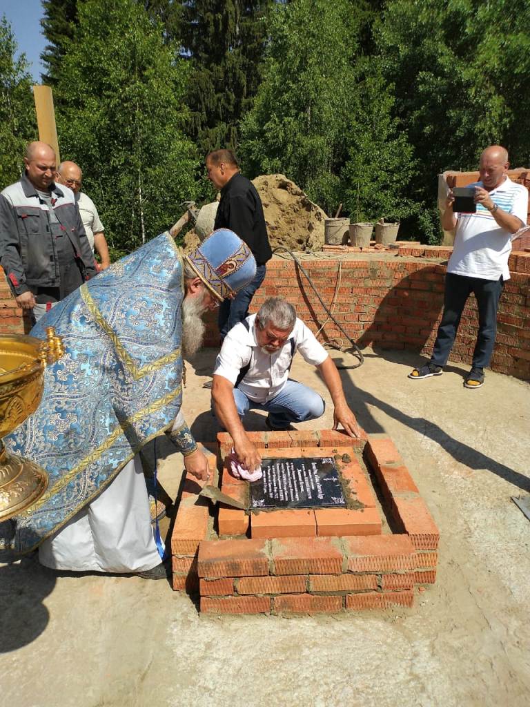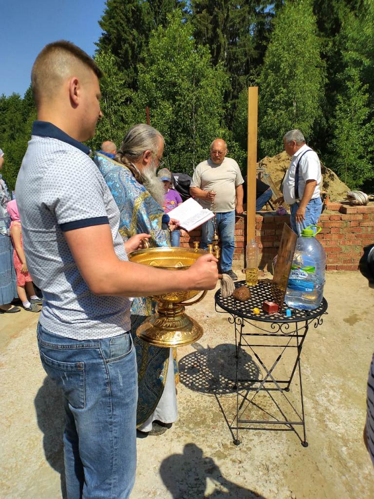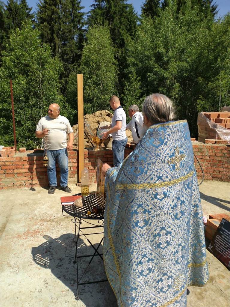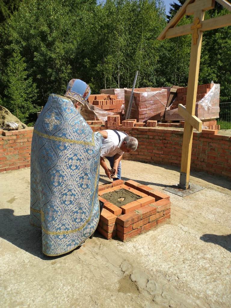 По ходу Богослужения священник вознес молитву, в которой просил Господа, чтобы Он соблюл строителей храма невредимыми, а основание храма незыблемым и совершен показал дом к славословию Бога после чего, взяв камень и начертав им крест, положил его в основание. Затем отец Алексий, силами строителей, водрузил крест на том месте, где будет святой престол, при этом вознёс молитву, в которой просил Господа, чтобы Он благословил и освятил это место силою и действом Честного и Животворящего и Пречистого древа Креста в отгнание демонов и всякого сопротивного.