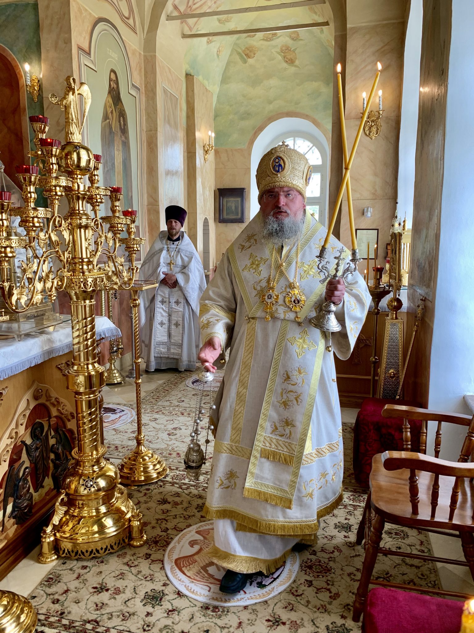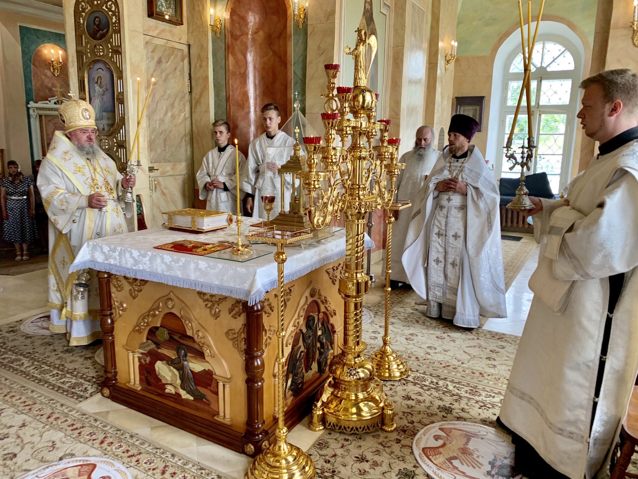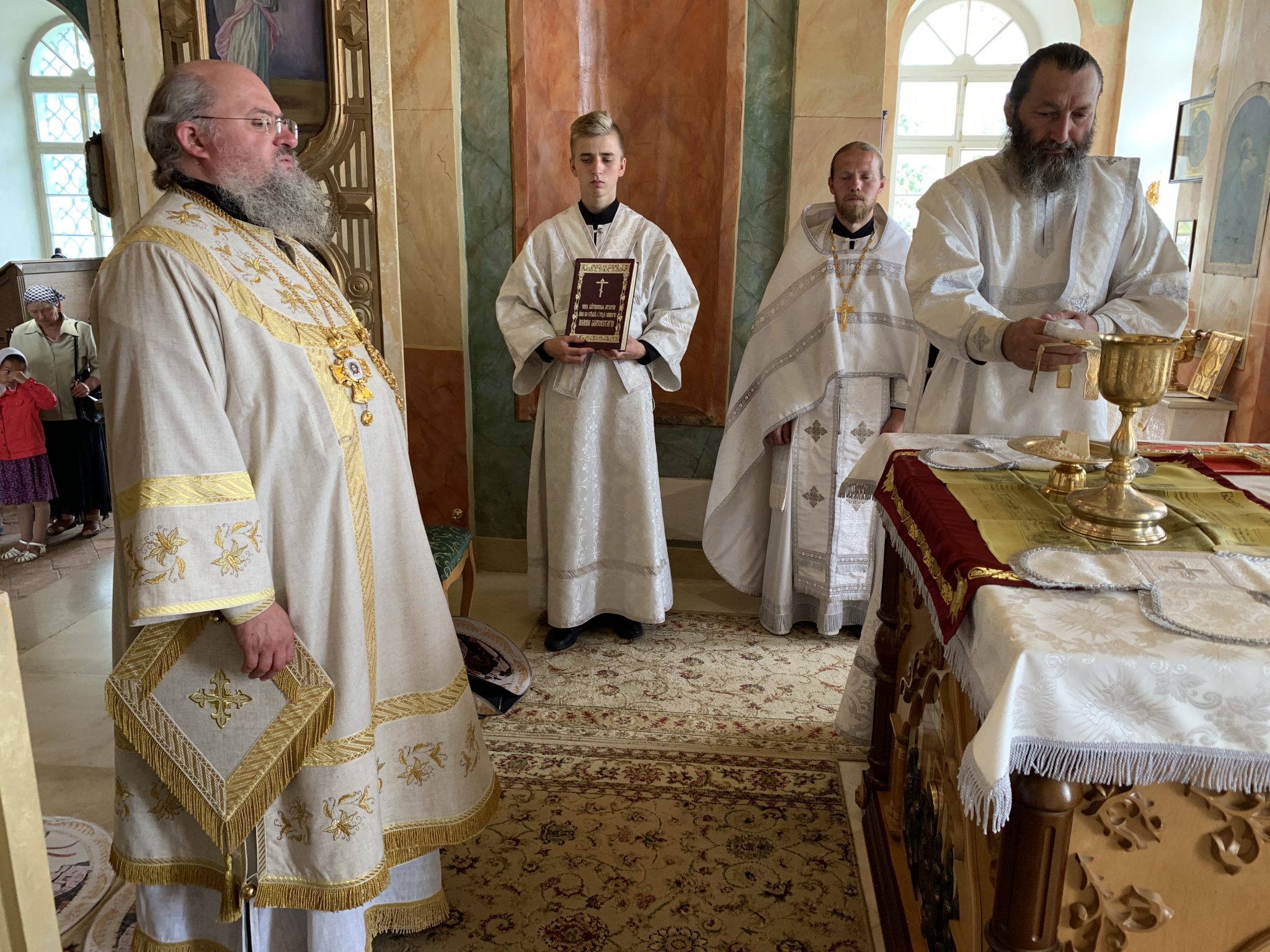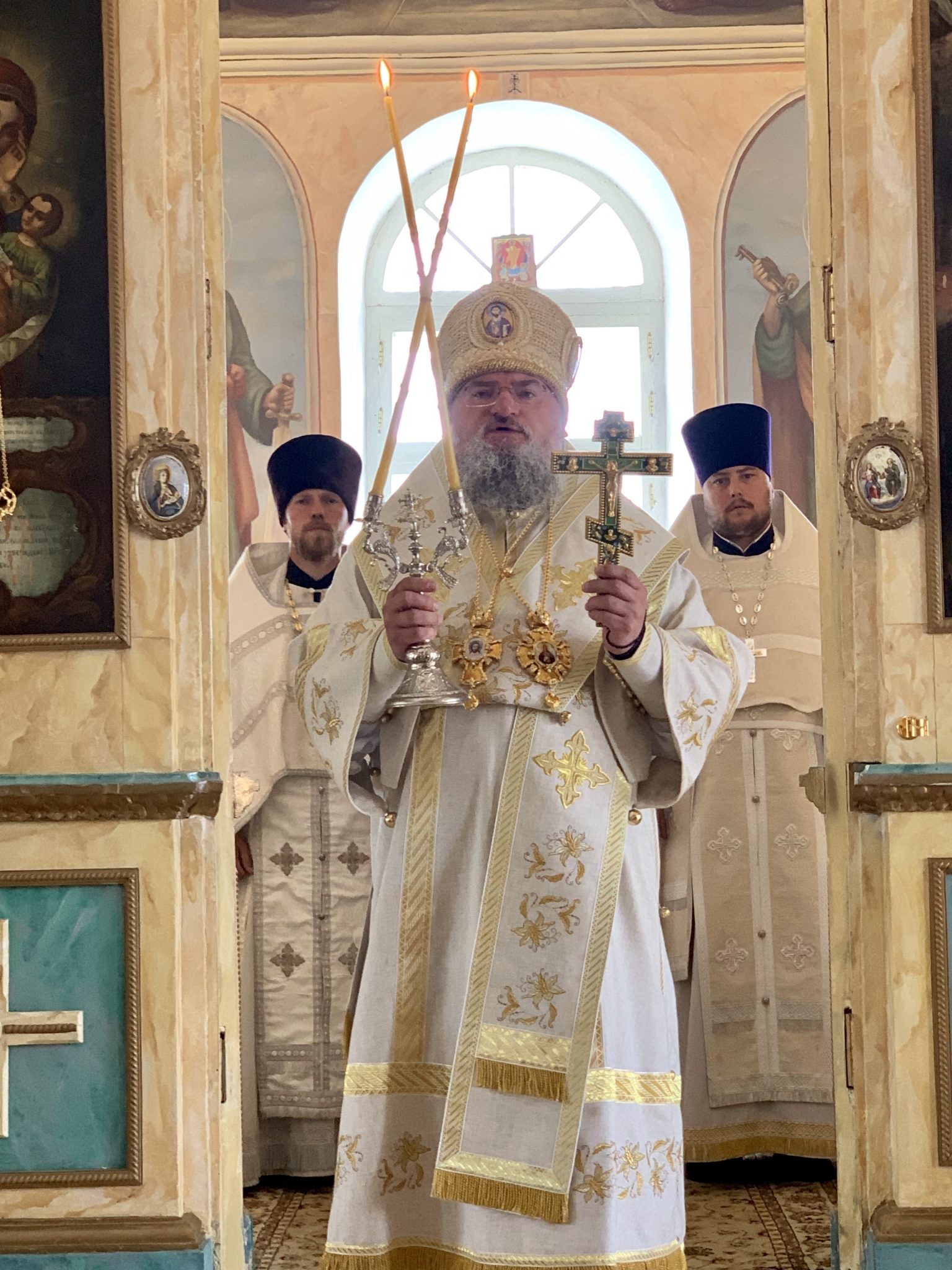 Преосвященному владыке сослужили: протоиерей Антоний Хатунцев, иерей Симеон Худяков – настоятель храма, иерей Тихон Худяков, диакон Евгений Ковригин, диакон Валерий Волков и иеродиакон Виталий (Павленко).