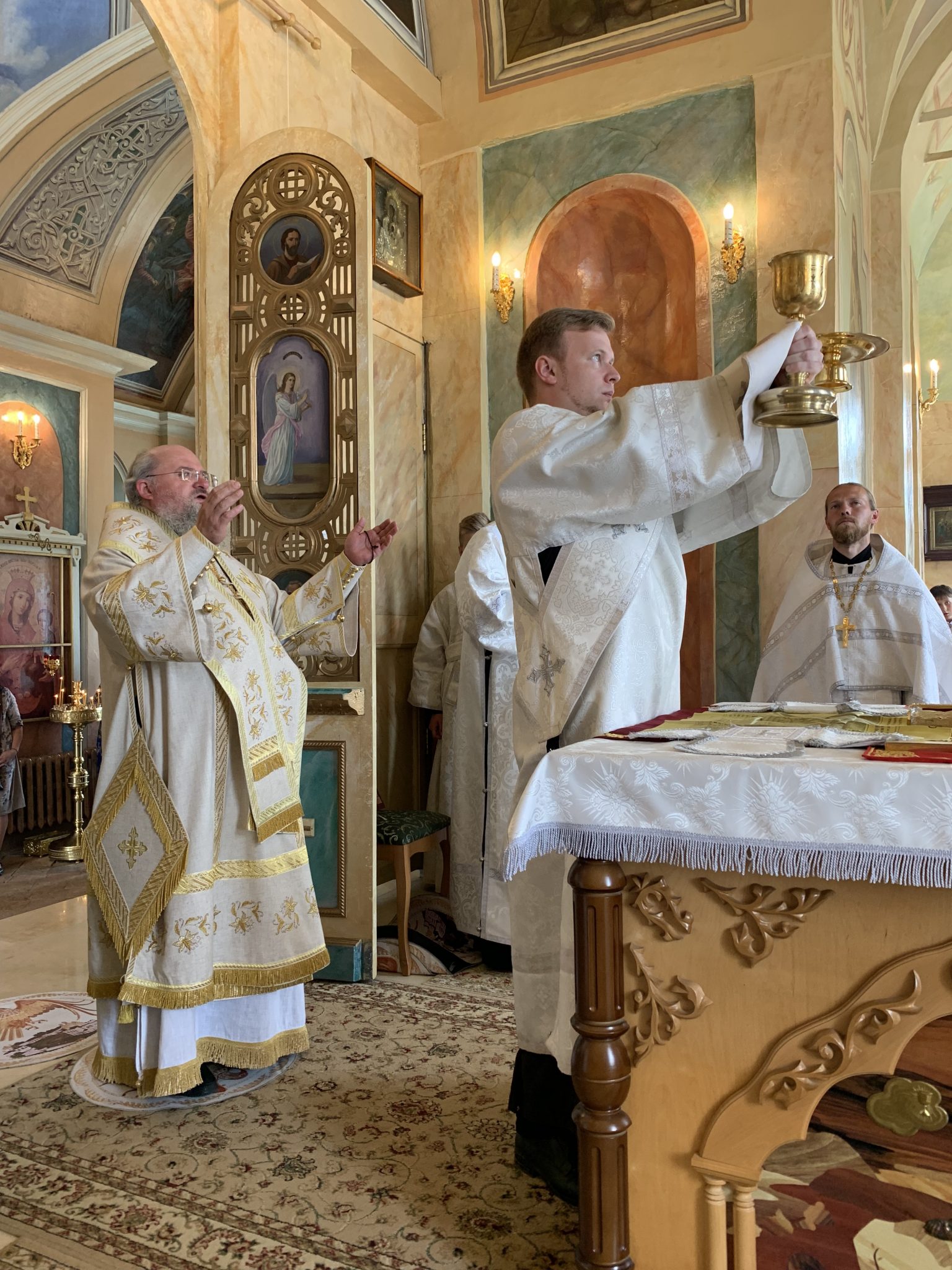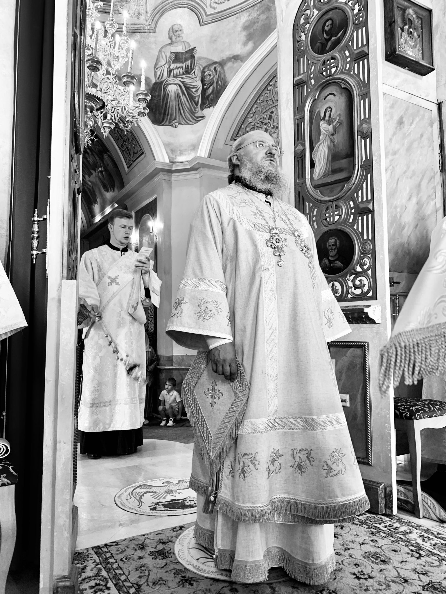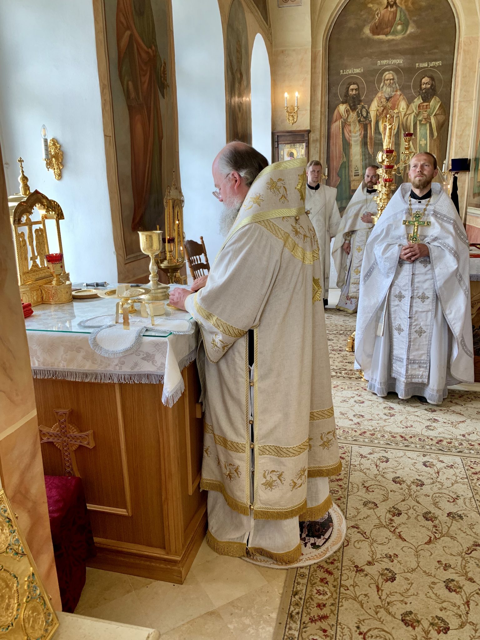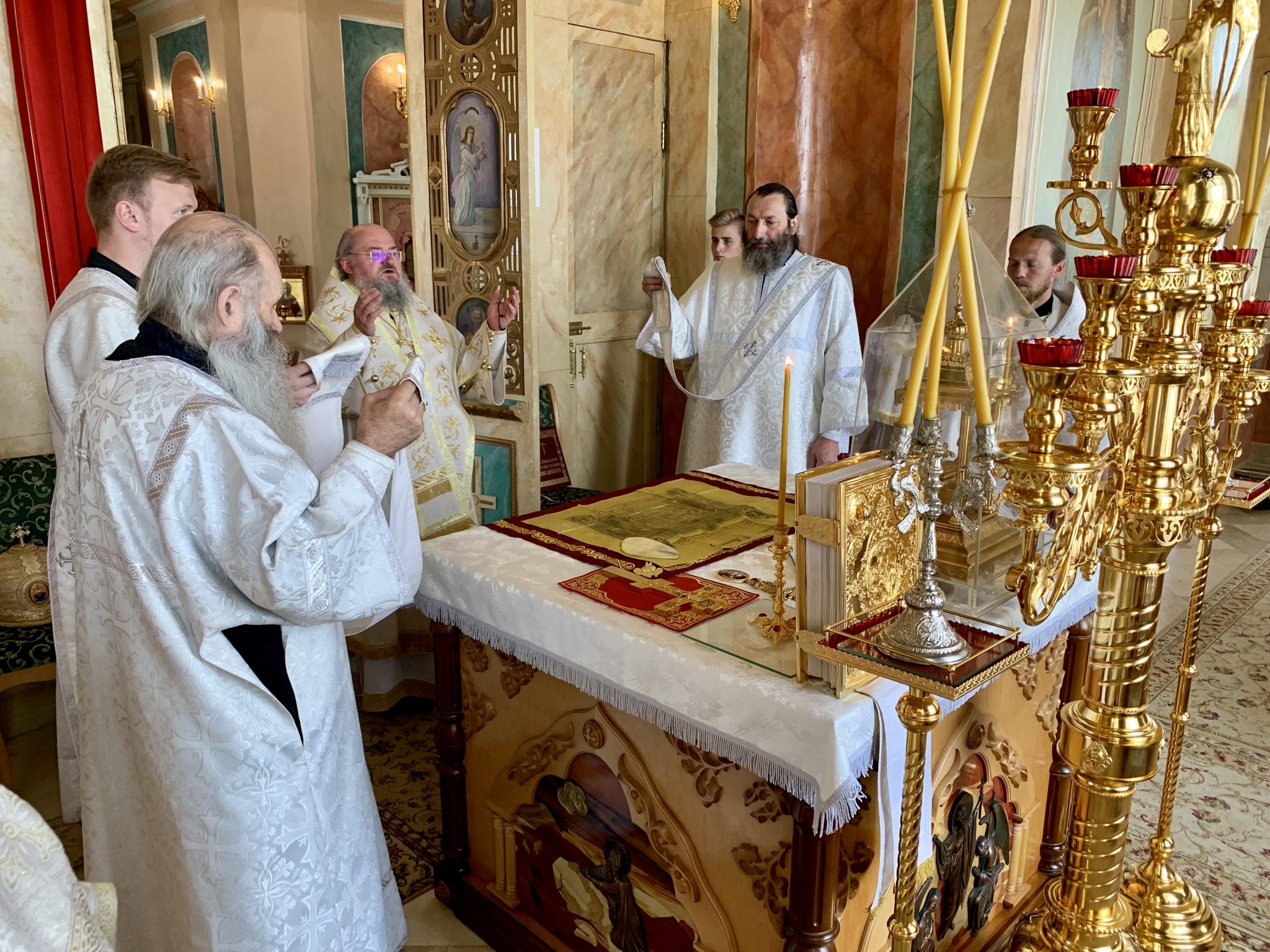Преосвященному владыке сослужили: протоиерей Антоний Хатунцев, иерей Симеон Худяков – настоятель храма, иерей Тихон Худяков, диакон Евгений Ковригин, диакон Валерий Волков и иеродиакон Виталий (Павленко).