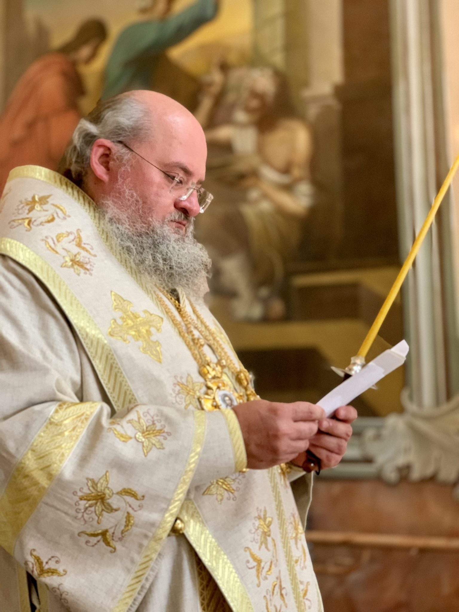 По завершении богослужения владыка ознакомился с помещением под храмом, где предполагается в ближайшее время создать небольшой музей церковных древностей.