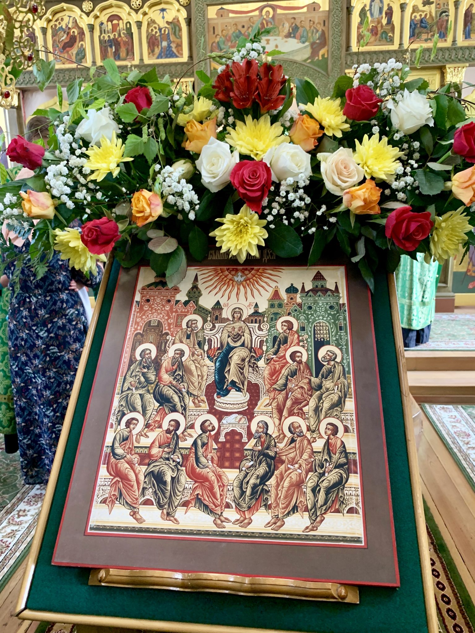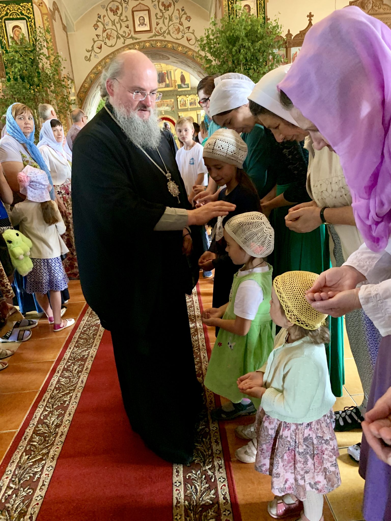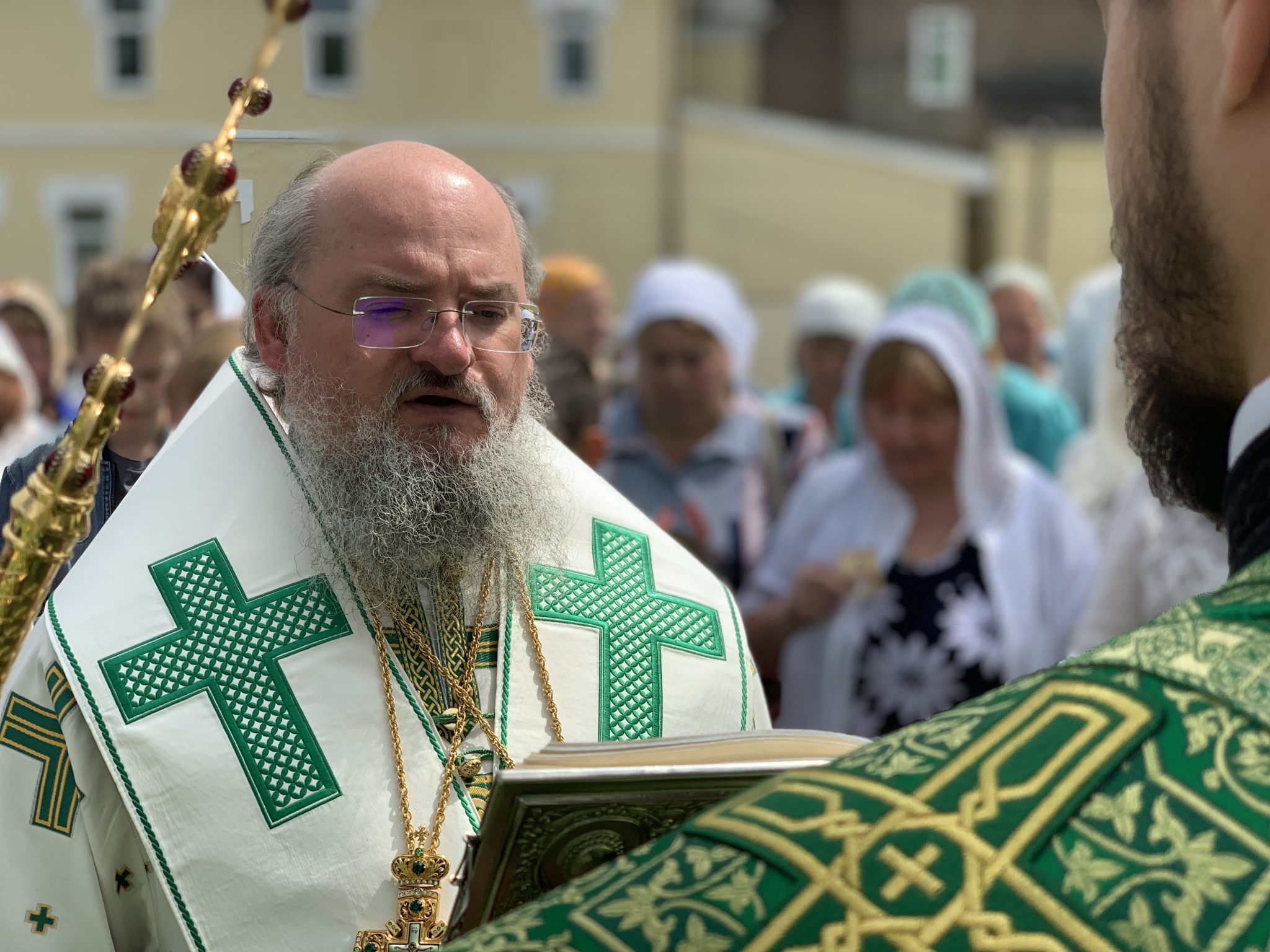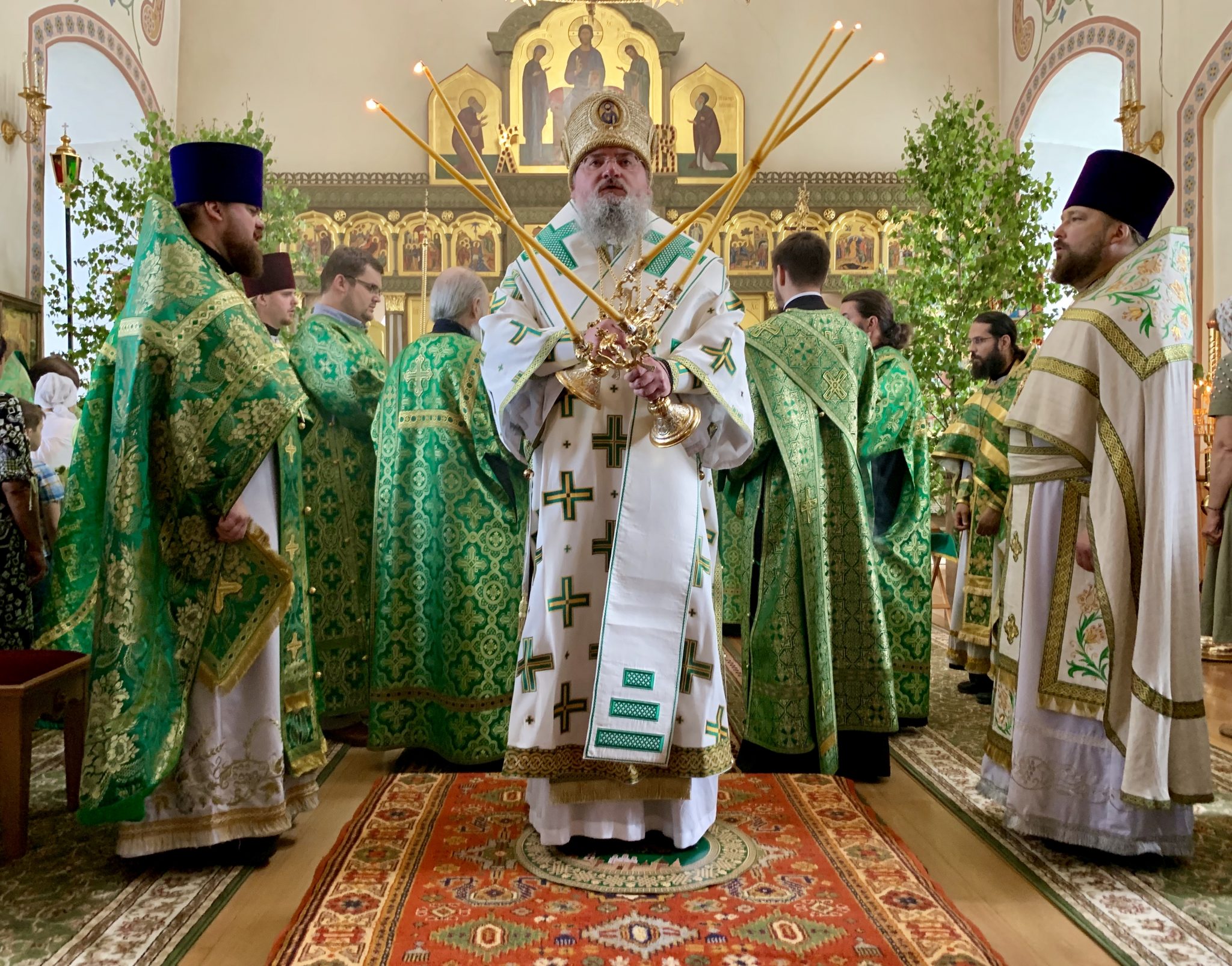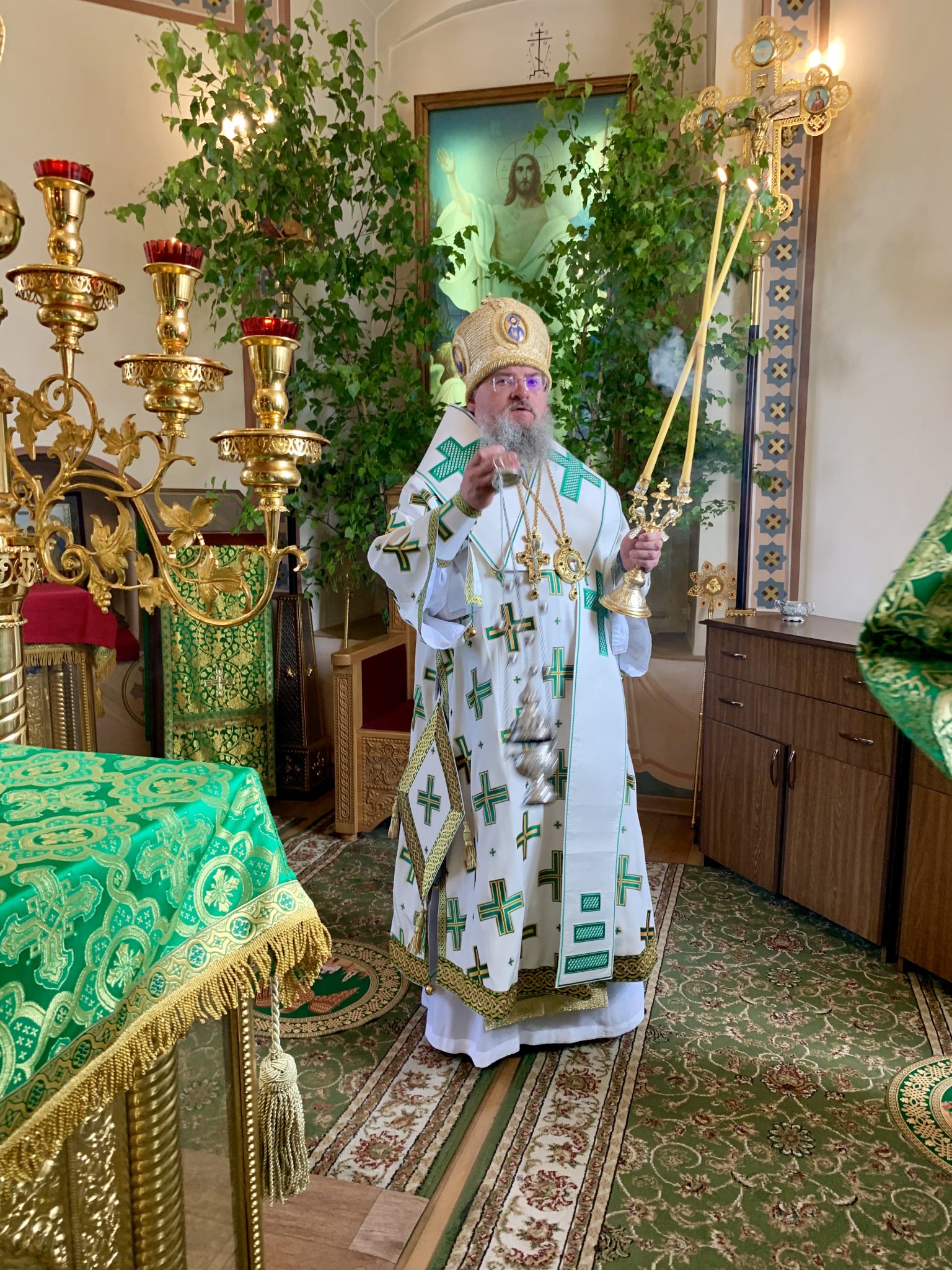 После отпуста литургии состоялся праздничный молебен и крестный ход вокруг храма в завершении которого, помолясь Господу Святому Духу Утешителю, владыка обратился к богомольцам с архипастырским словом.