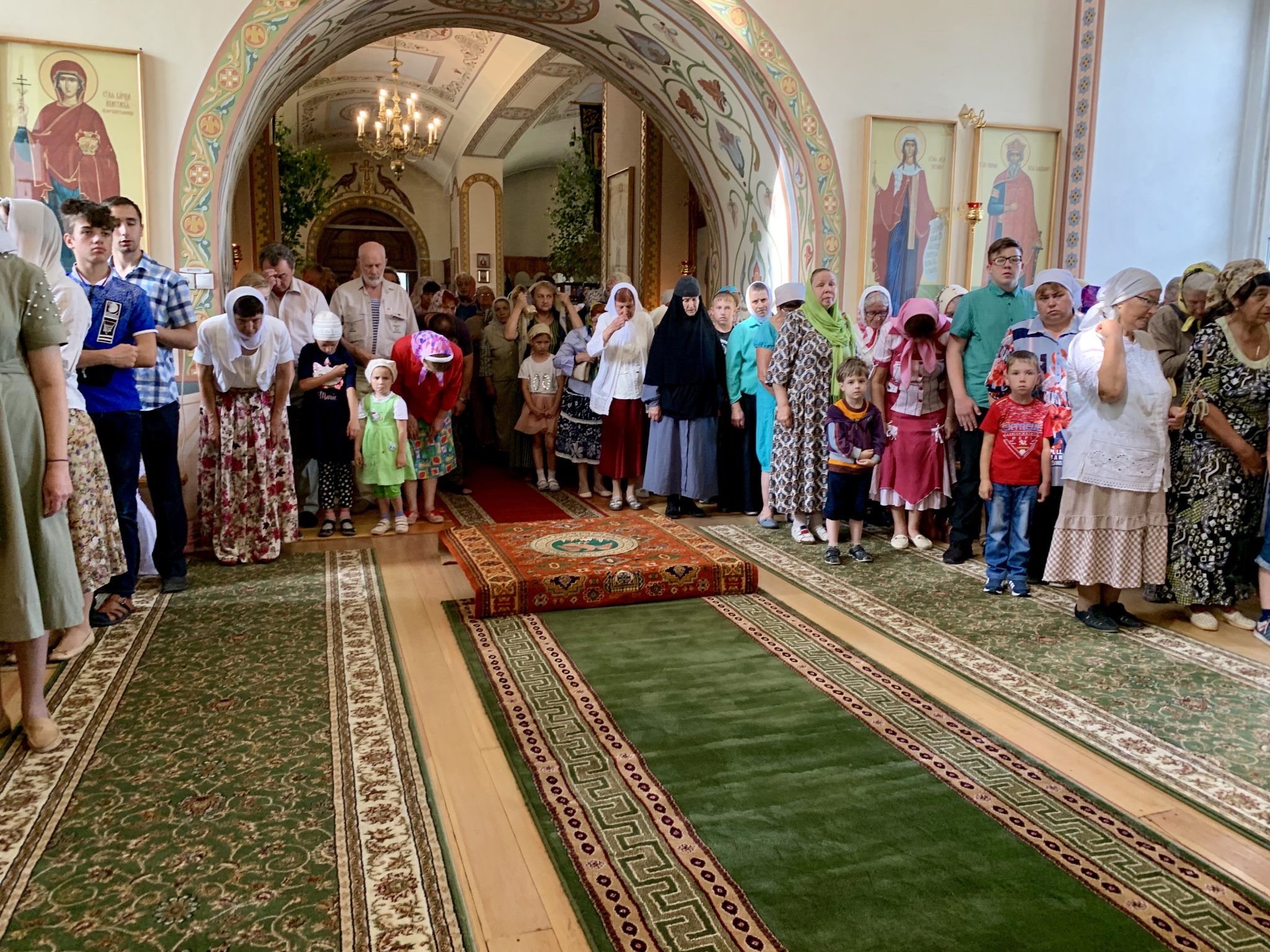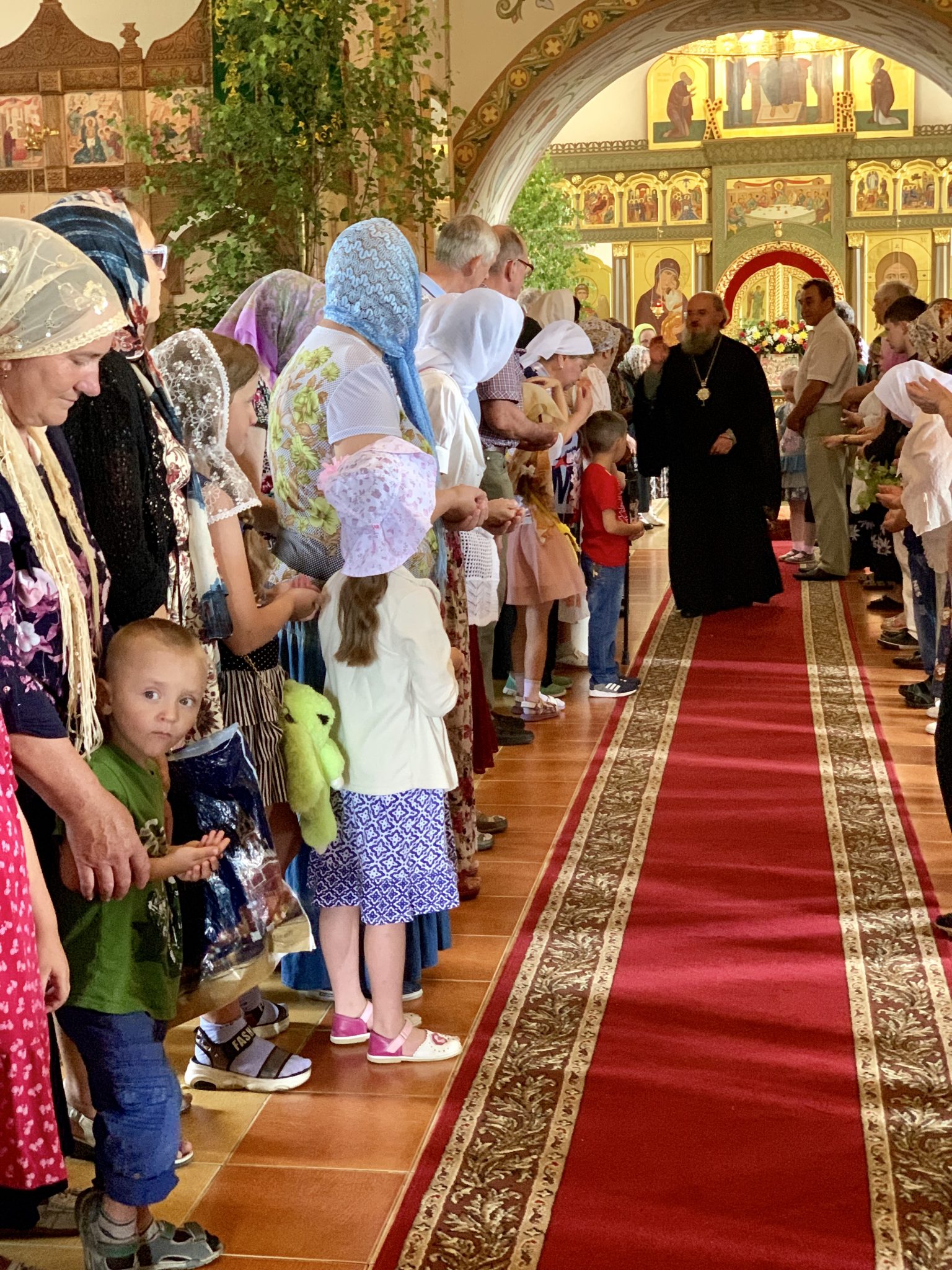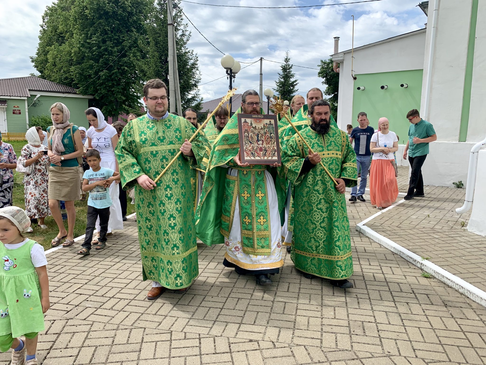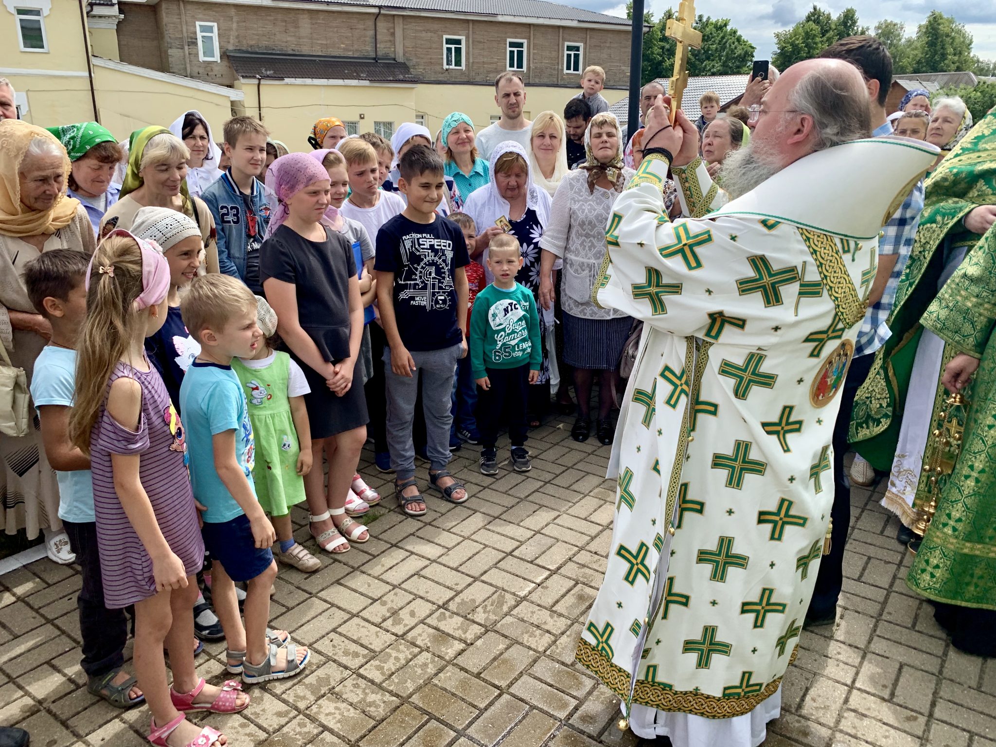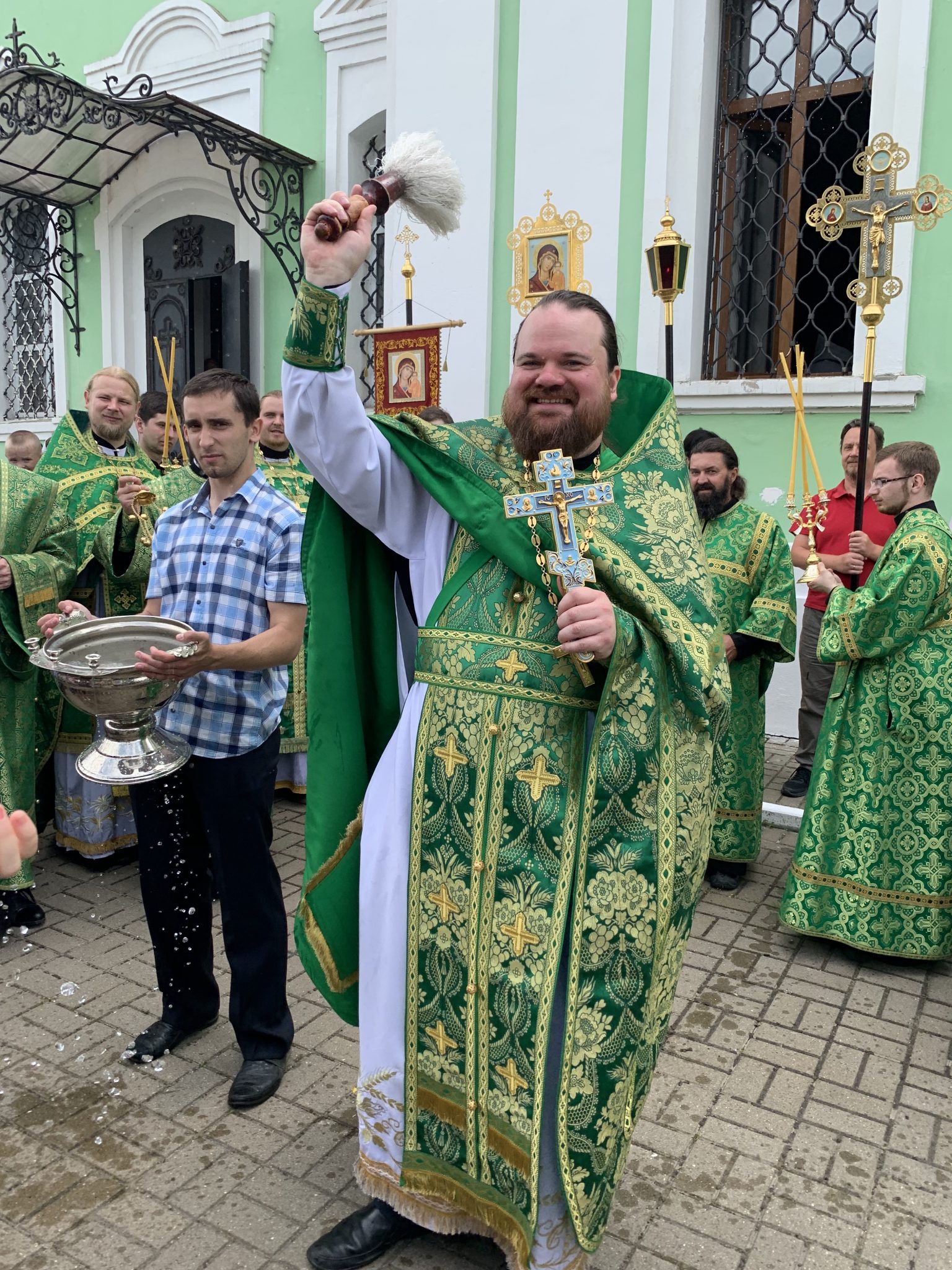 После отпуста литургии состоялся праздничный молебен и крестный ход вокруг храма в завершении которого, помолясь Господу Святому Духу Утешителю, владыка обратился к богомольцам с архипастырским словом.