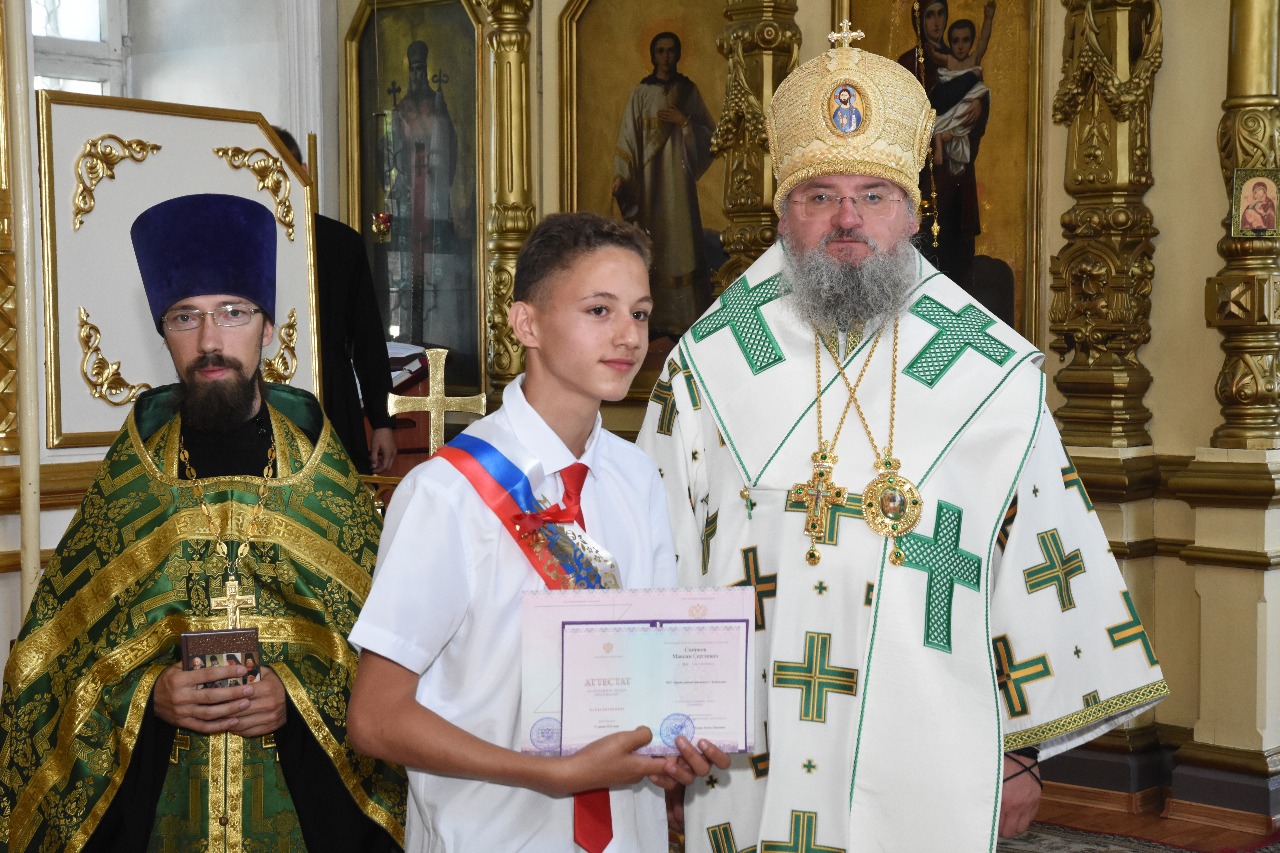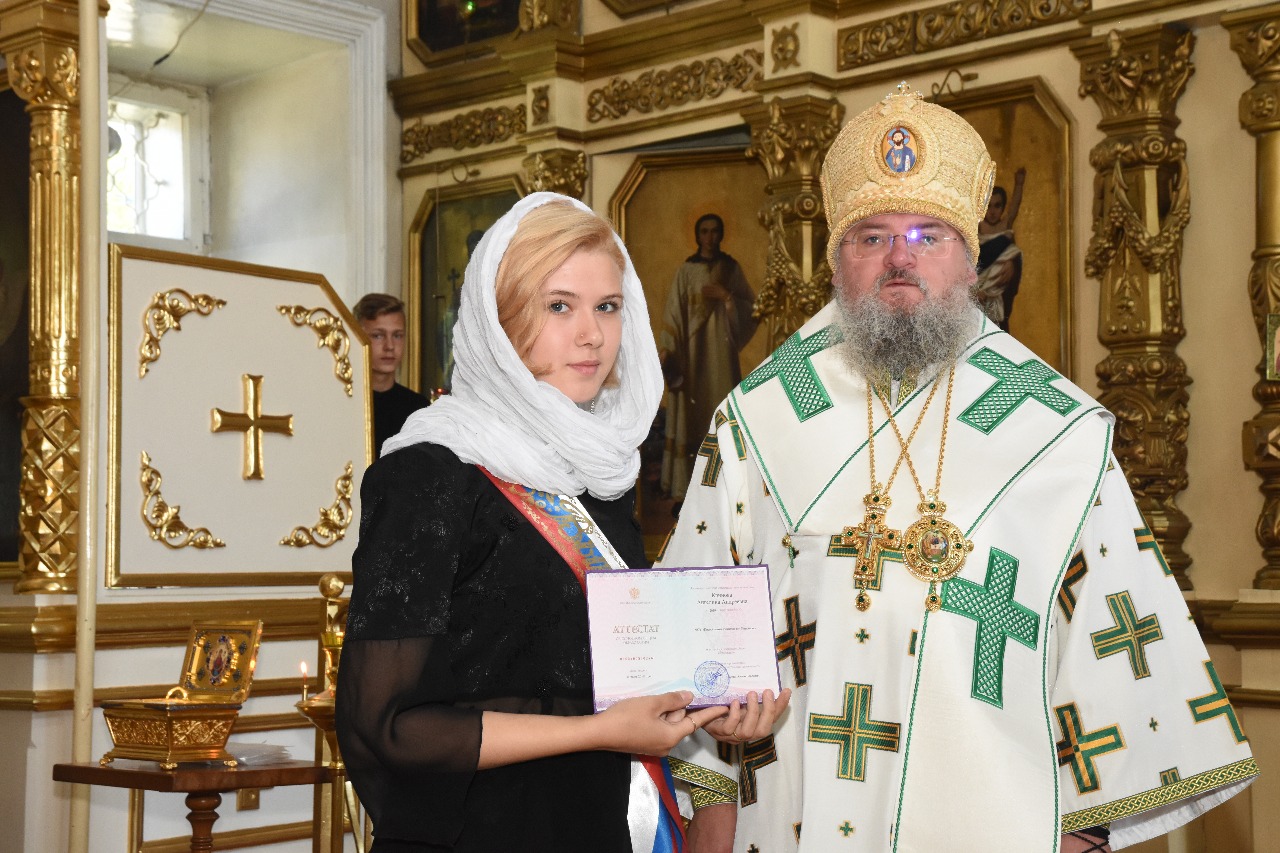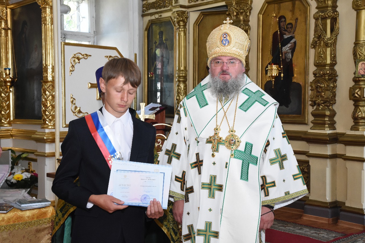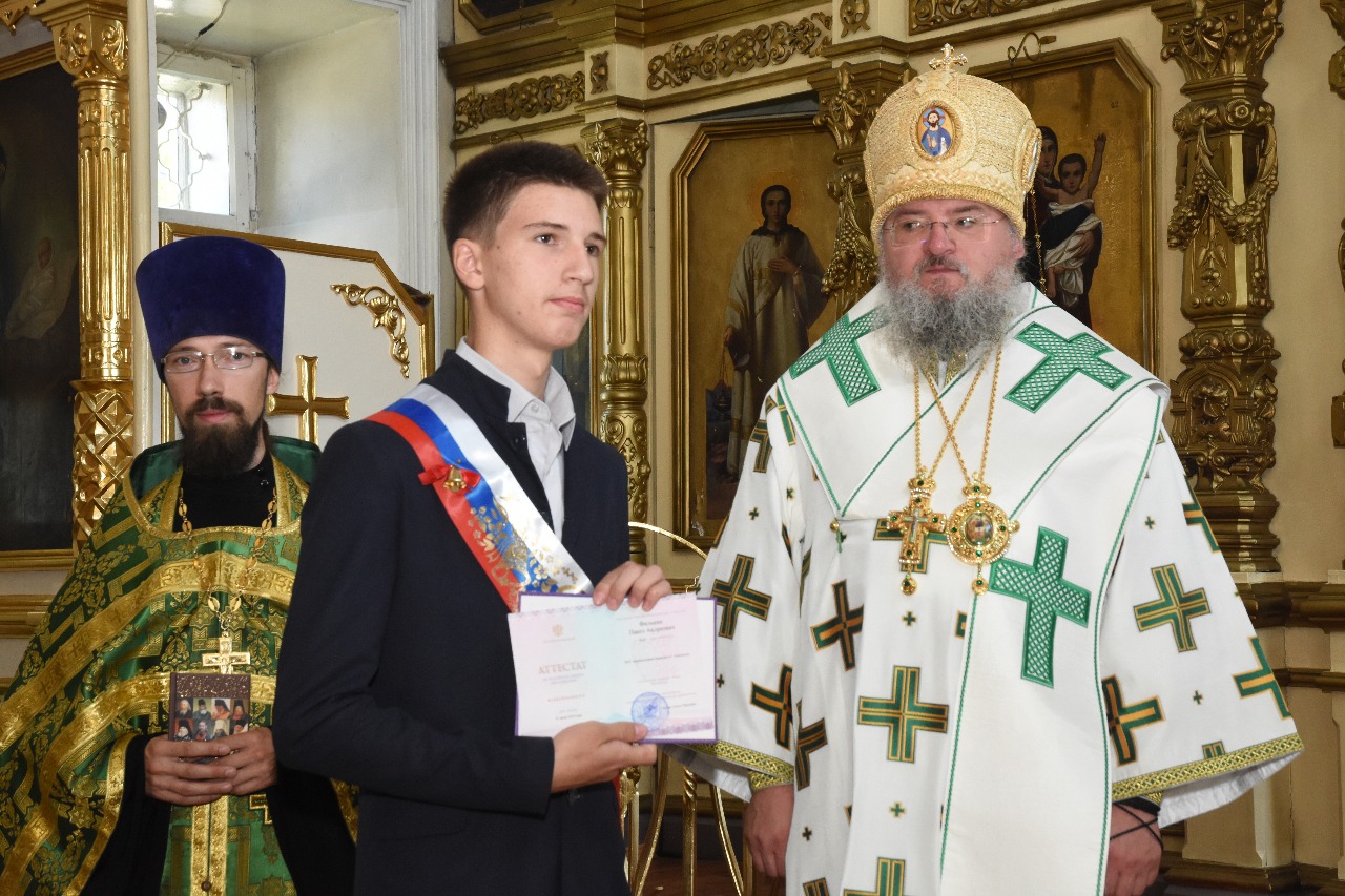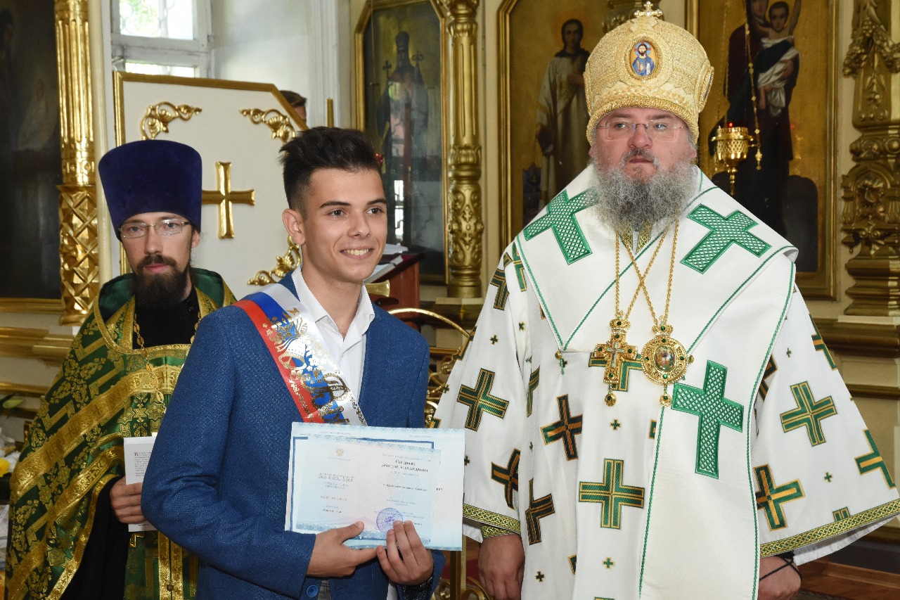 По окончании молебна владыка торжественно вручил выпускникам аттестаты об основном и среднем образовании.