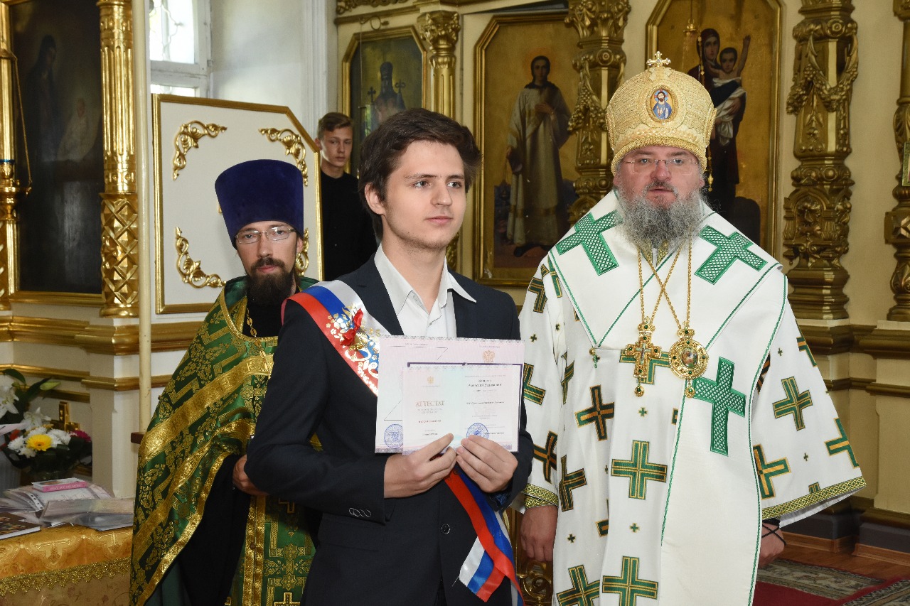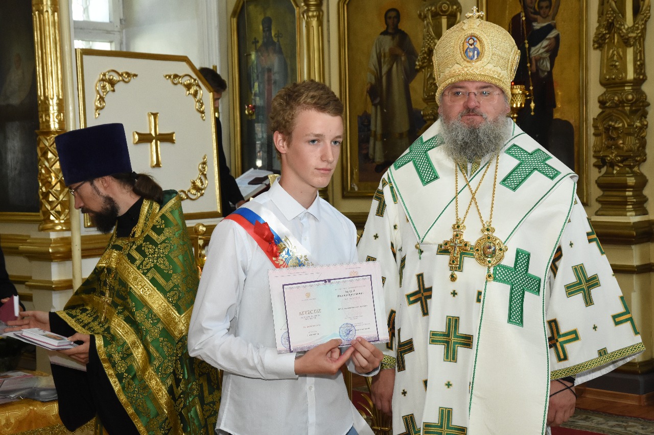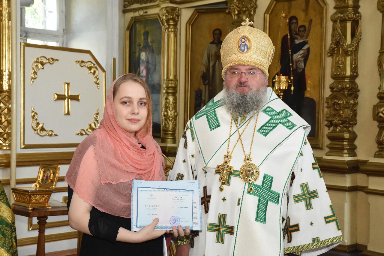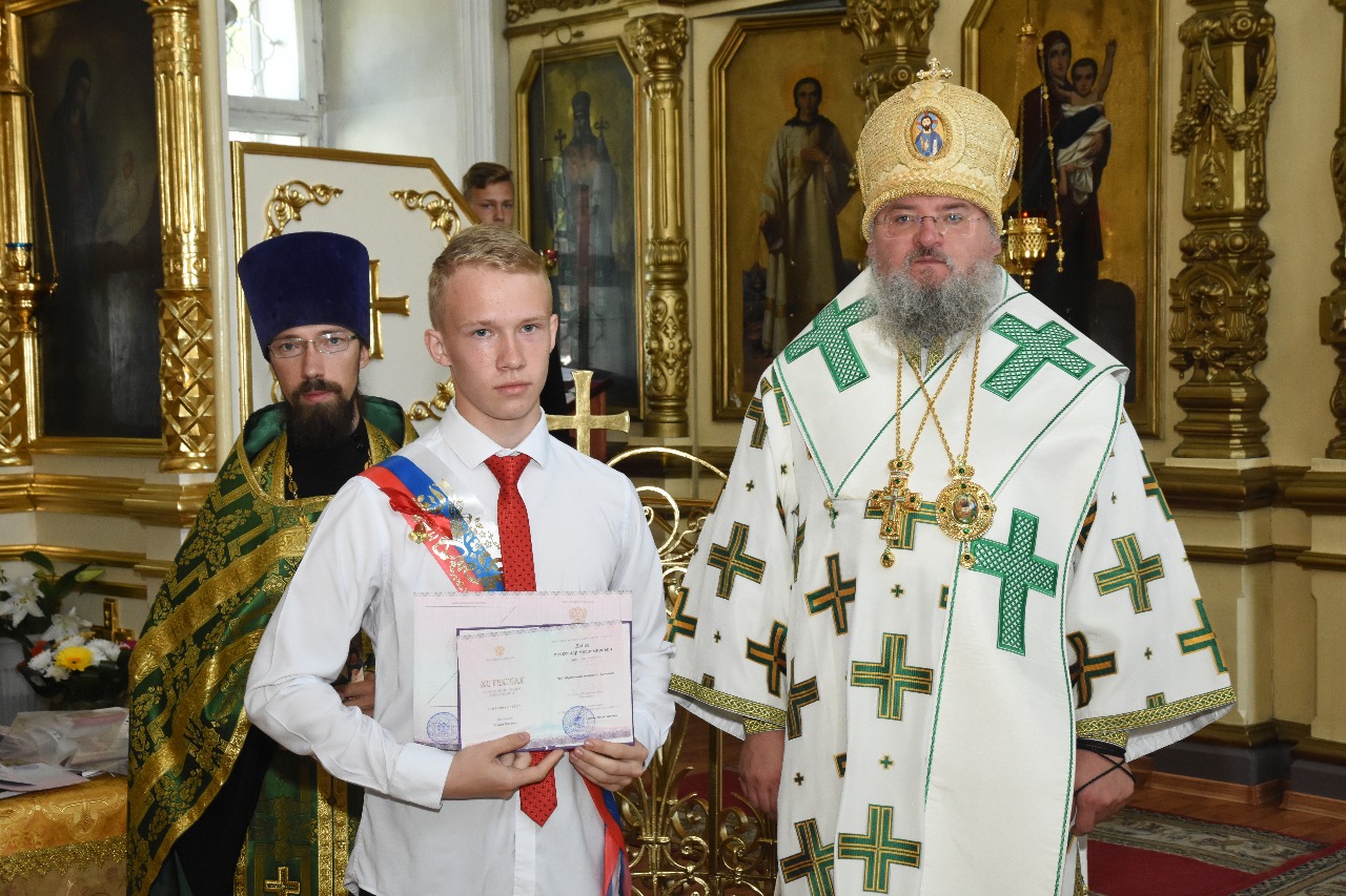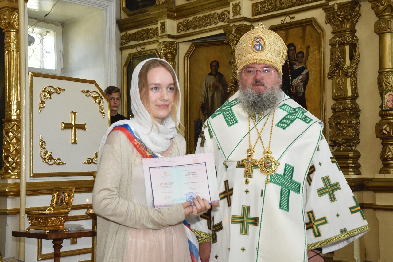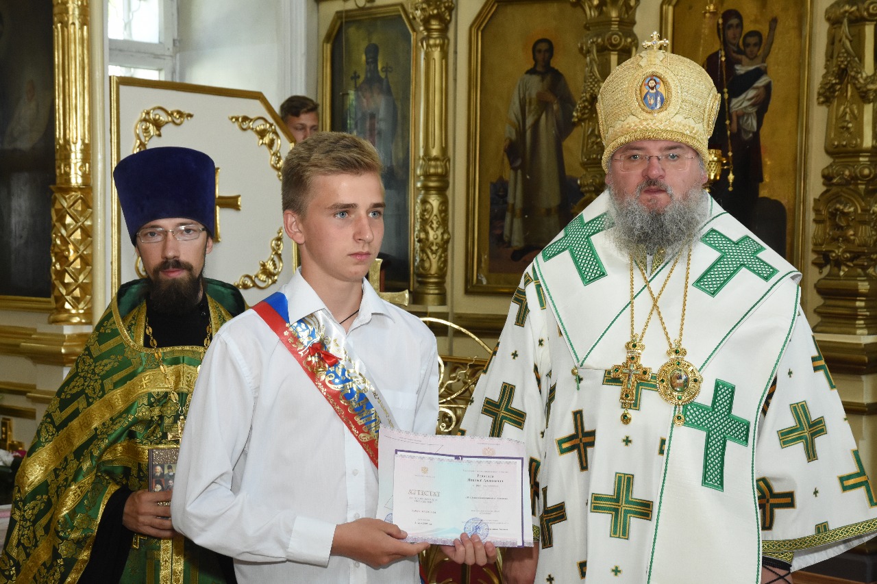 По окончании молебна владыка торжественно вручил выпускникам аттестаты об основном и среднем образовании.