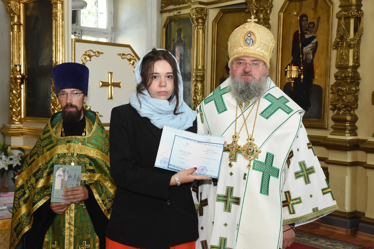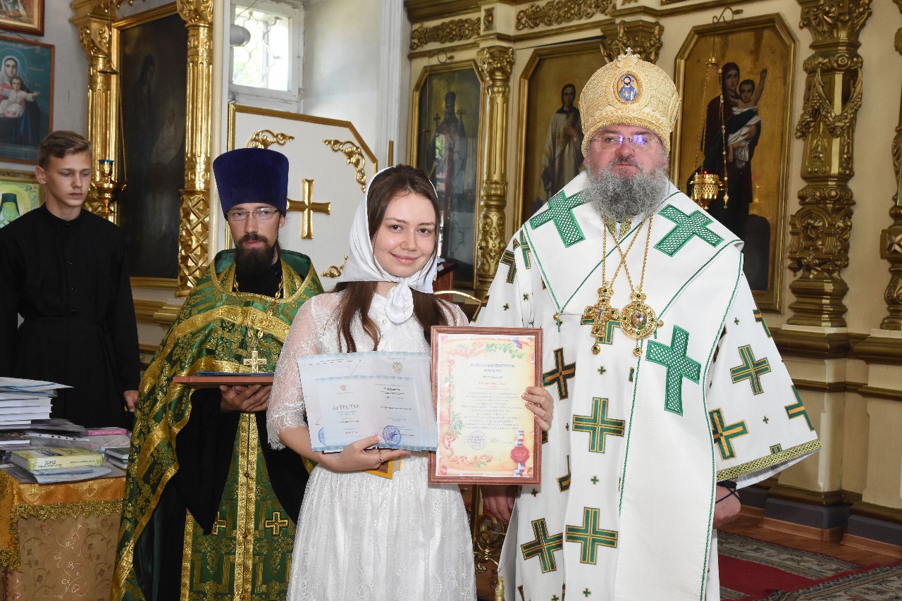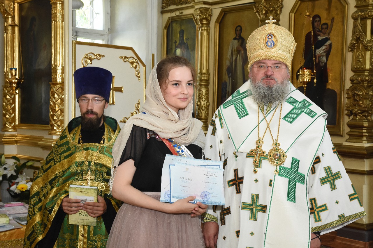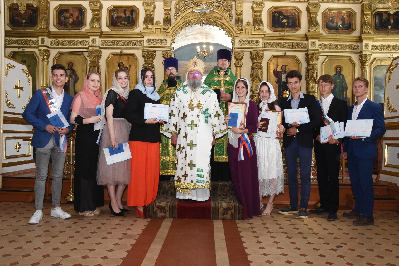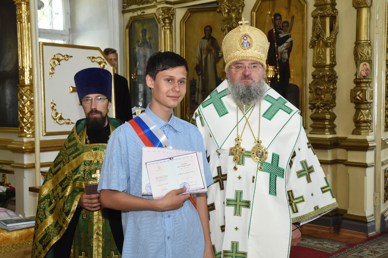 По окончании молебна владыка торжественно вручил выпускникам аттестаты об основном и среднем образовании.