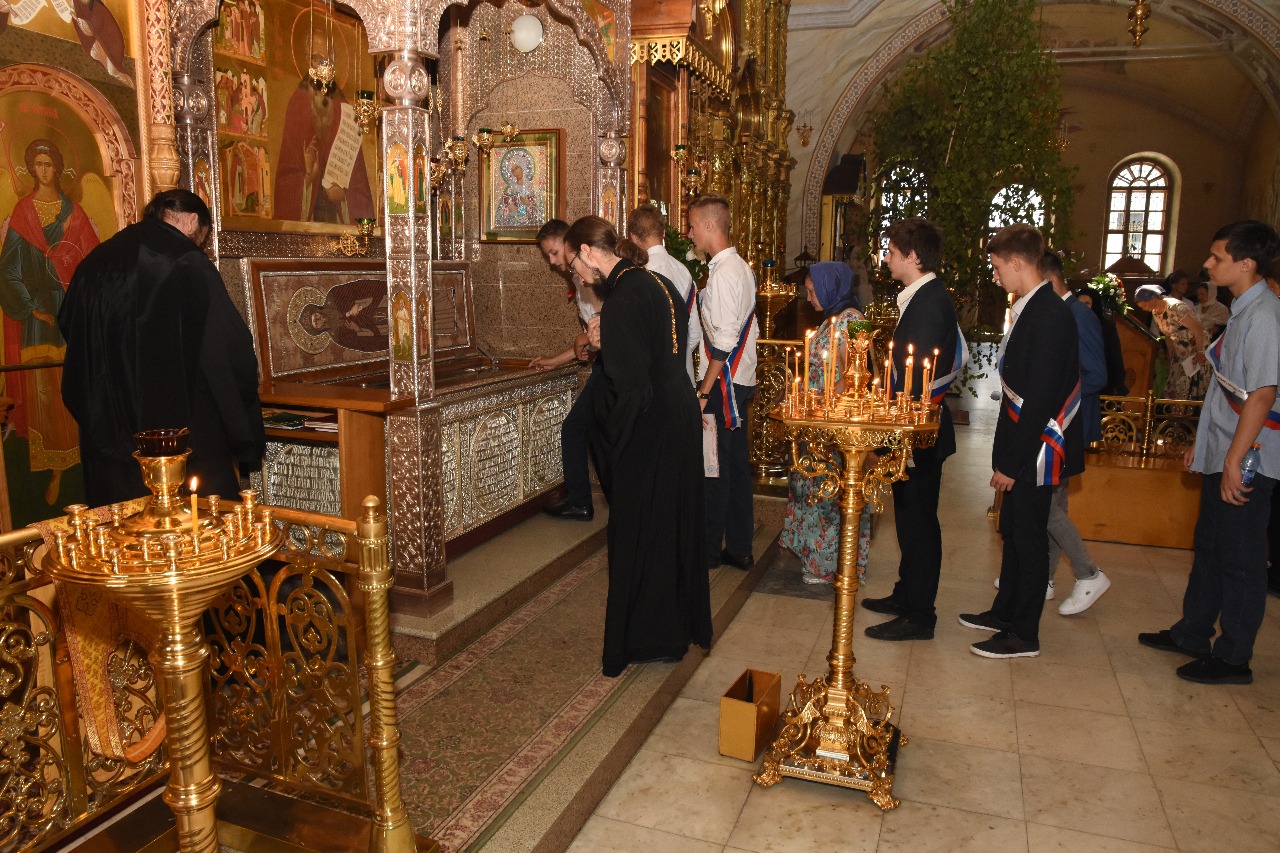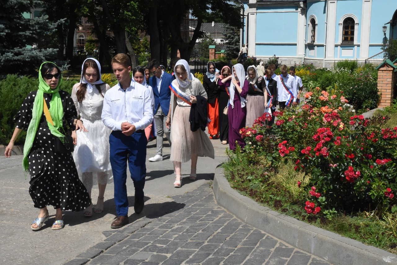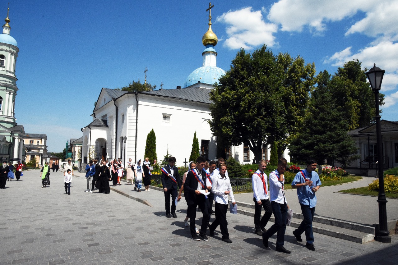 Сразу после вручения аттестатов выпускники отправились за благословением и напутствием в Оптину пустынь. Здесь бывших гимназистов встретил насельник монастыря игумен Лаврентий, передал благословение владыки наместника и пожелал во взрослой жизни помнить Божии заповеди и тот опыт веры, добра и молитвы, который они приобрели, учась в православной гимназии. Испрашивая благословение на дальнейшую взрослую жизнь, выпускники приложились к мощам оптинских старцев и помолились убиенным оптинским братьям.