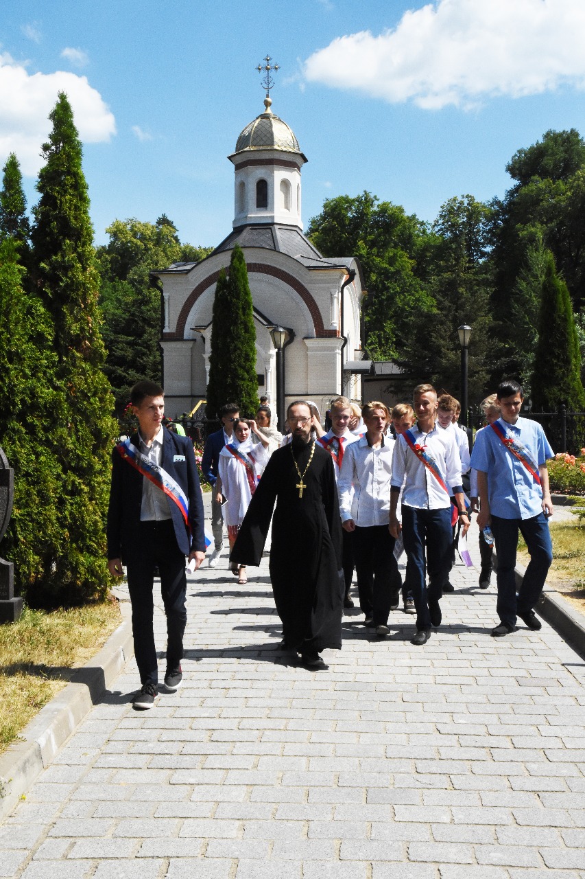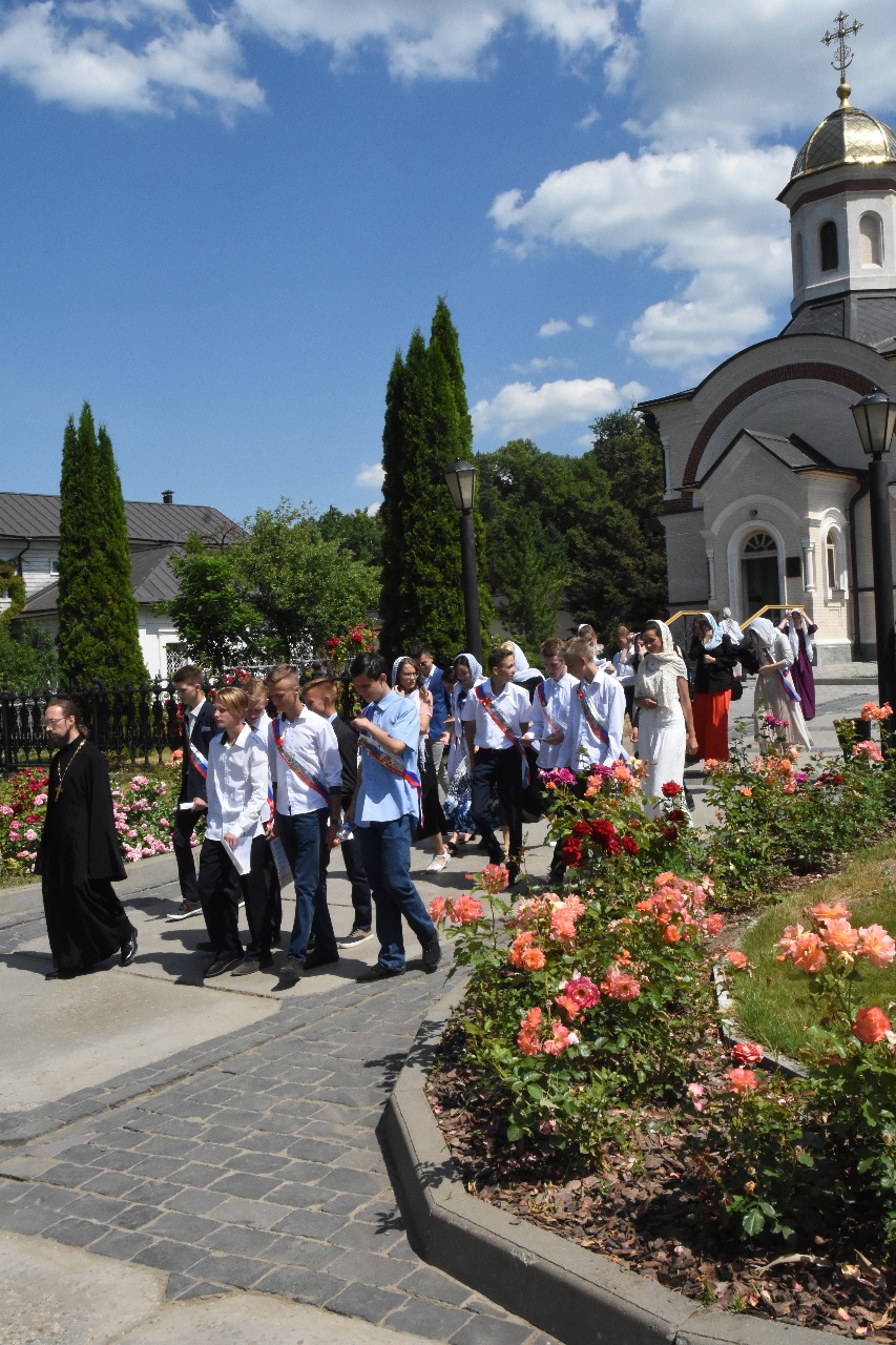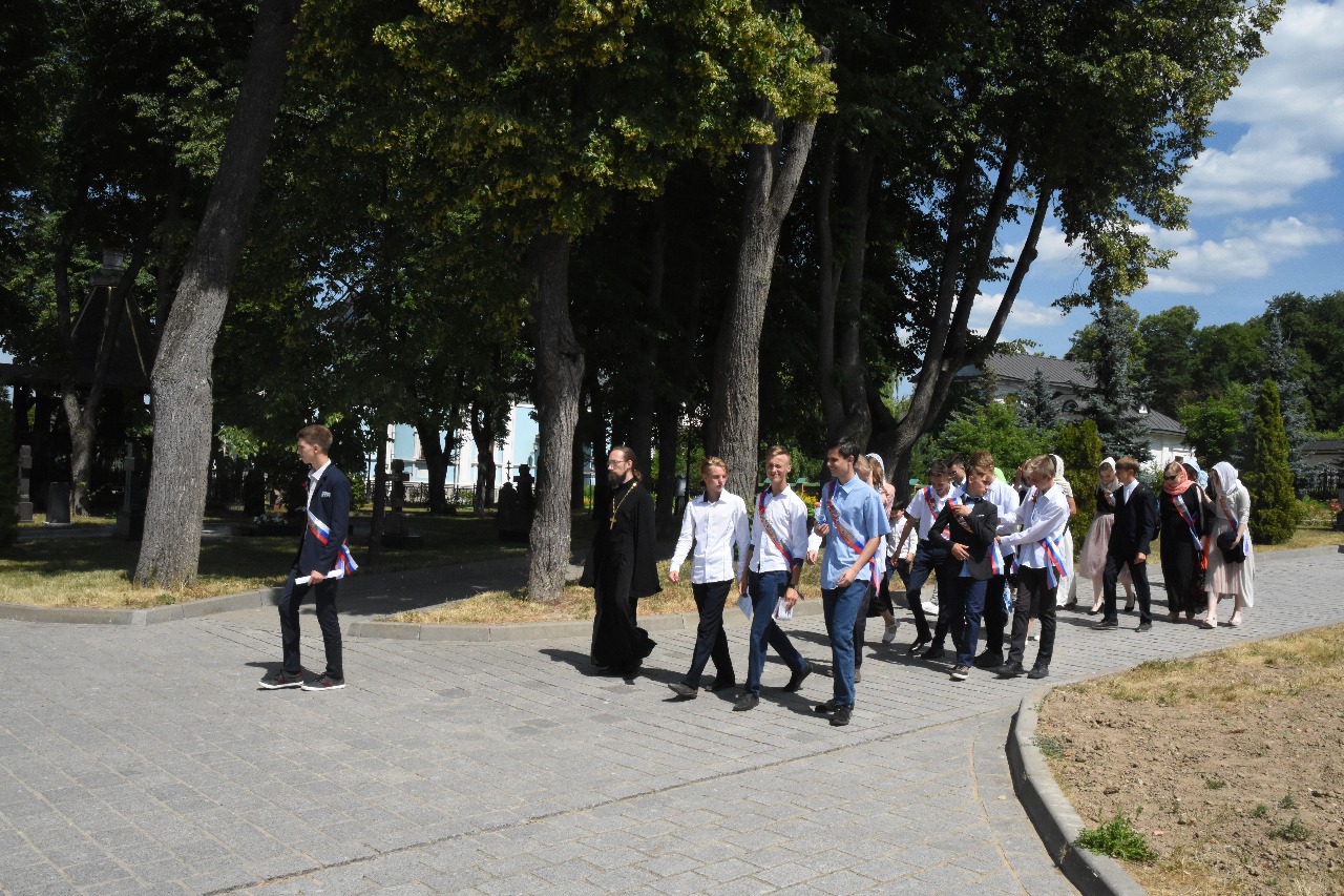 Сразу после вручения аттестатов выпускники отправились за благословением и напутствием в Оптину пустынь. Здесь бывших гимназистов встретил насельник монастыря игумен Лаврентий, передал благословение владыки наместника и пожелал во взрослой жизни помнить Божии заповеди и тот опыт веры, добра и молитвы, который они приобрели, учась в православной гимназии. Испрашивая благословение на дальнейшую взрослую жизнь, выпускники приложились к мощам оптинских старцев и помолились убиенным оптинским братьям.