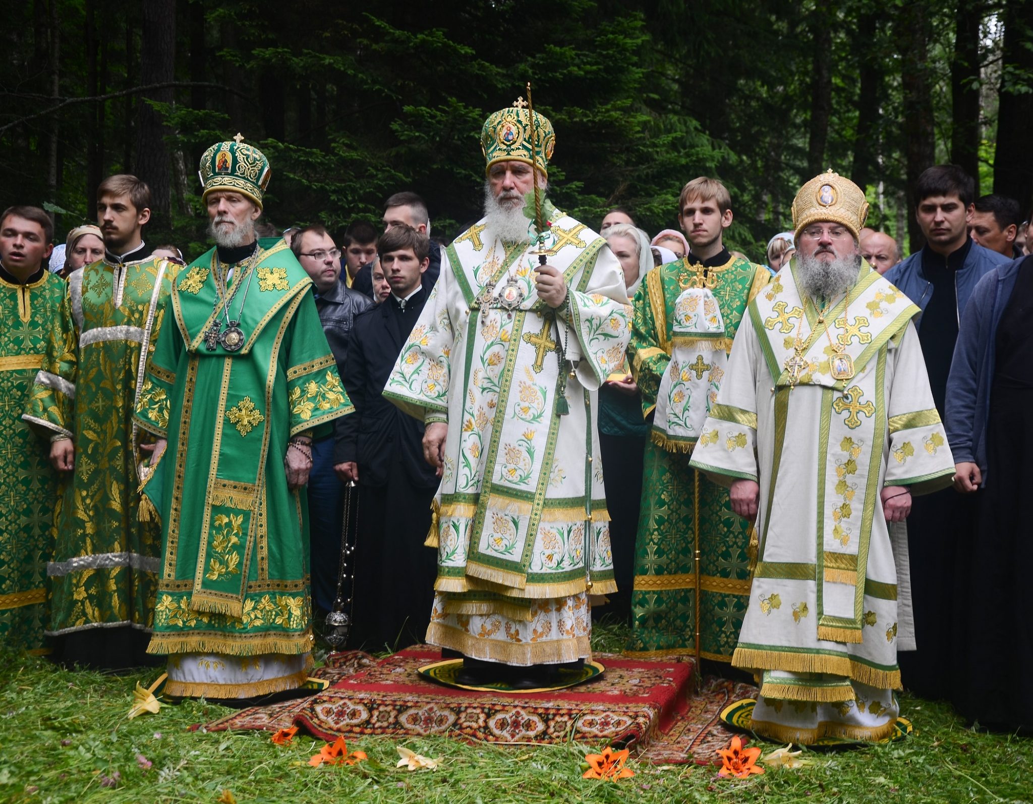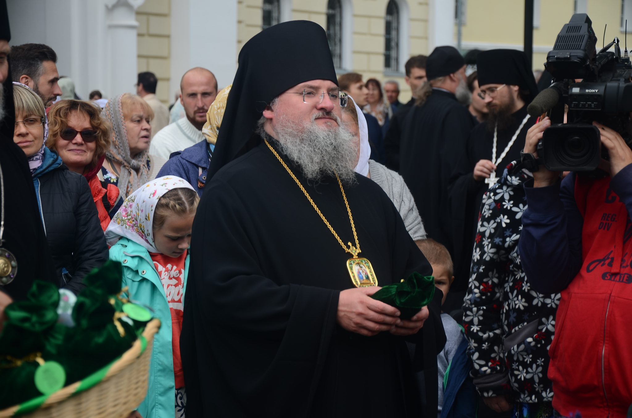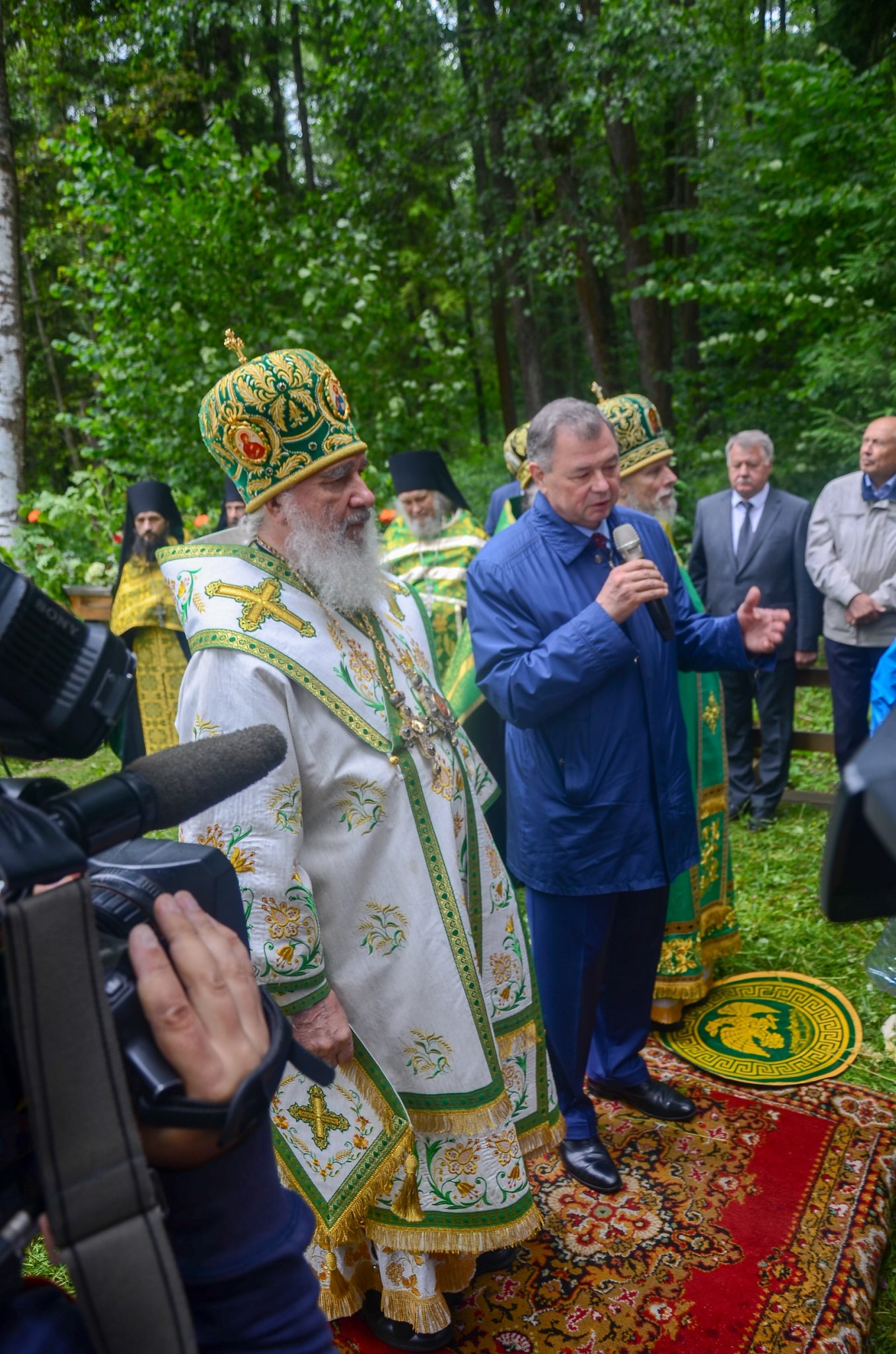 После окропления верующих освященной водой из святого источника, митрополит Калужский и Боровский Климент и Губернатор Калужской области Анатолий Дмитриевич Артамонов поздравили жителей города и многочисленных паломников с днем небесного покровителя Калуги.