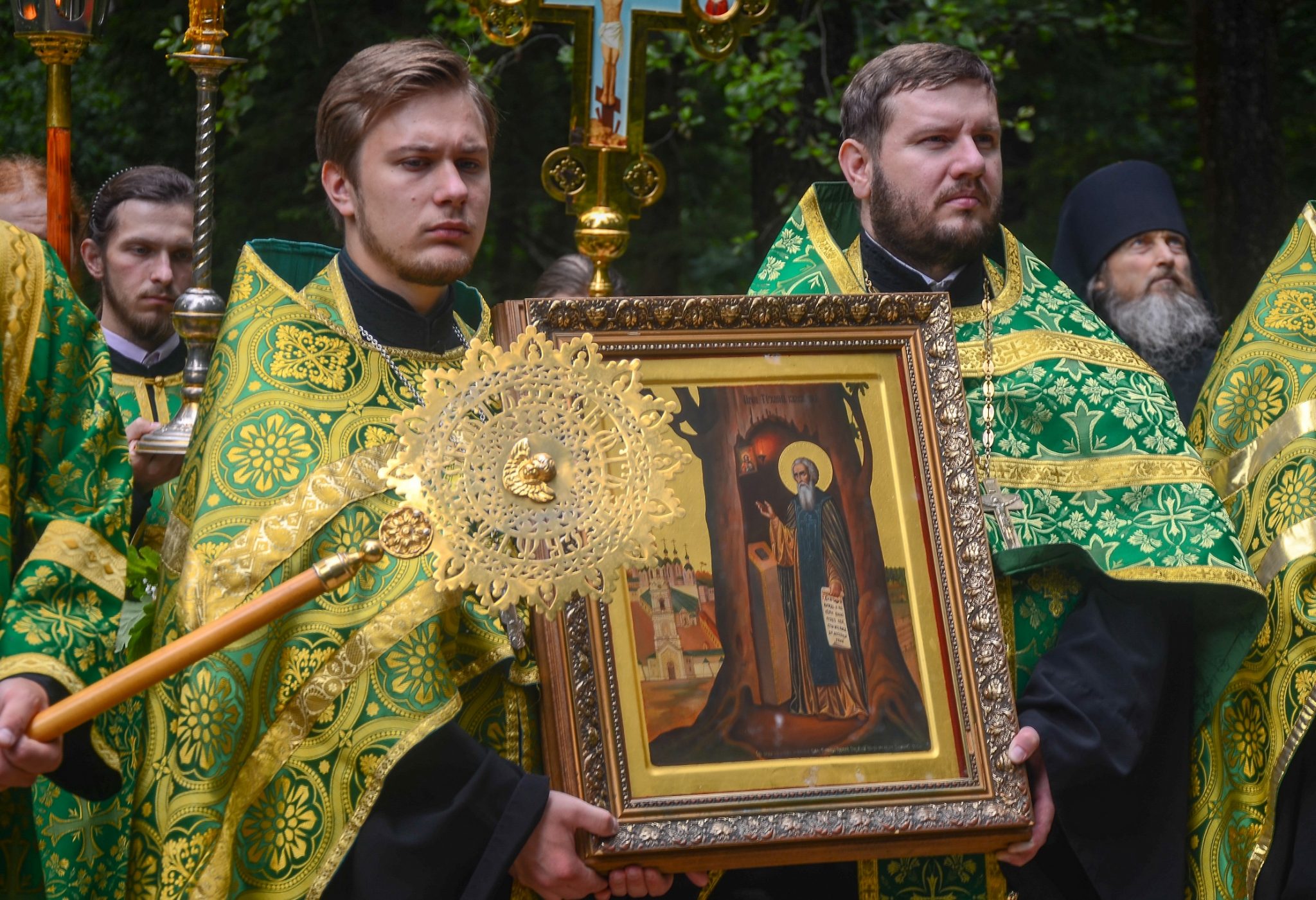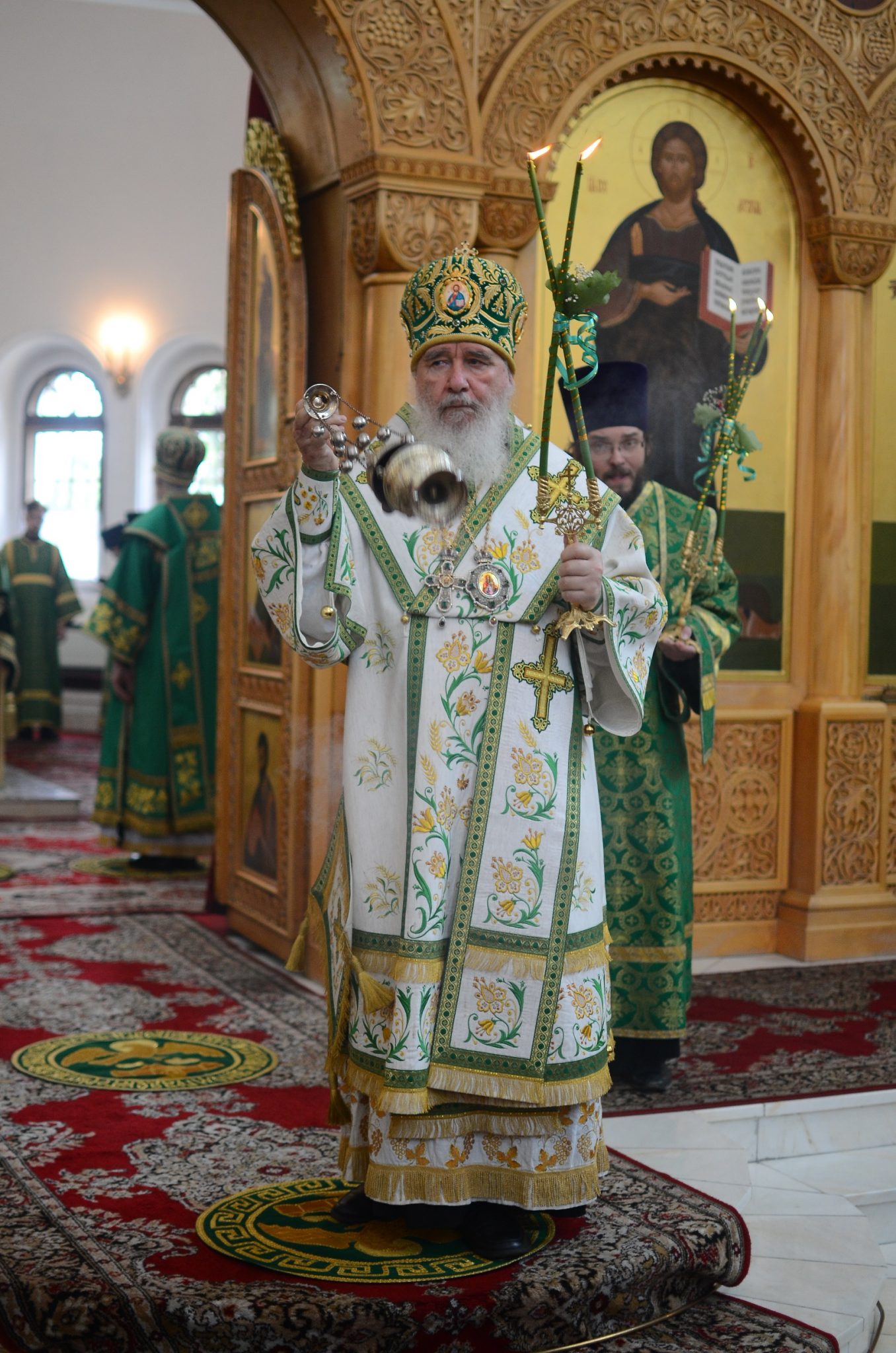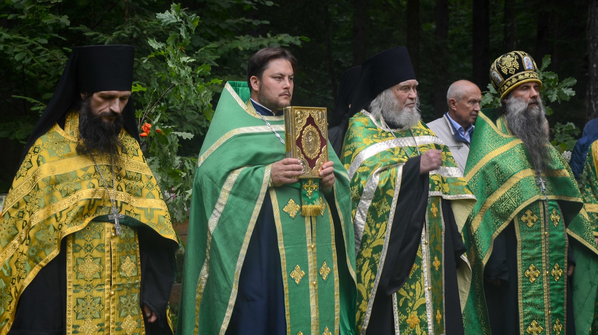 После окропления верующих освященной водой из святого источника, митрополит Калужский и Боровский Климент и Губернатор Калужской области Анатолий Дмитриевич Артамонов поздравили жителей города и многочисленных паломников с днем небесного покровителя Калуги.