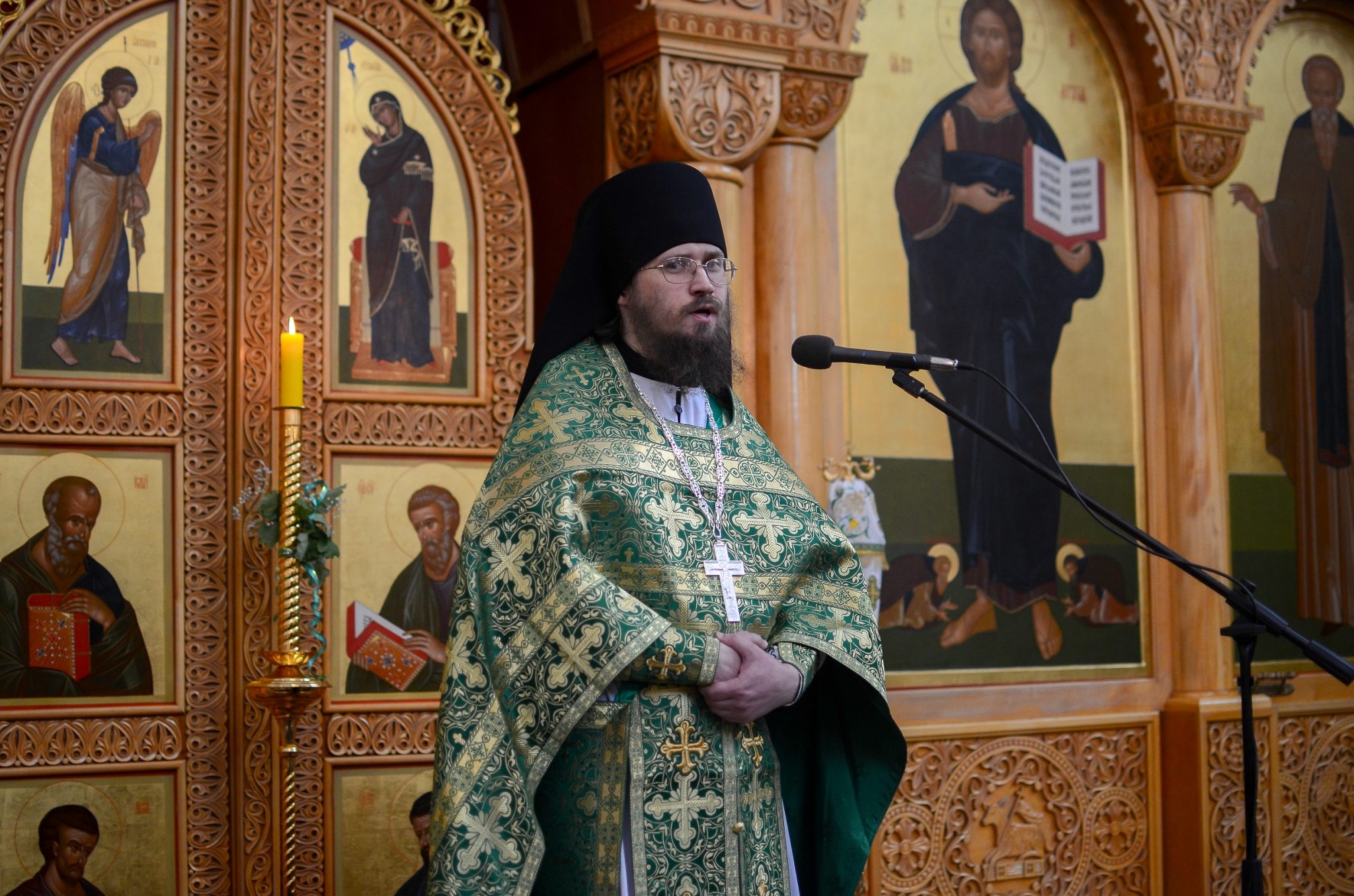 На сугубой ектенье были произнесены особые прошения «о единстве Святого Православия», после чего глава Калужской митрополии вознес молитву о мире на Украине.